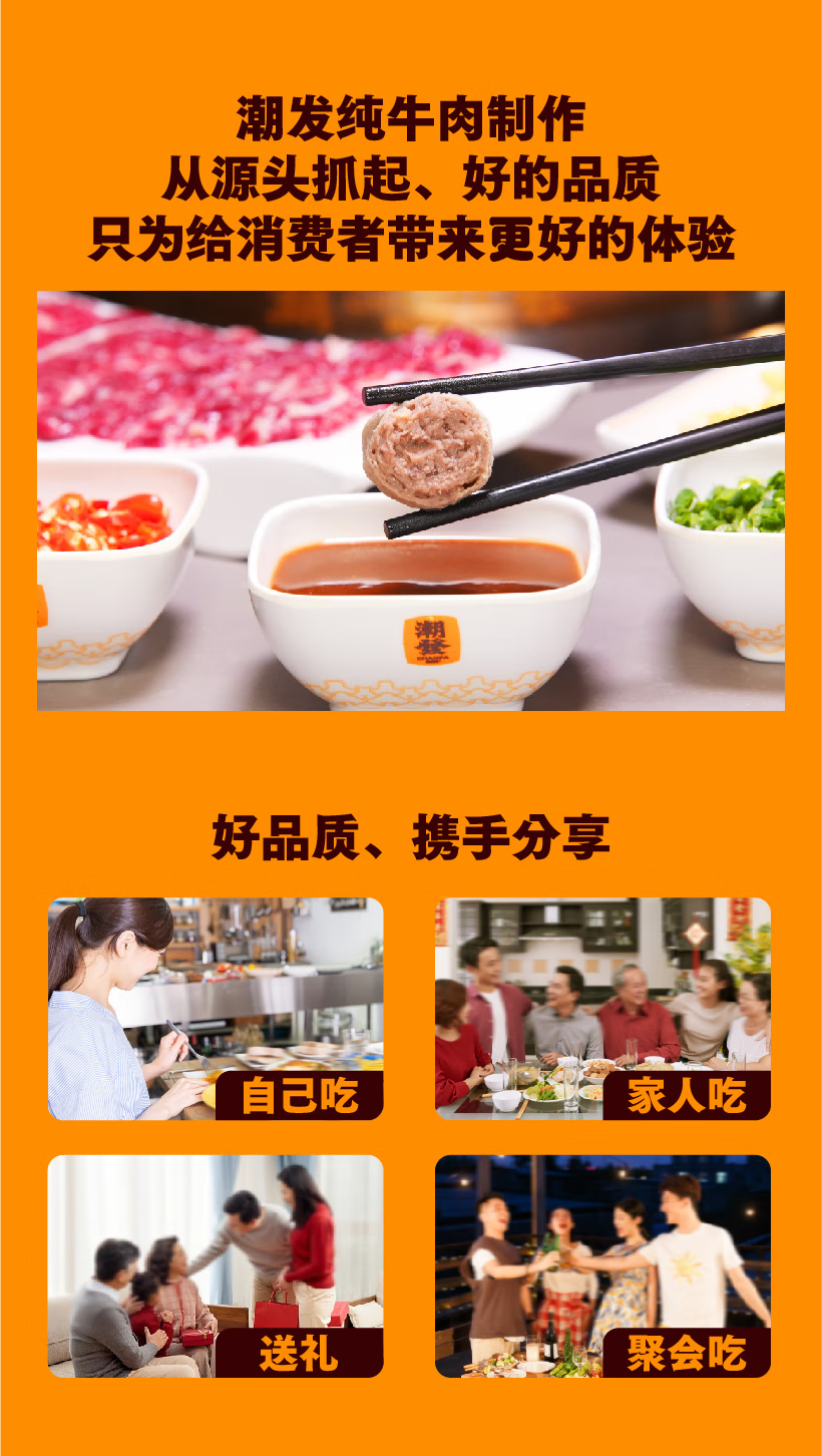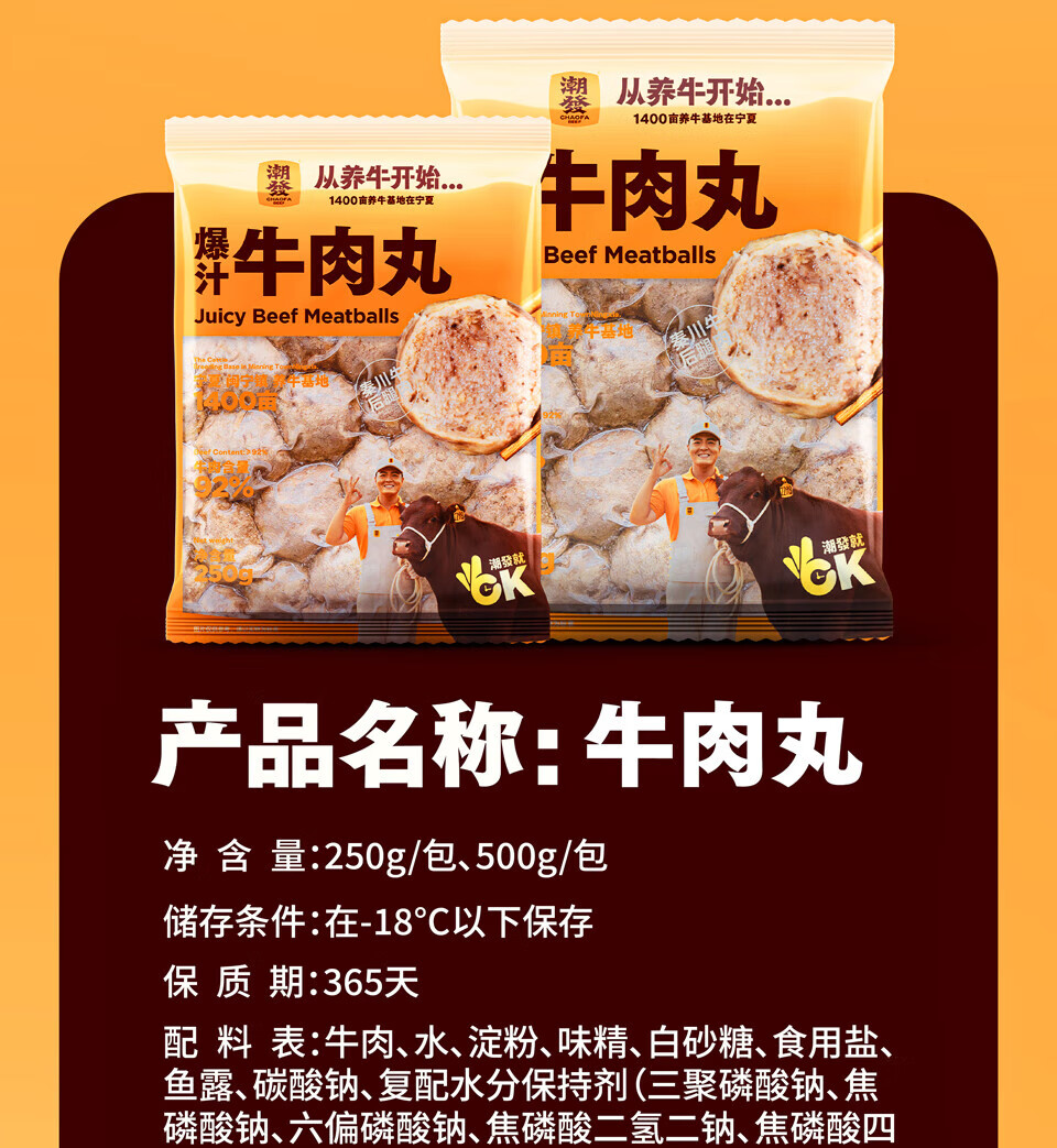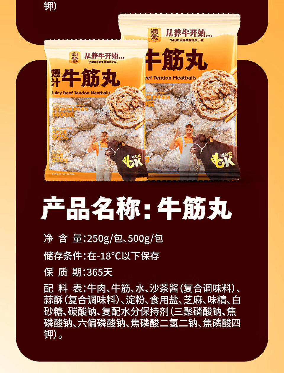 潮发潮汕正宗牛肉丸牛筋丸烧烤火锅食材关东煮空气炸锅麻辣烫 250g/袋 牛肉丸1袋 赠小沙茶酱+蒜酥各1包