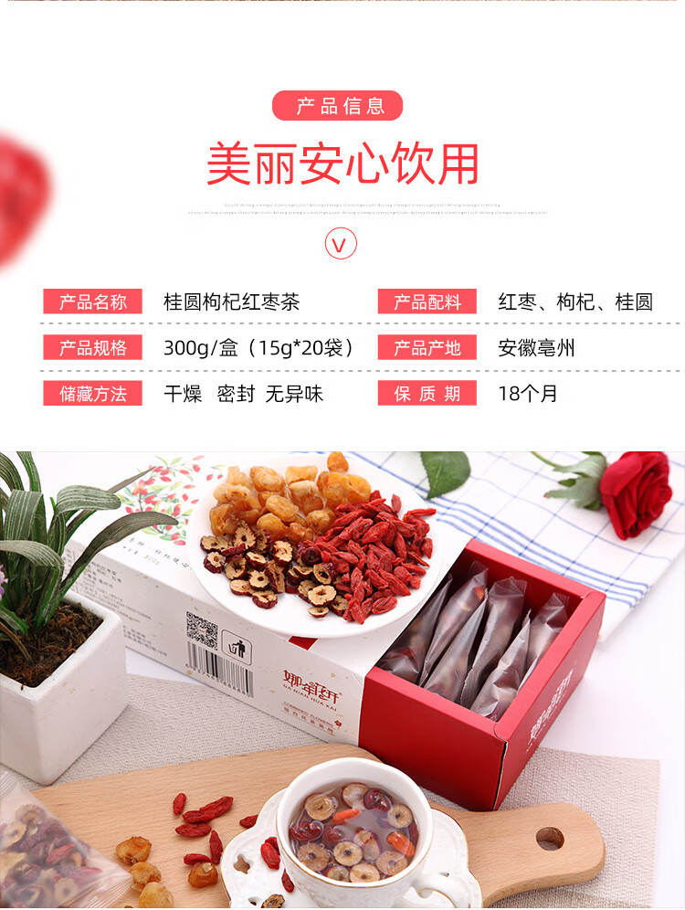 桂圆红枣枸杞茶组合花草茶300g批发 八宝组合茶女人茶包一件 塑封桂圆红枣枸杞茶300克/盒