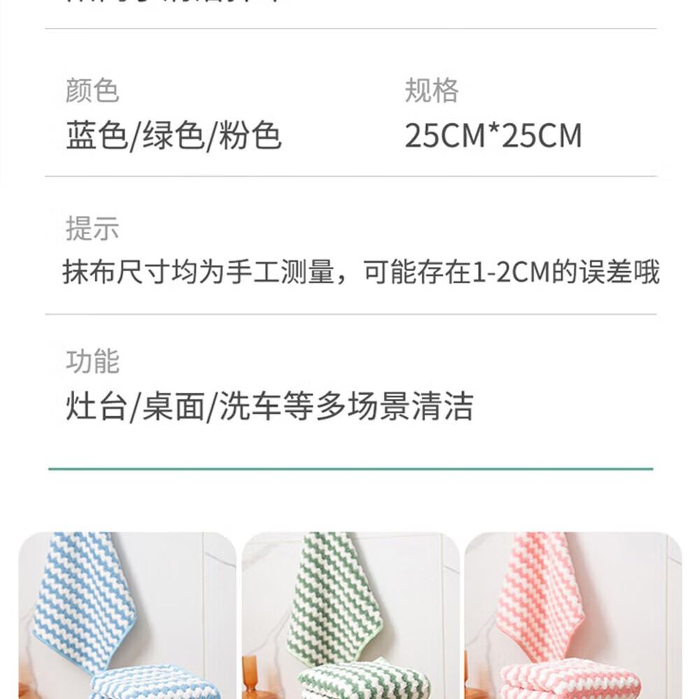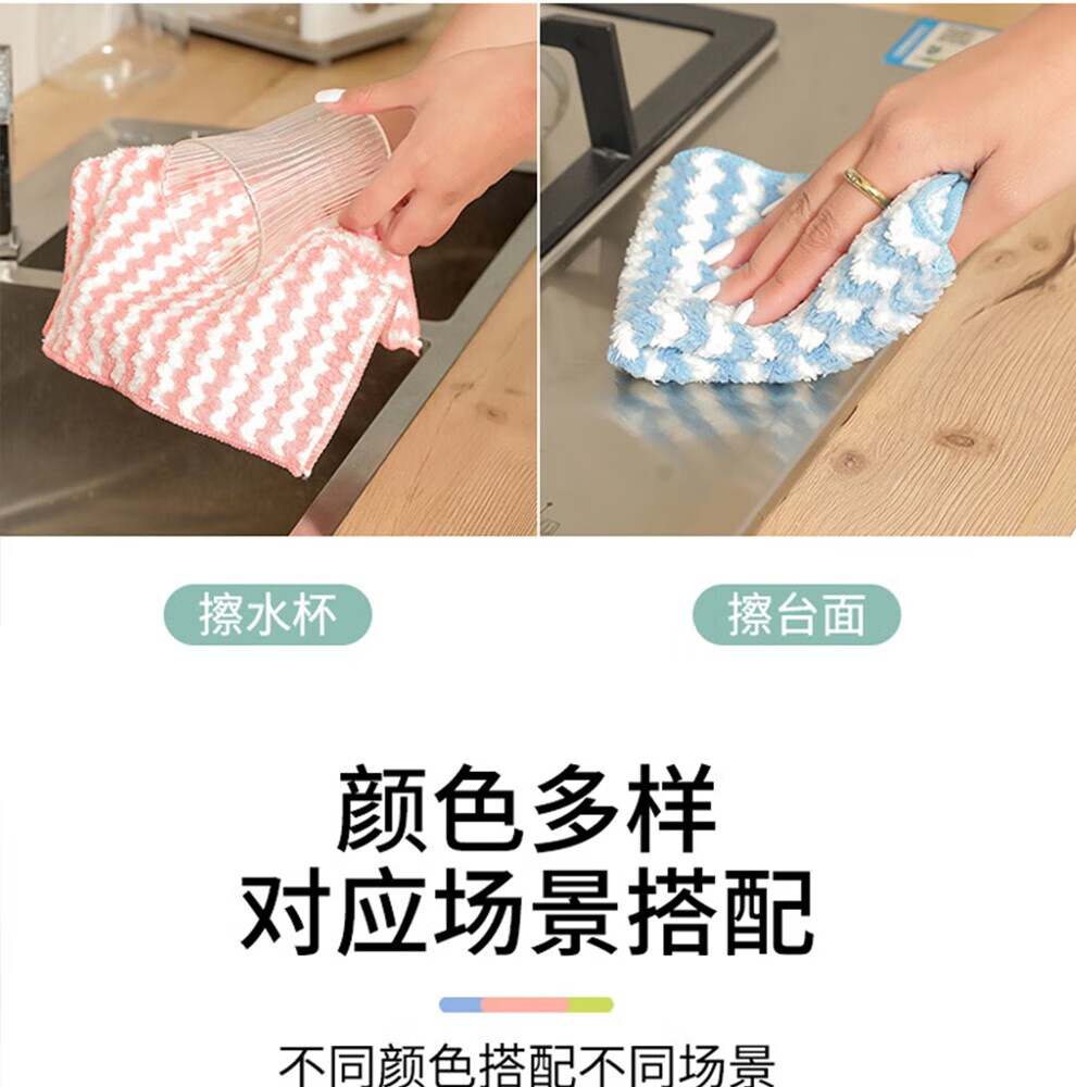 抹布洗碗布厨房百洁布加厚家务清洁布吸水无痕不掉毛巾擦桌子清洁 阳离子白洁抹布【混色20条】