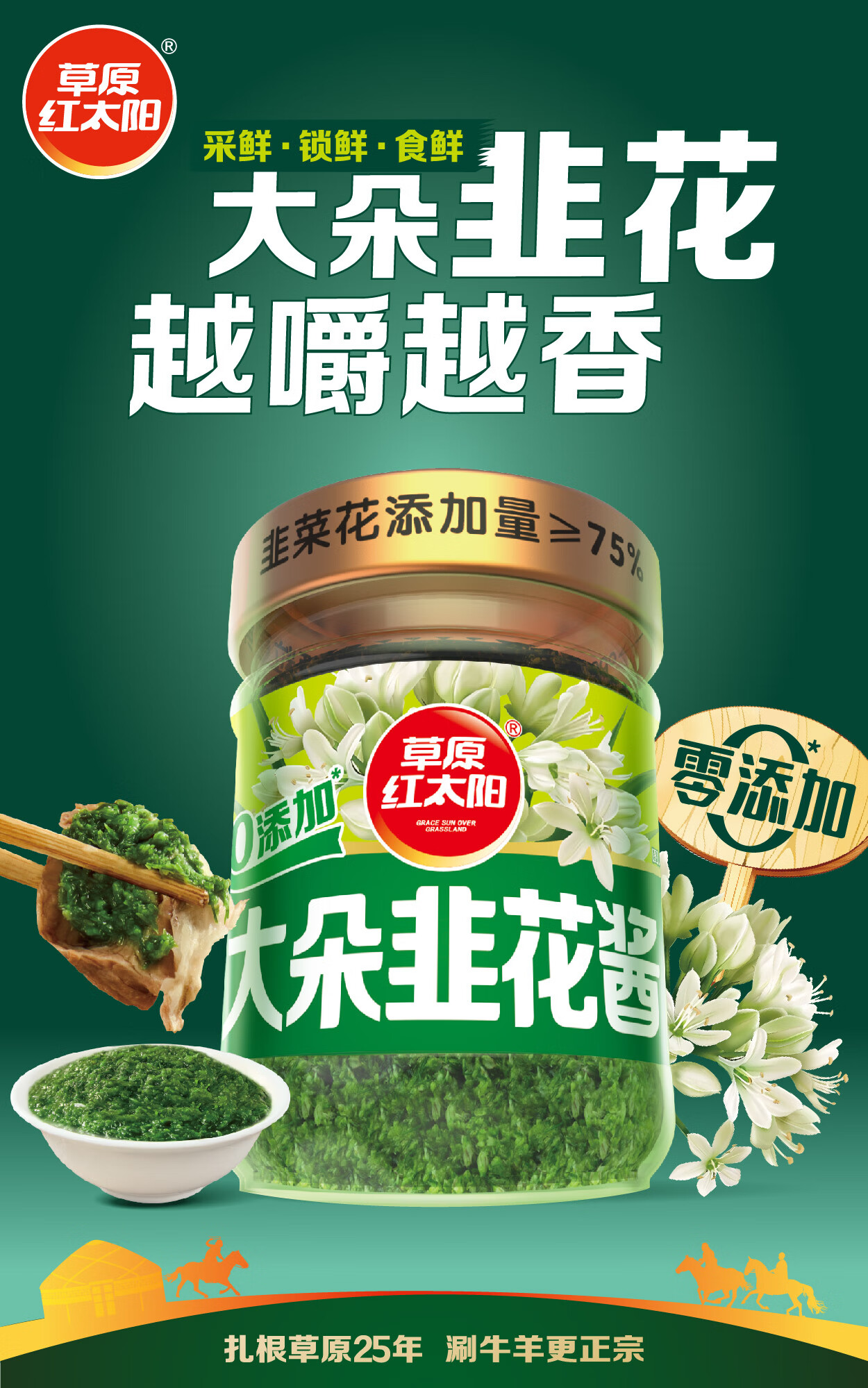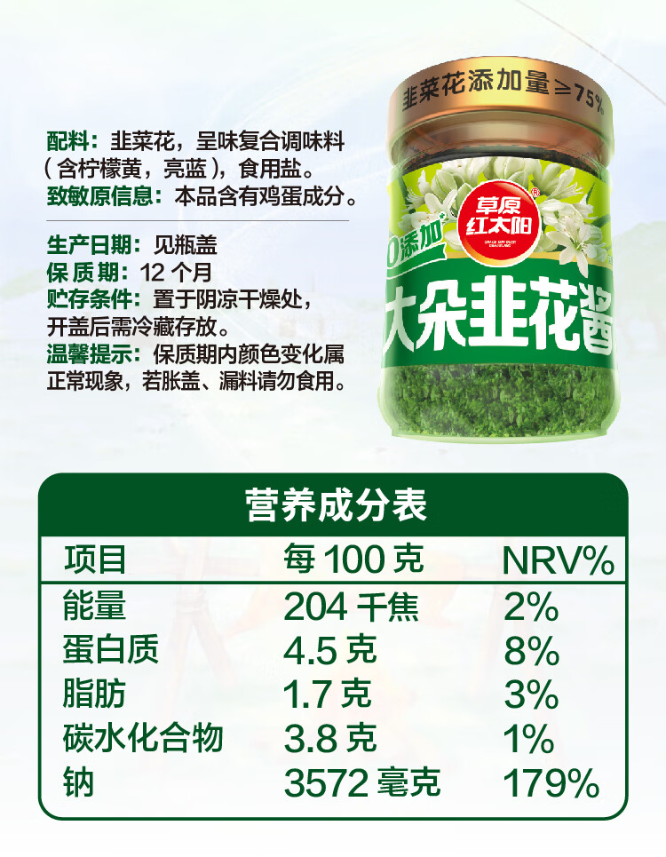 草原红太阳大朵韭花酱200g野生草原特产下饭酱牛羊肉火锅蘸料调料大粒韭花酱 大朵韭花酱200g*3瓶