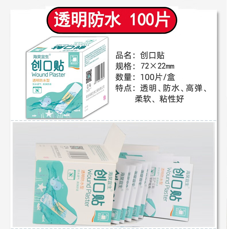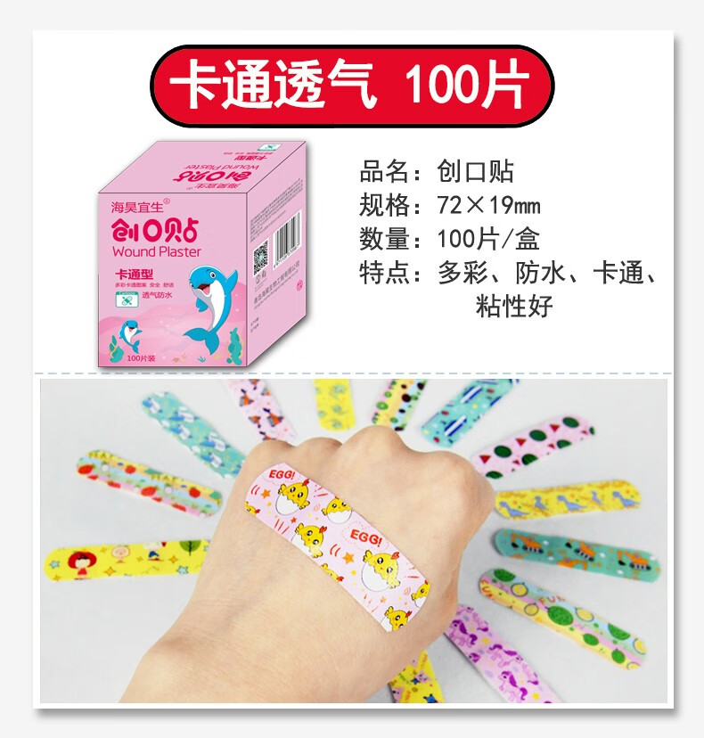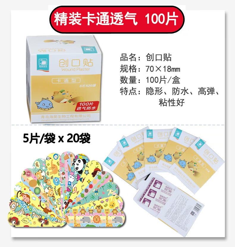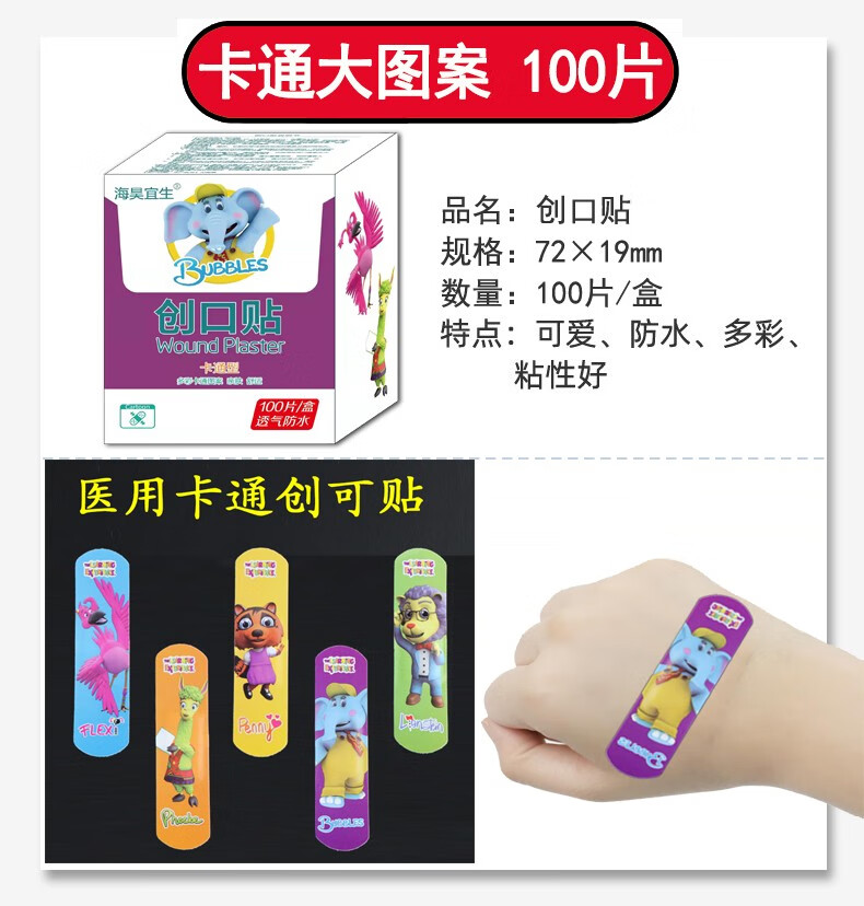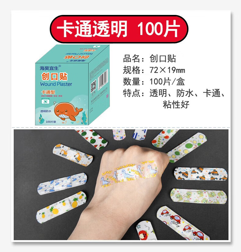 海昊宜生医用防水透气创口贴卡通创可贴儿童可爱透明大号伤口止血贴防磨脚 医用透气款300片【100片/包*3包】经济便携