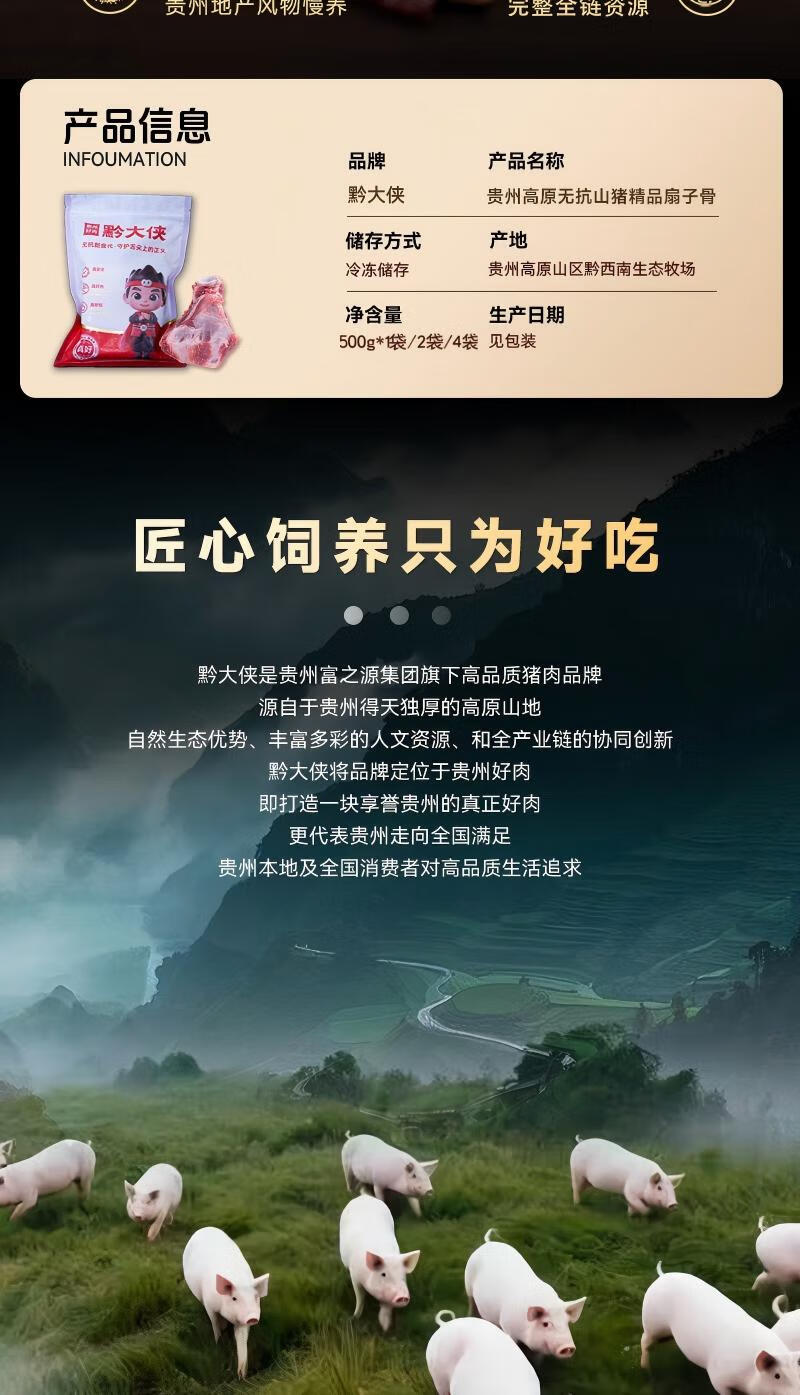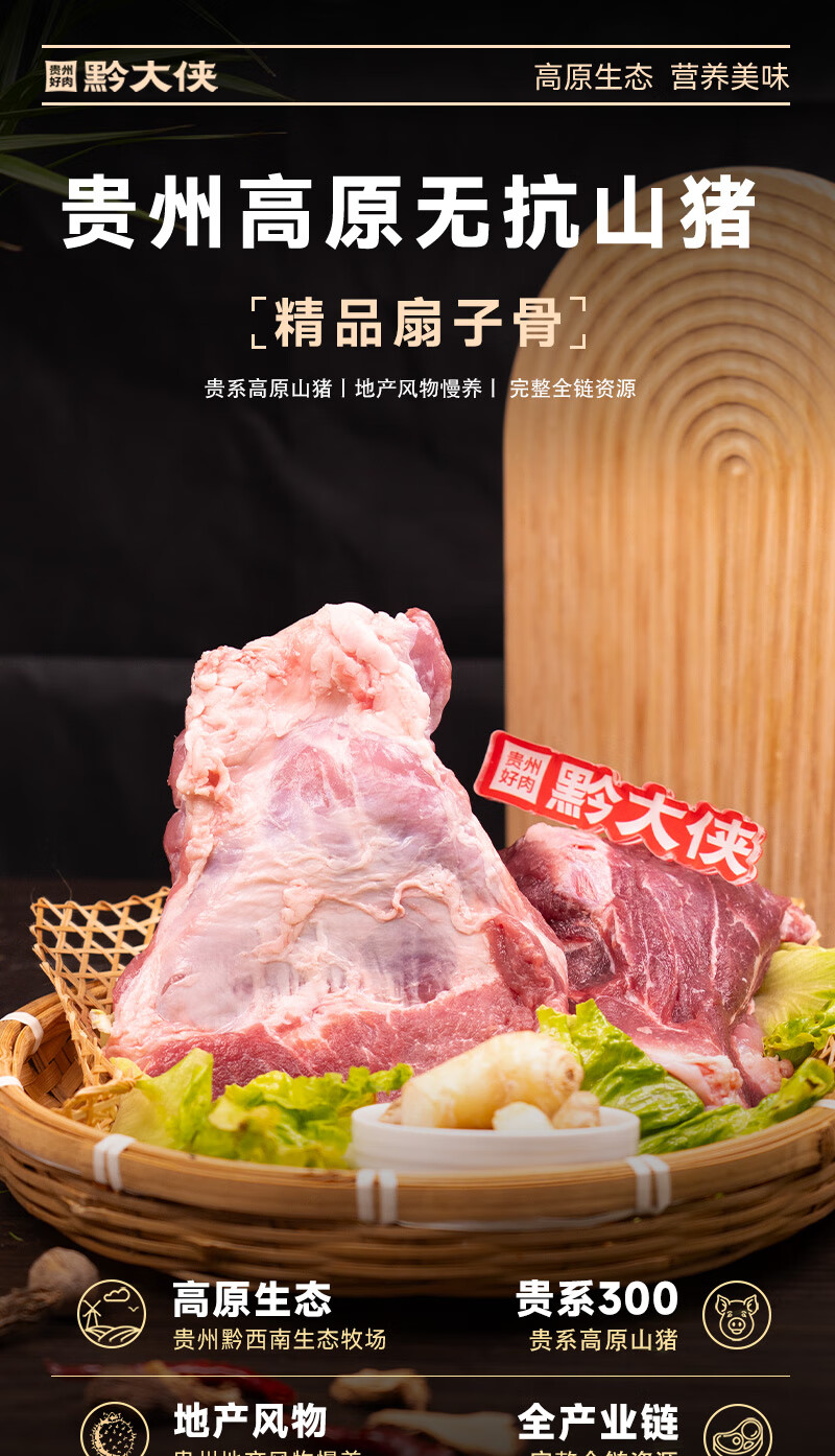黔大侠贵州高原无抗山猪精品扇子骨1斤炖煮红焖2斤猪扇子骨4斤带肉率高 扇子骨2kg(500g*4袋)