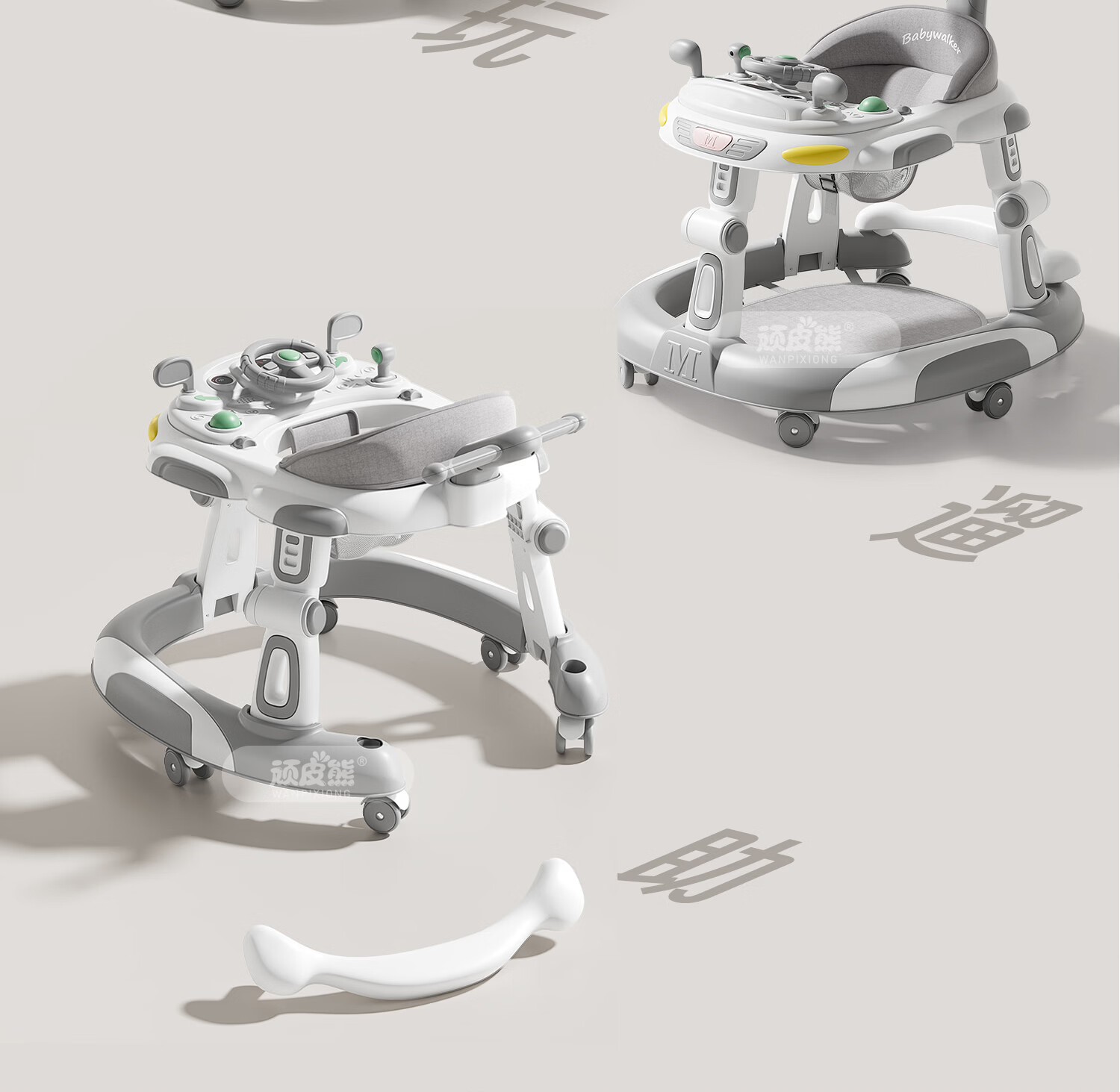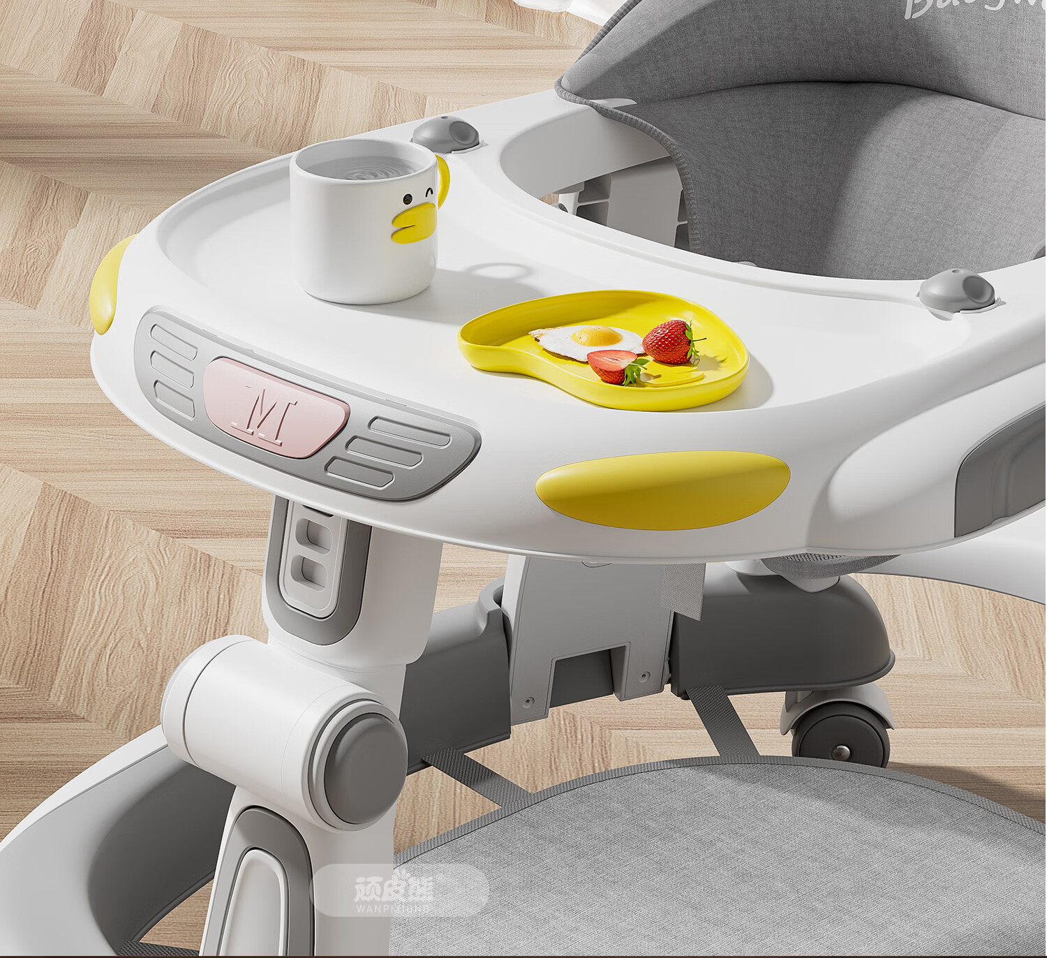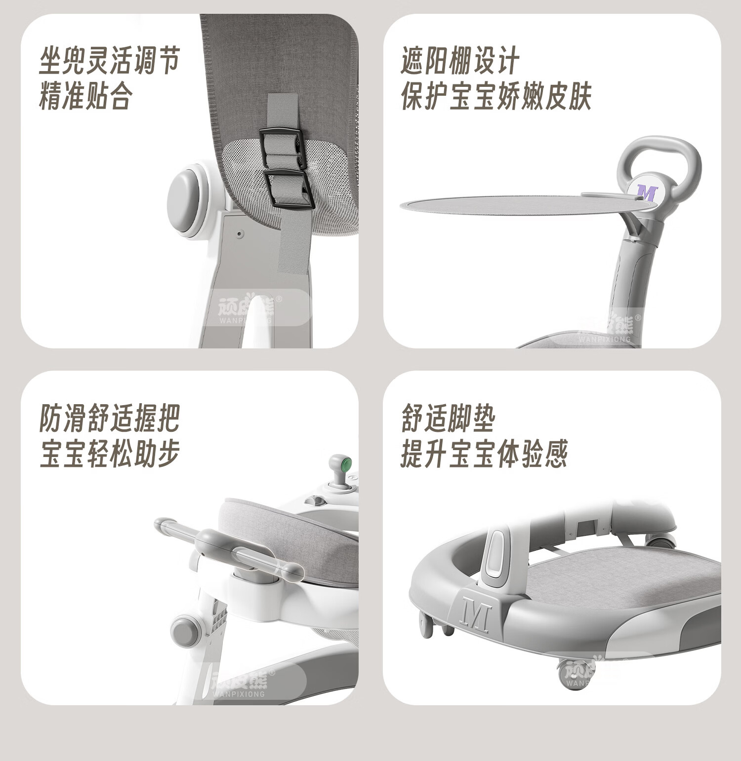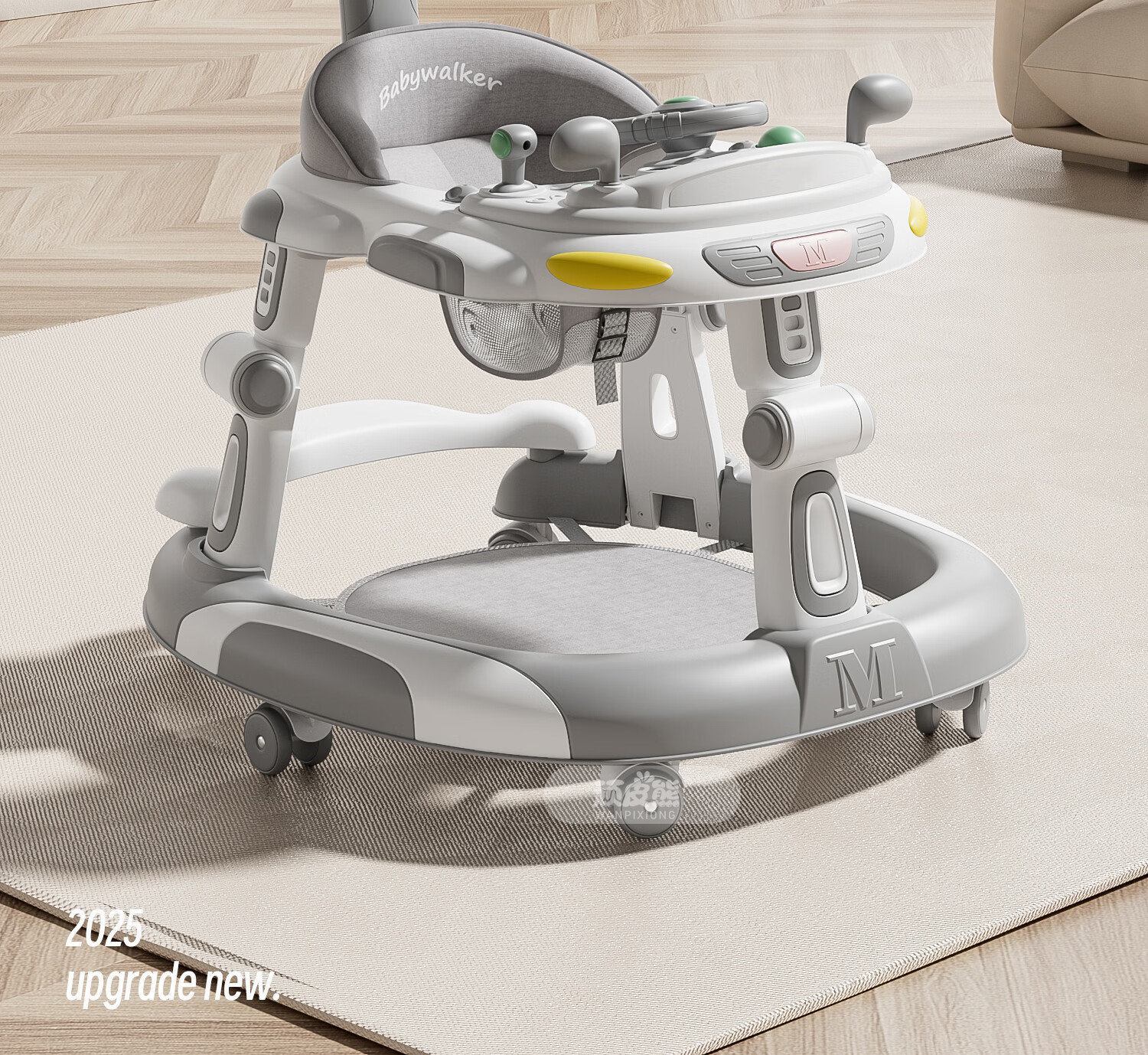 顽皮熊婴儿学步车新款多功能助步车宝宝学走路可推可坐可折叠防侧翻 612灰+餐盘+音乐+脚垫+双推把+棚