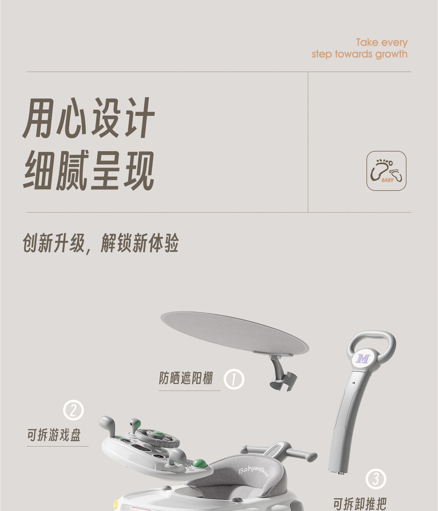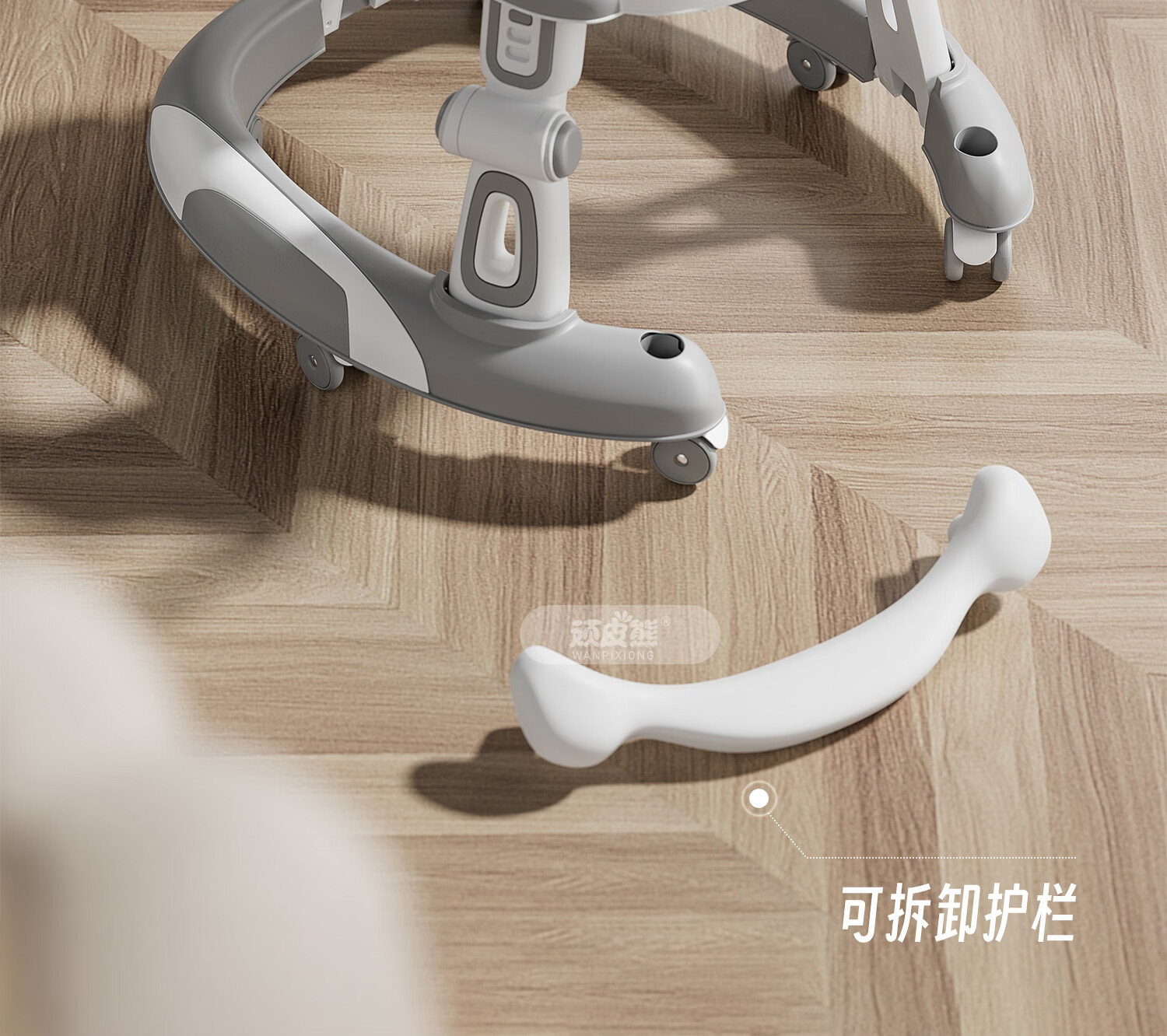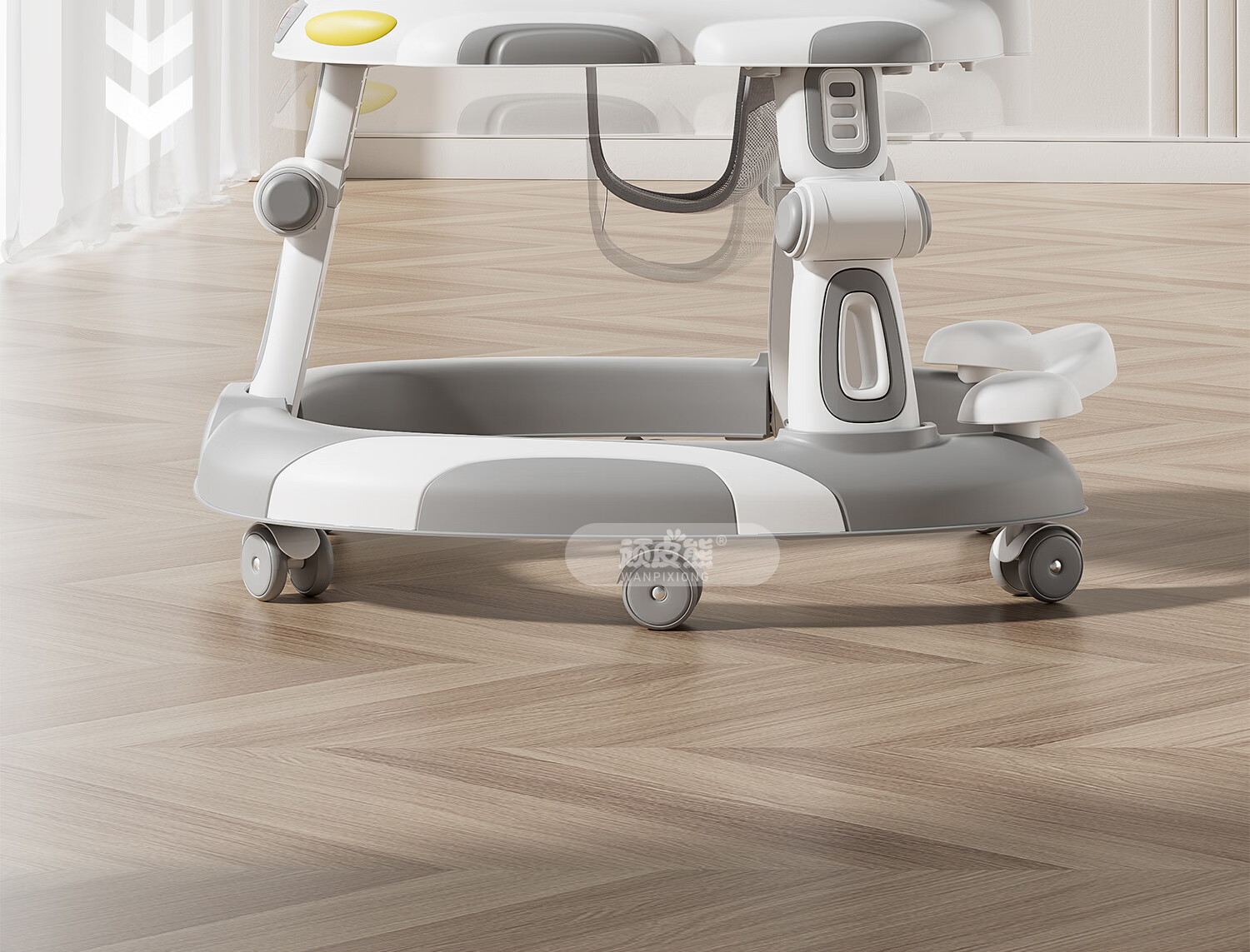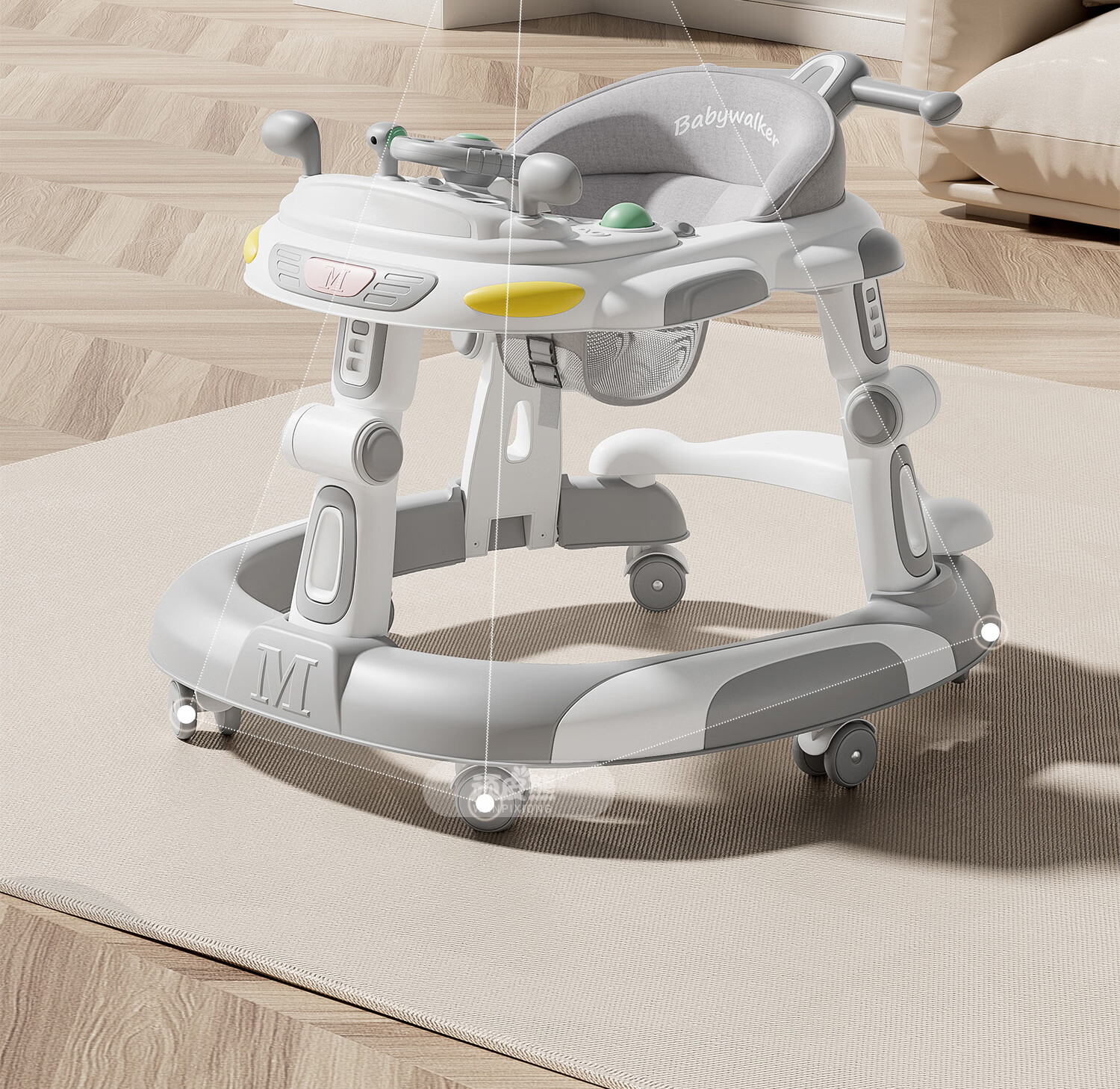 顽皮熊婴儿学步车新款多功能助步车宝宝学走路可推可坐可折叠防侧翻 612灰+餐盘+音乐+脚垫+双推把+棚