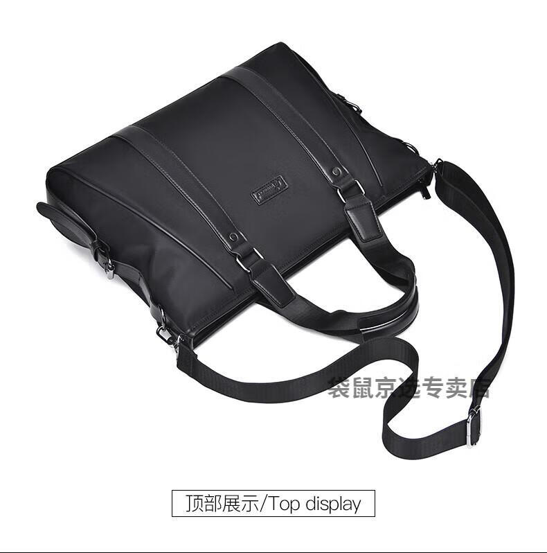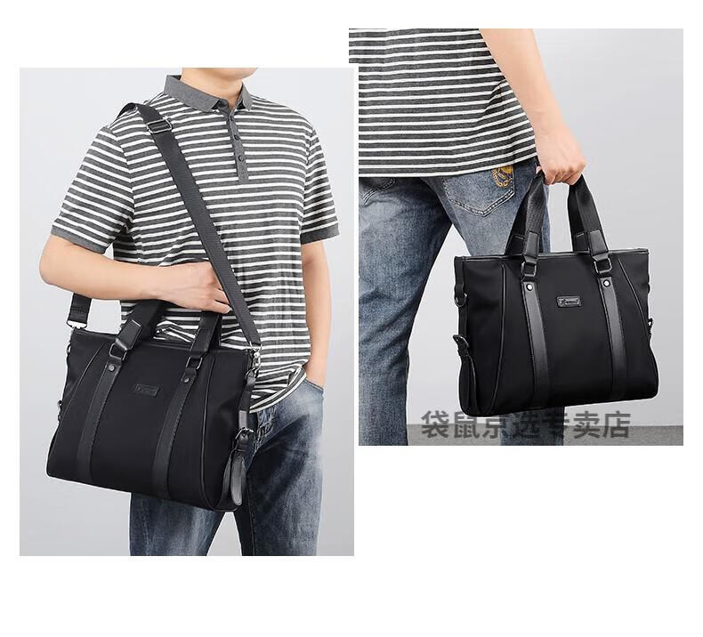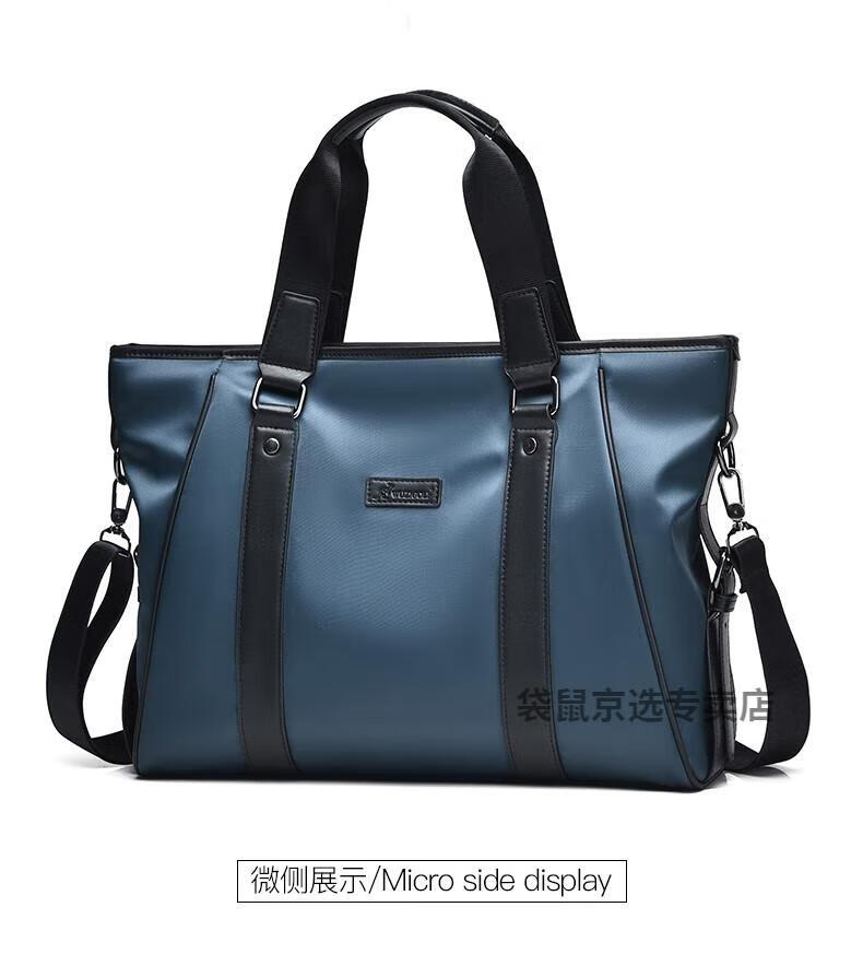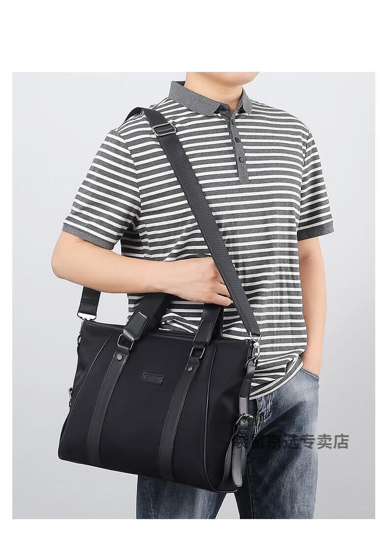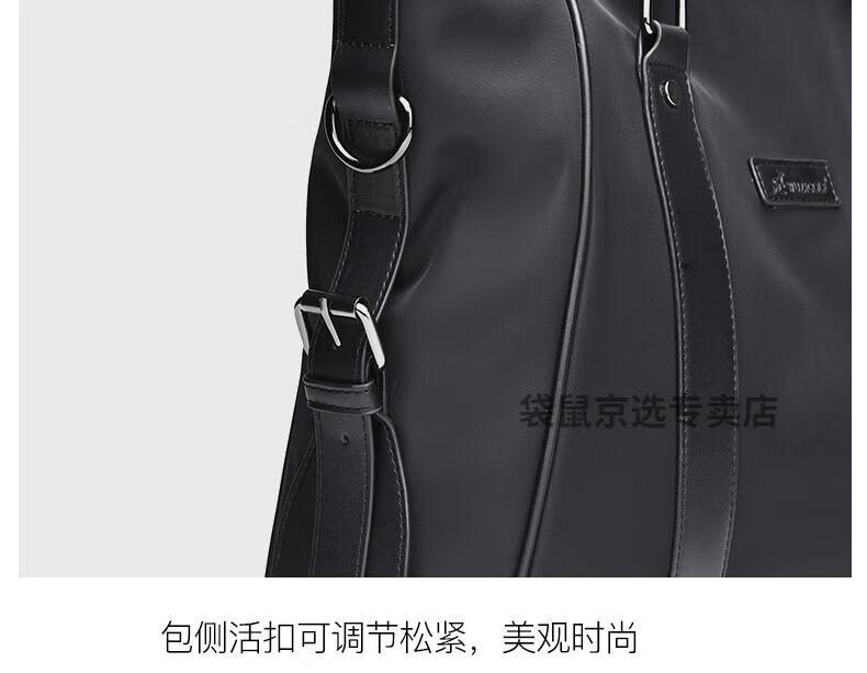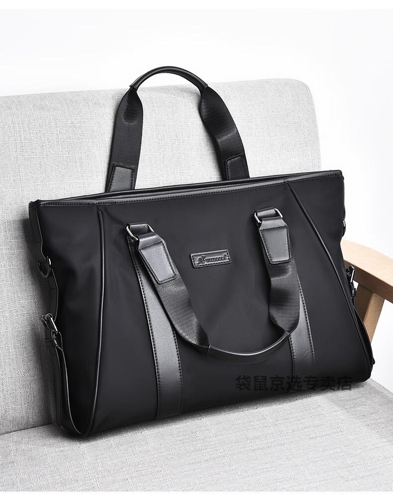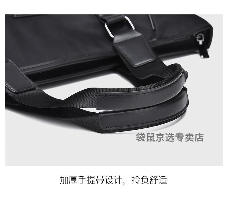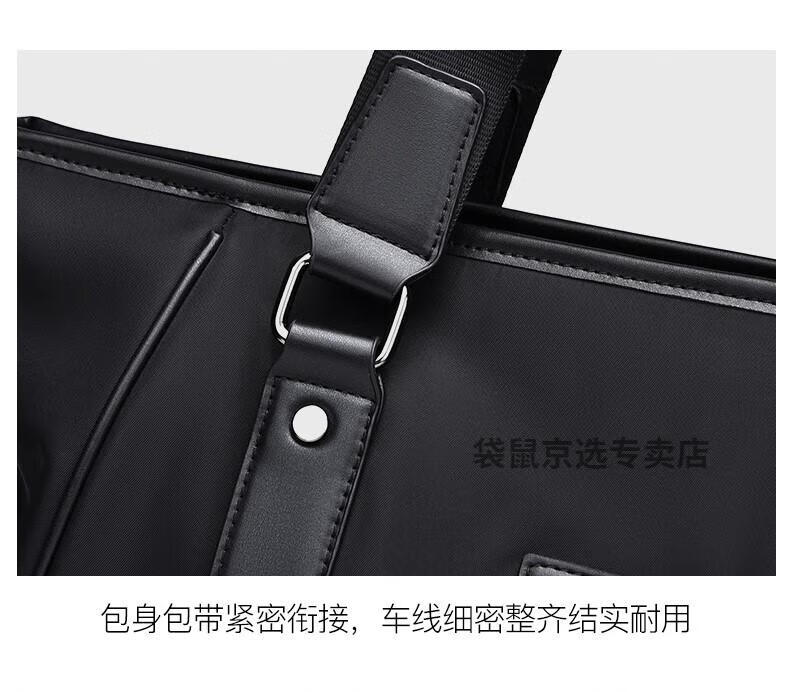 袋鼠轻奢品牌可16吋电脑包休闲防水手提包商务公文包男士单肩斜挎包男 黑色