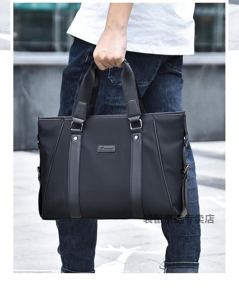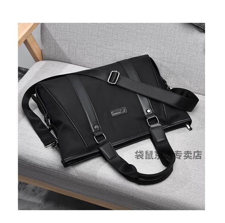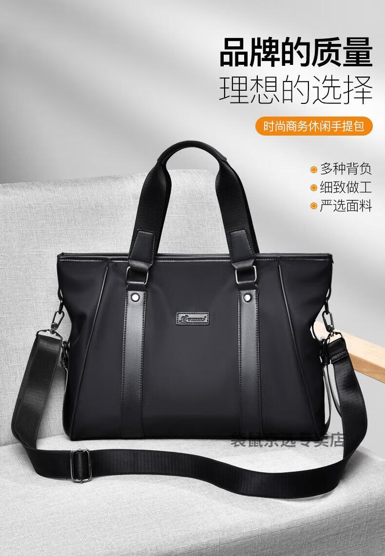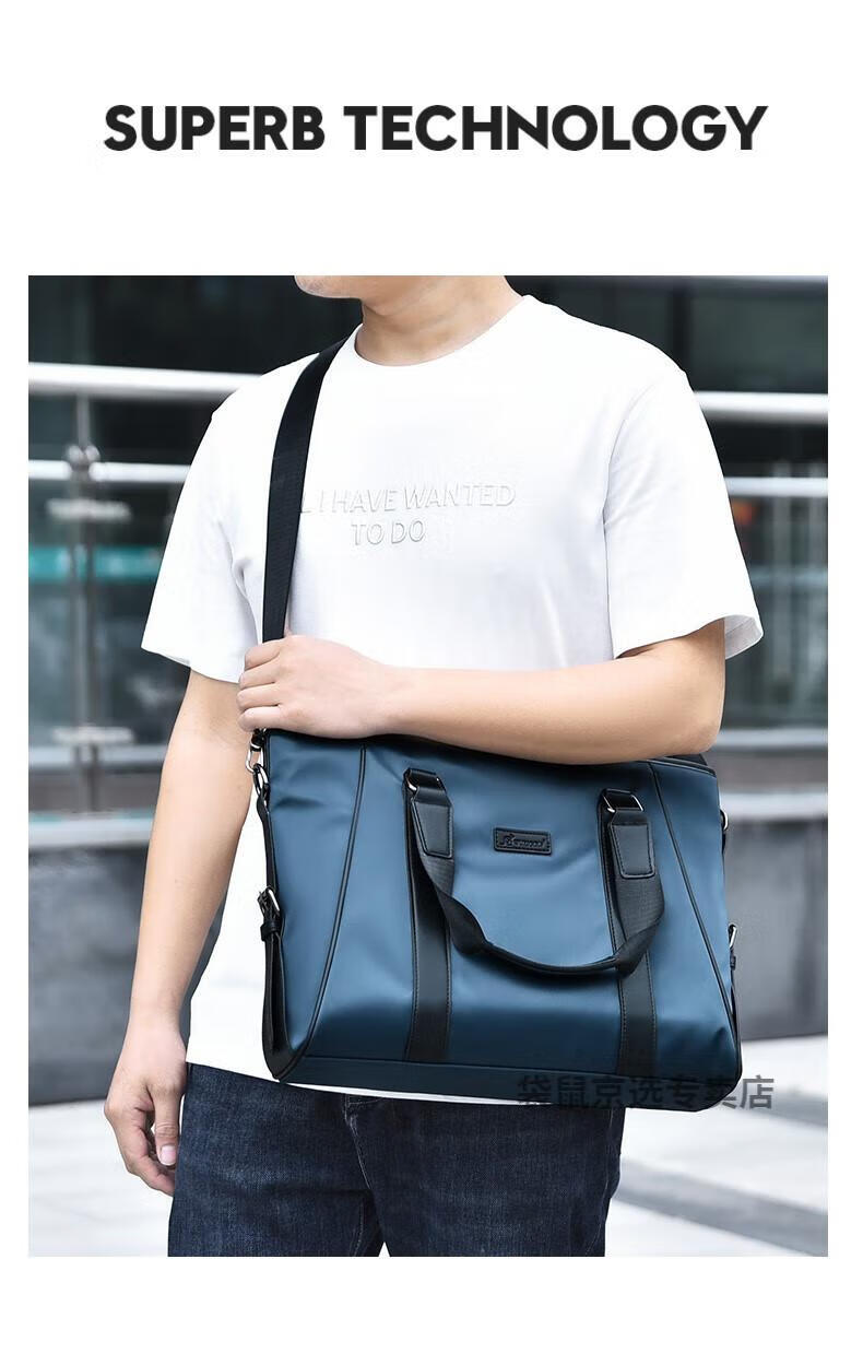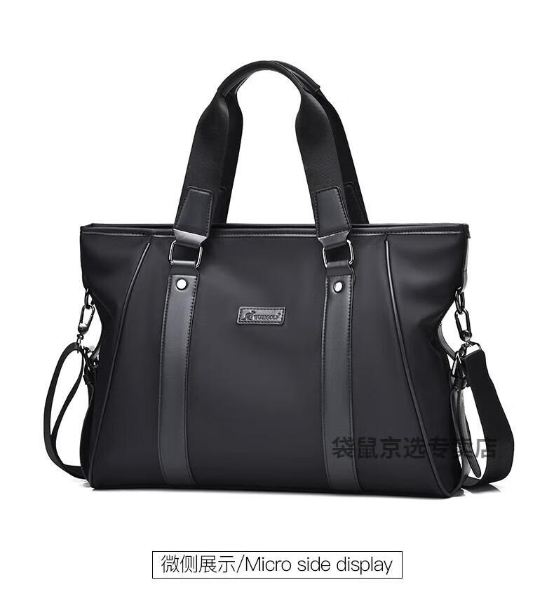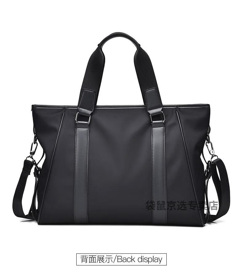 袋鼠轻奢品牌可16吋电脑包休闲防水手提包商务公文包男士单肩斜挎包男 黑色