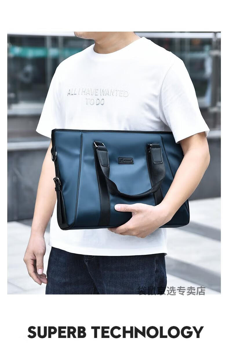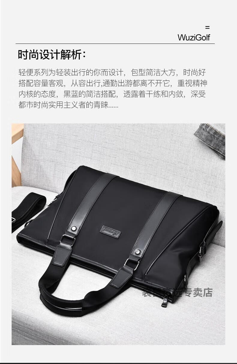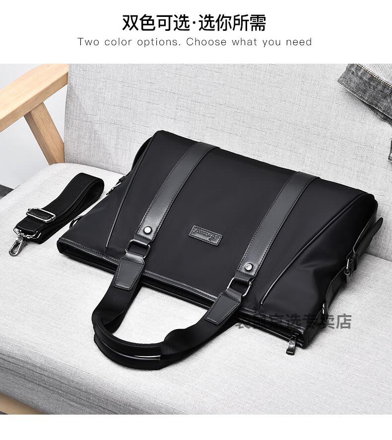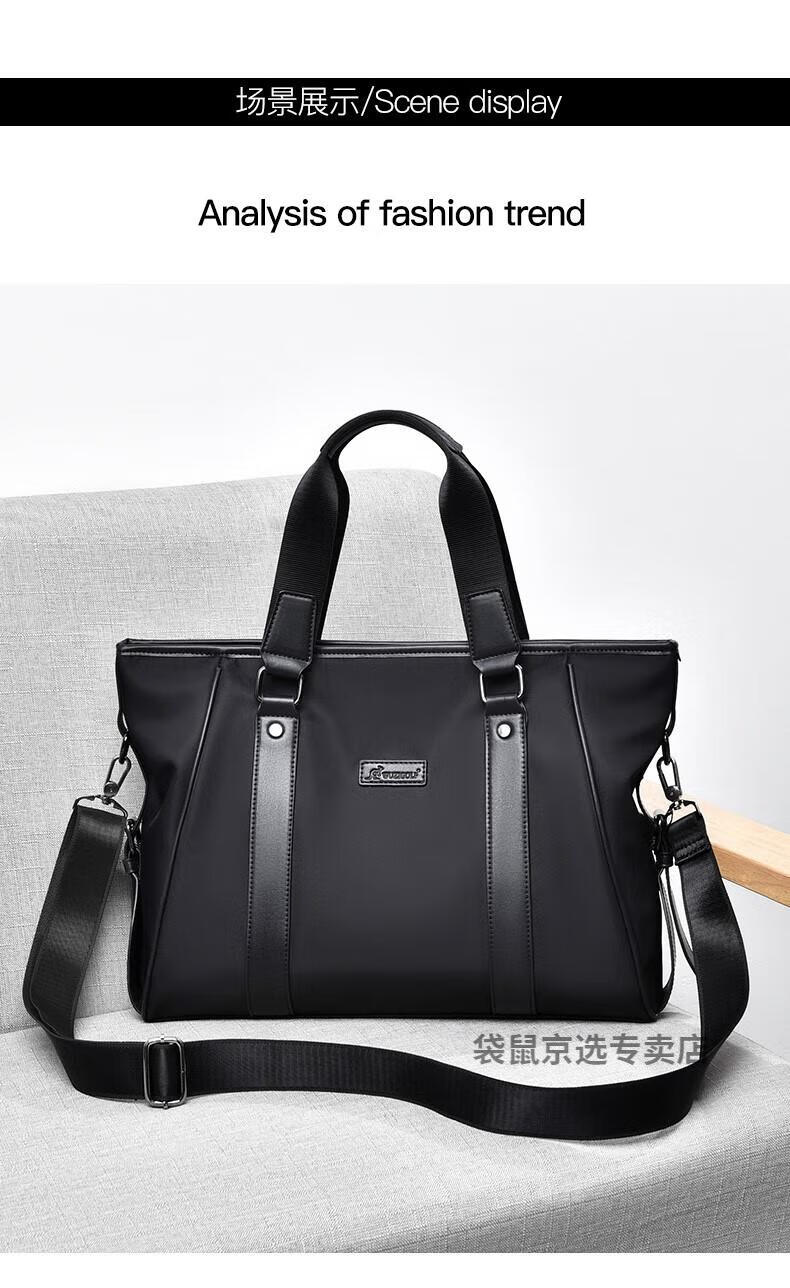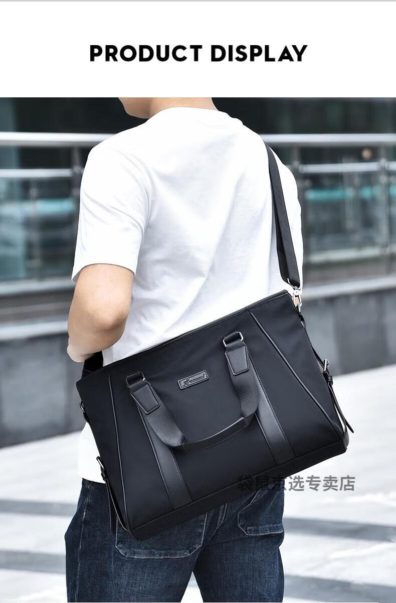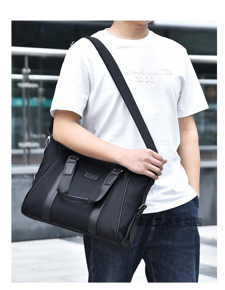 袋鼠轻奢品牌可16吋电脑包休闲防水手提包商务公文包男士单肩斜挎包男 黑色