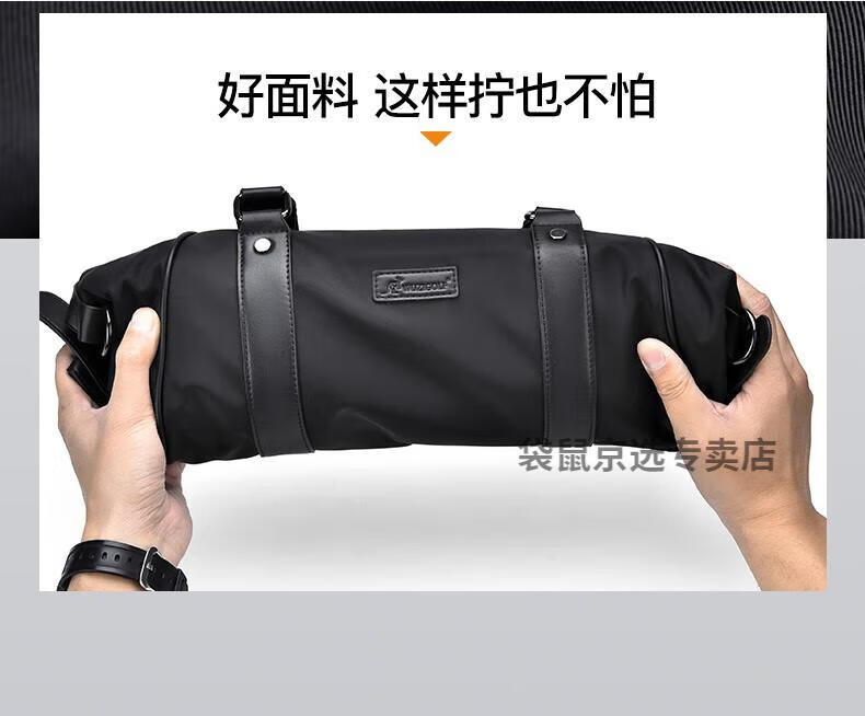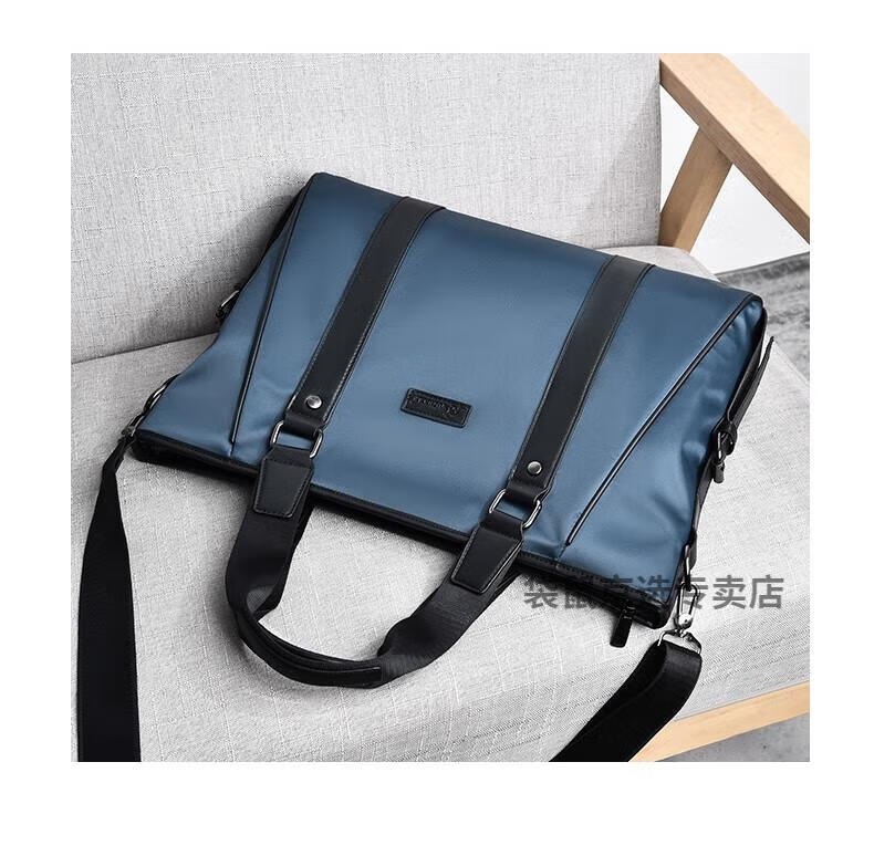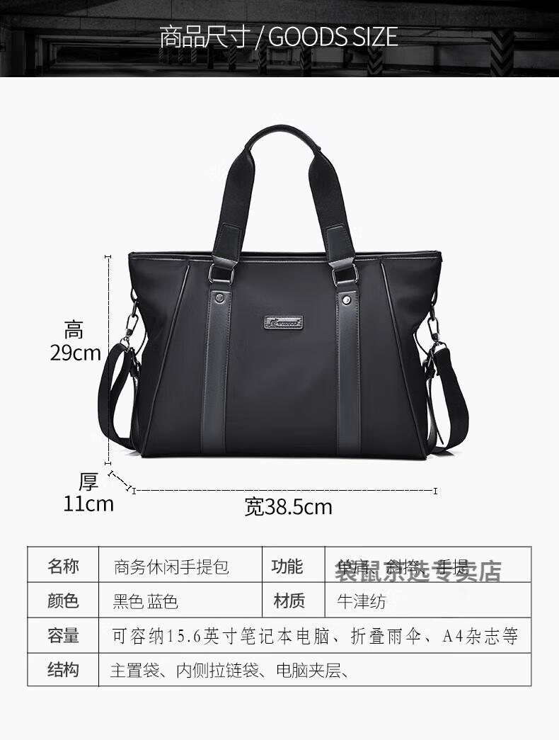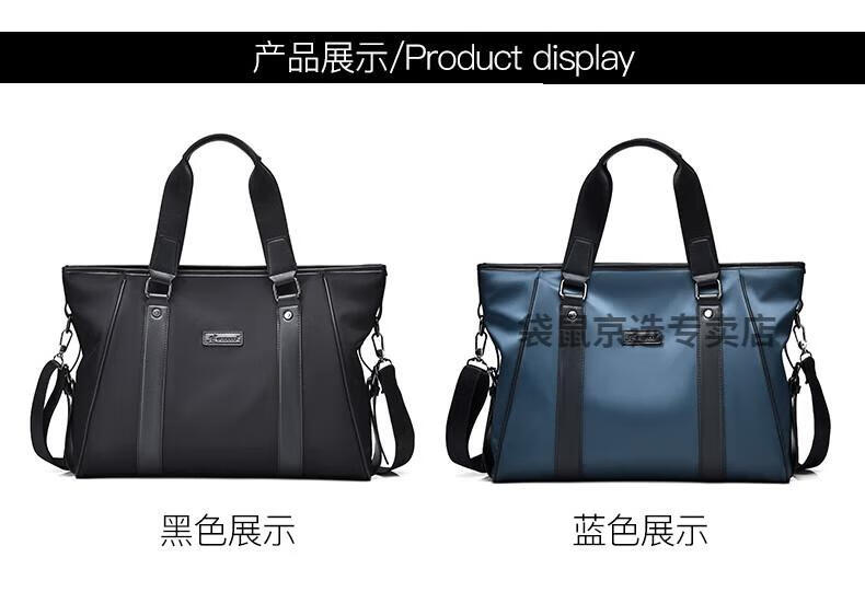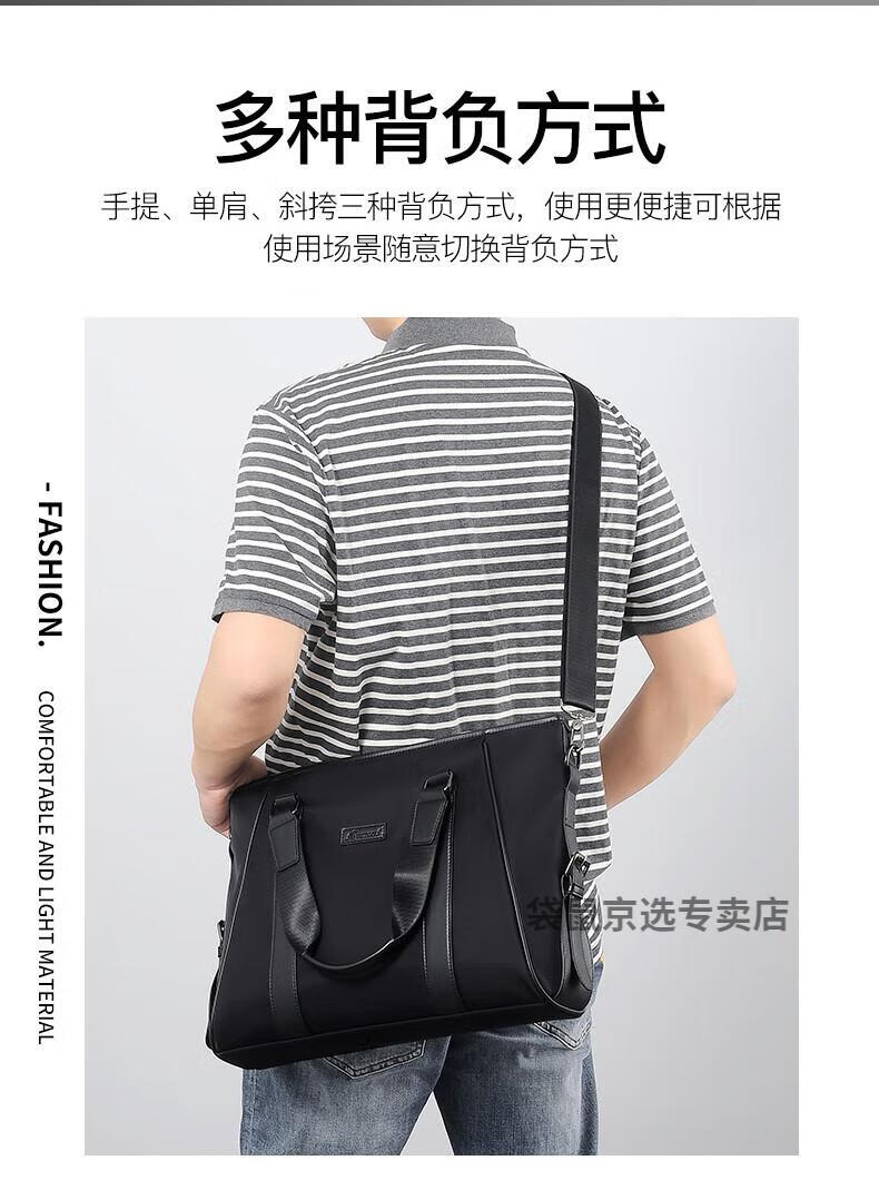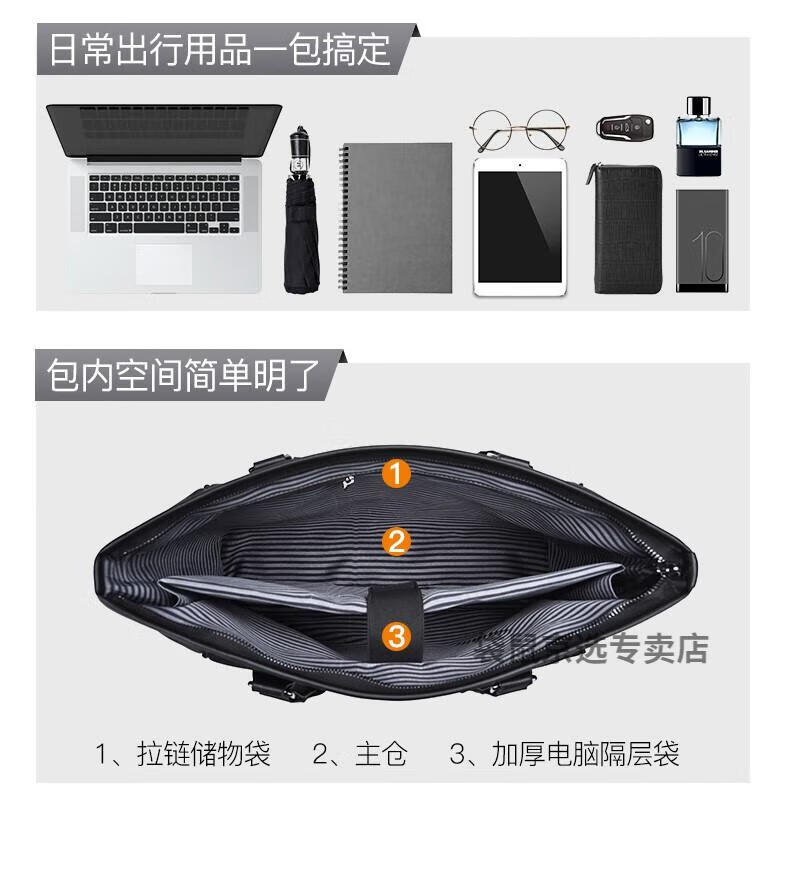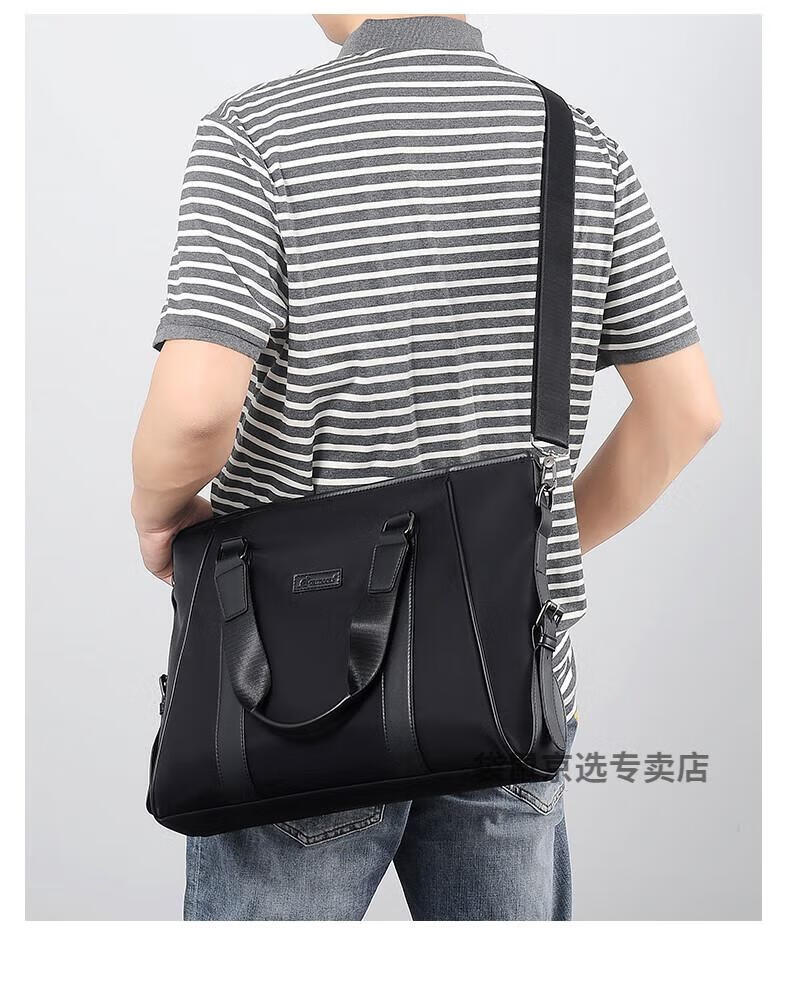 袋鼠轻奢品牌可16吋电脑包休闲防水手提包商务公文包男士单肩斜挎包男 黑色