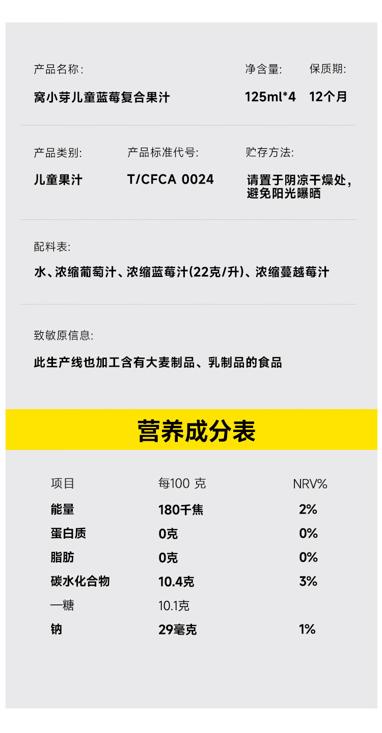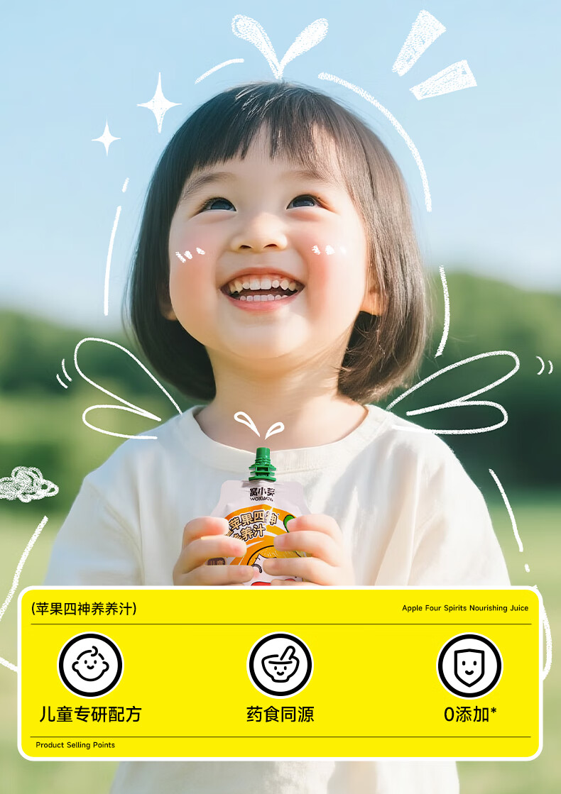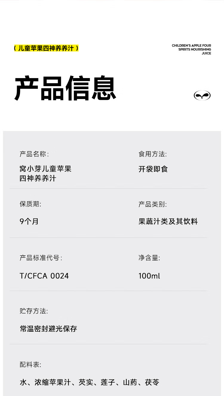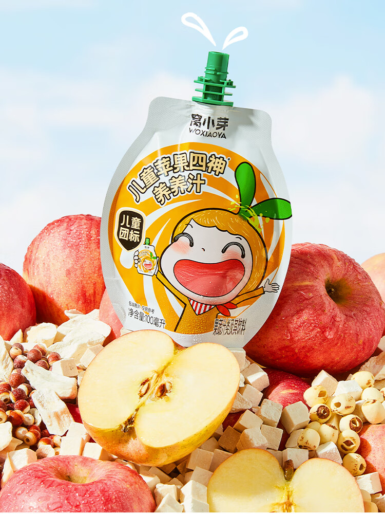 窝小芽 儿童果汁苹果四神汤山楂金银花汁0添加糖饮料享一岁以上宝宝食谱 山药苹果四神汁 100ml*10袋