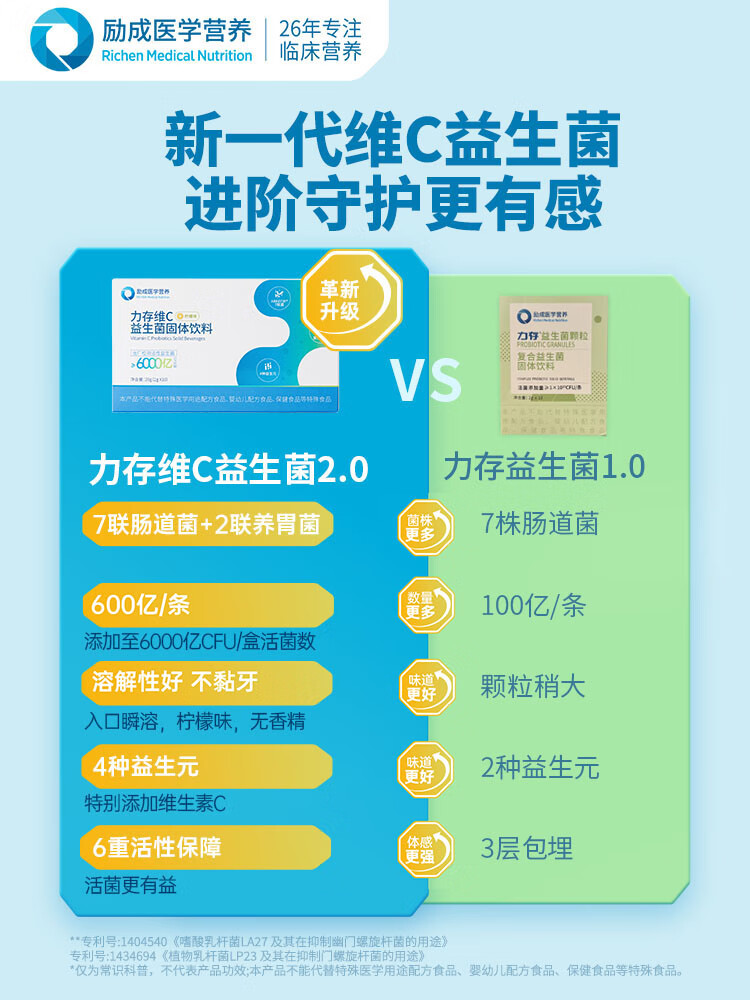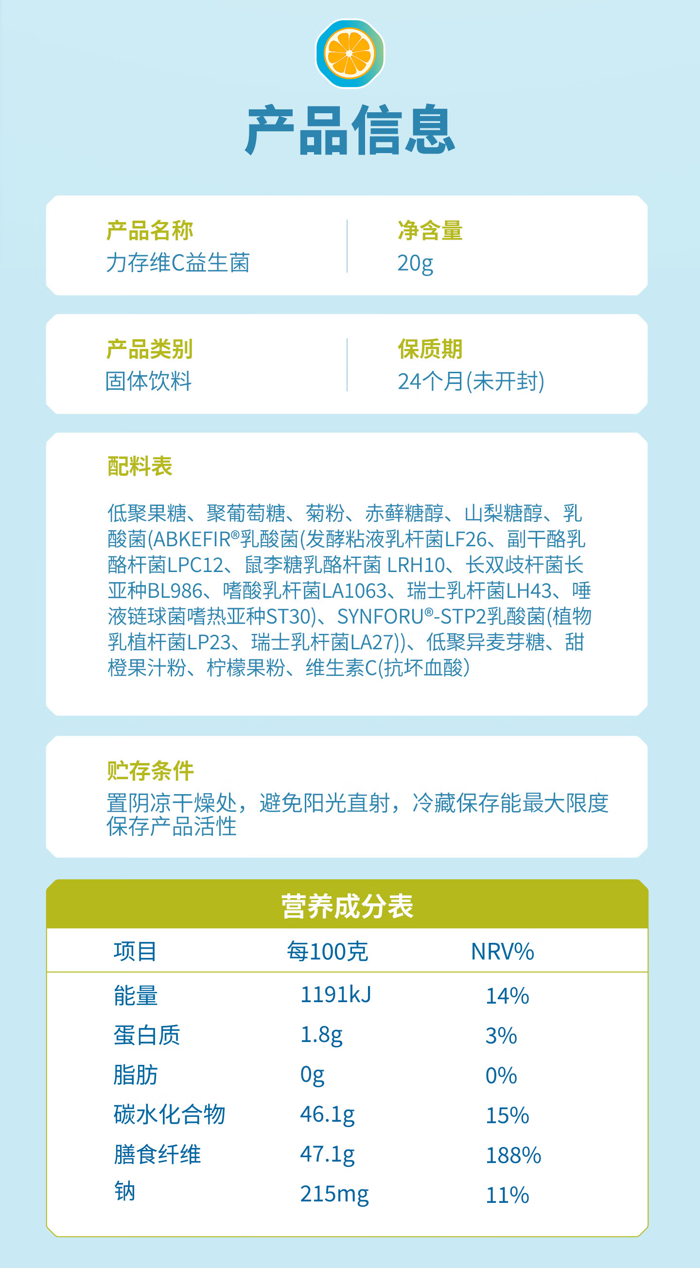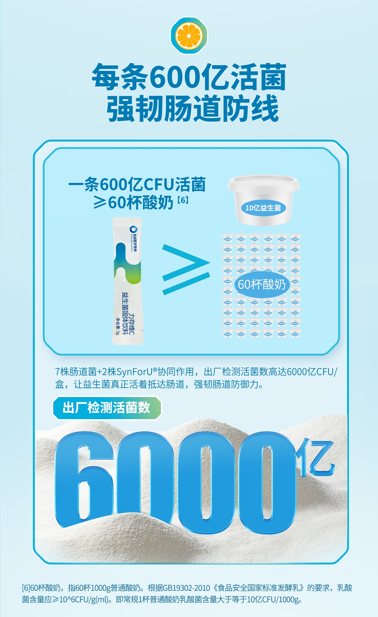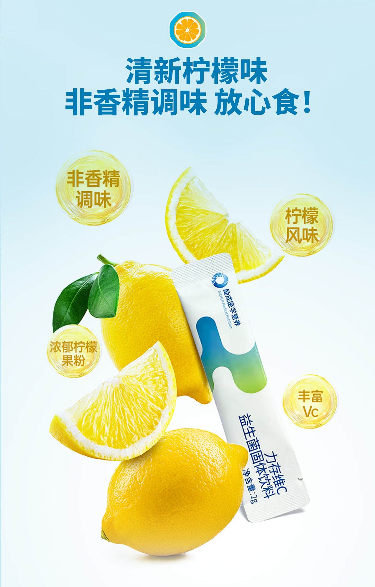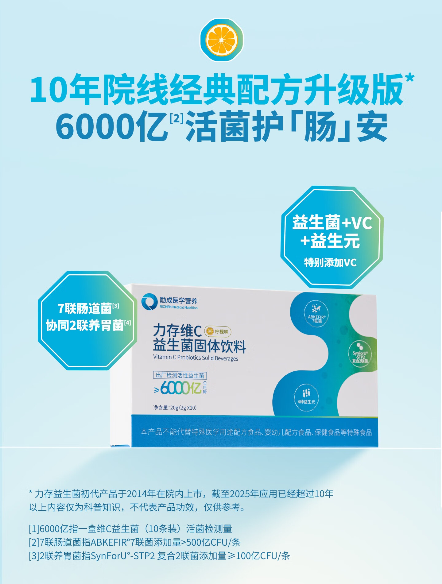 力存维C益生菌2g*10支 粉剂柠檬味肠胃肠道有益菌群600亿活菌 2gx10条 益生菌 2g*10包 (1盒)