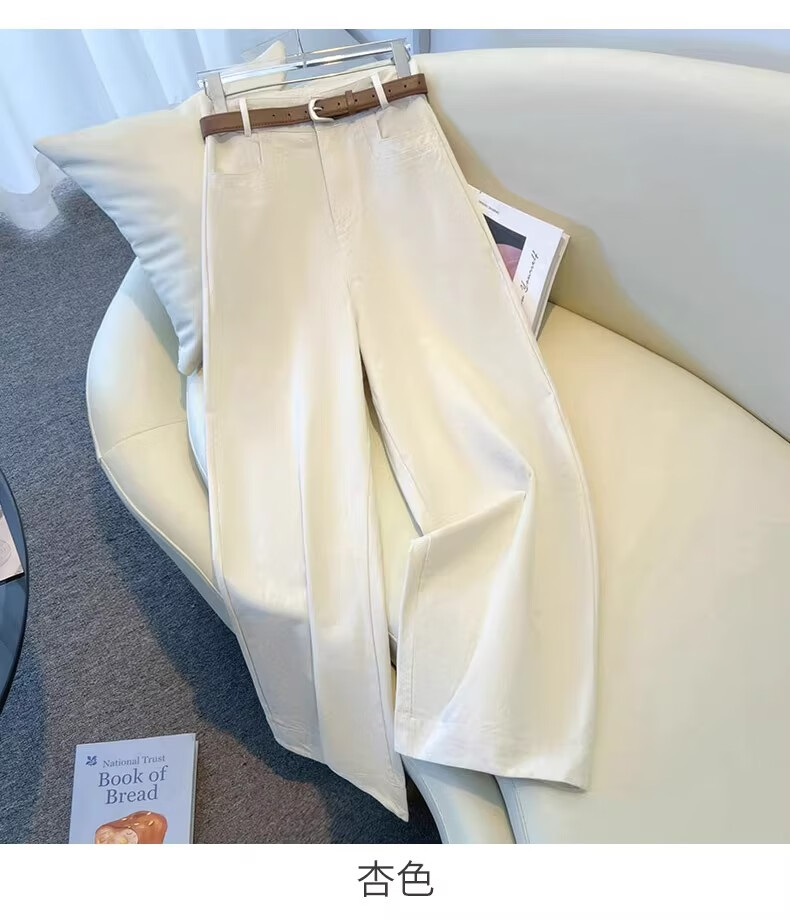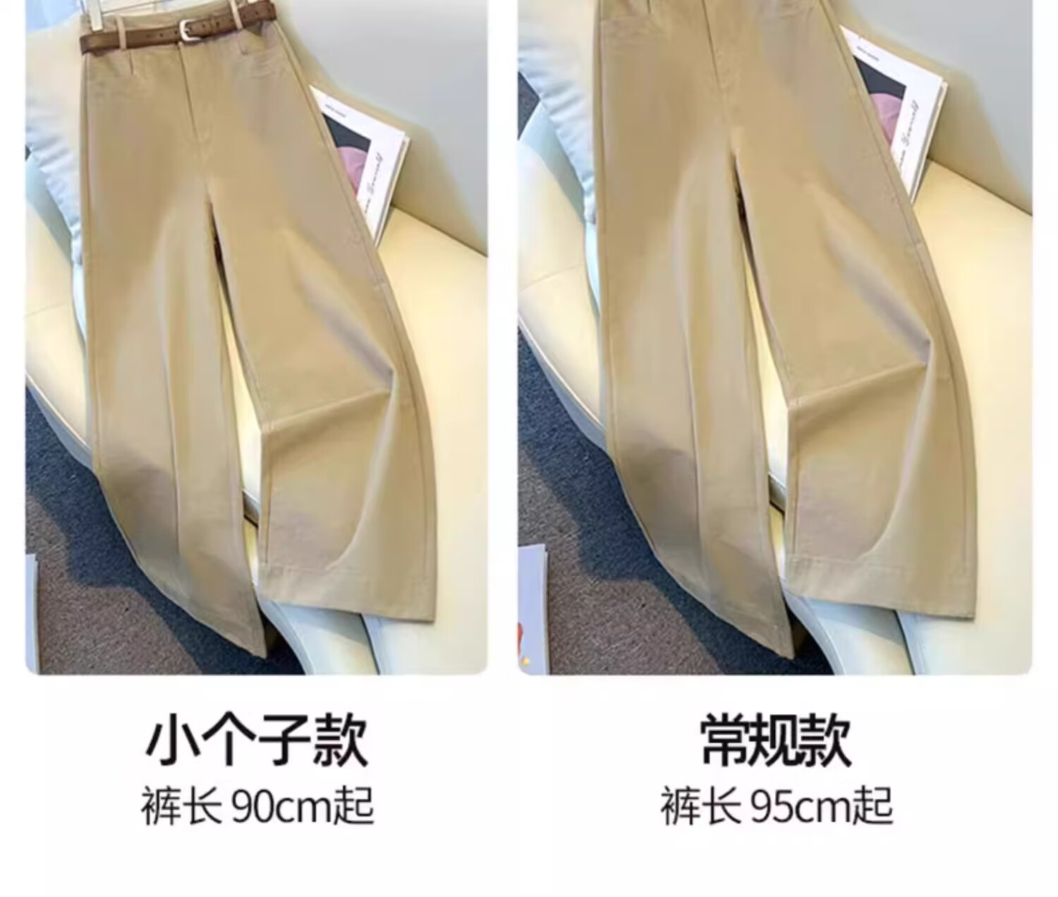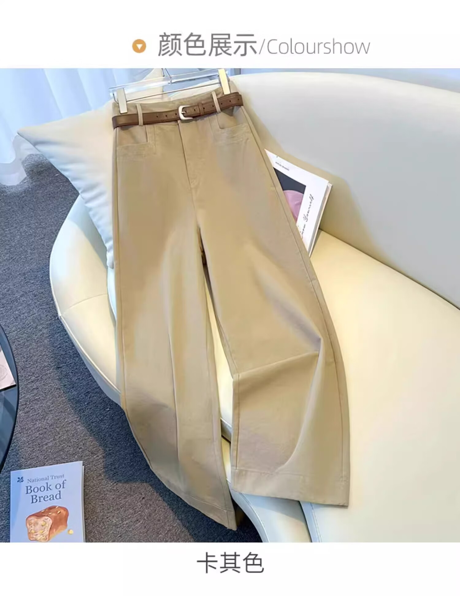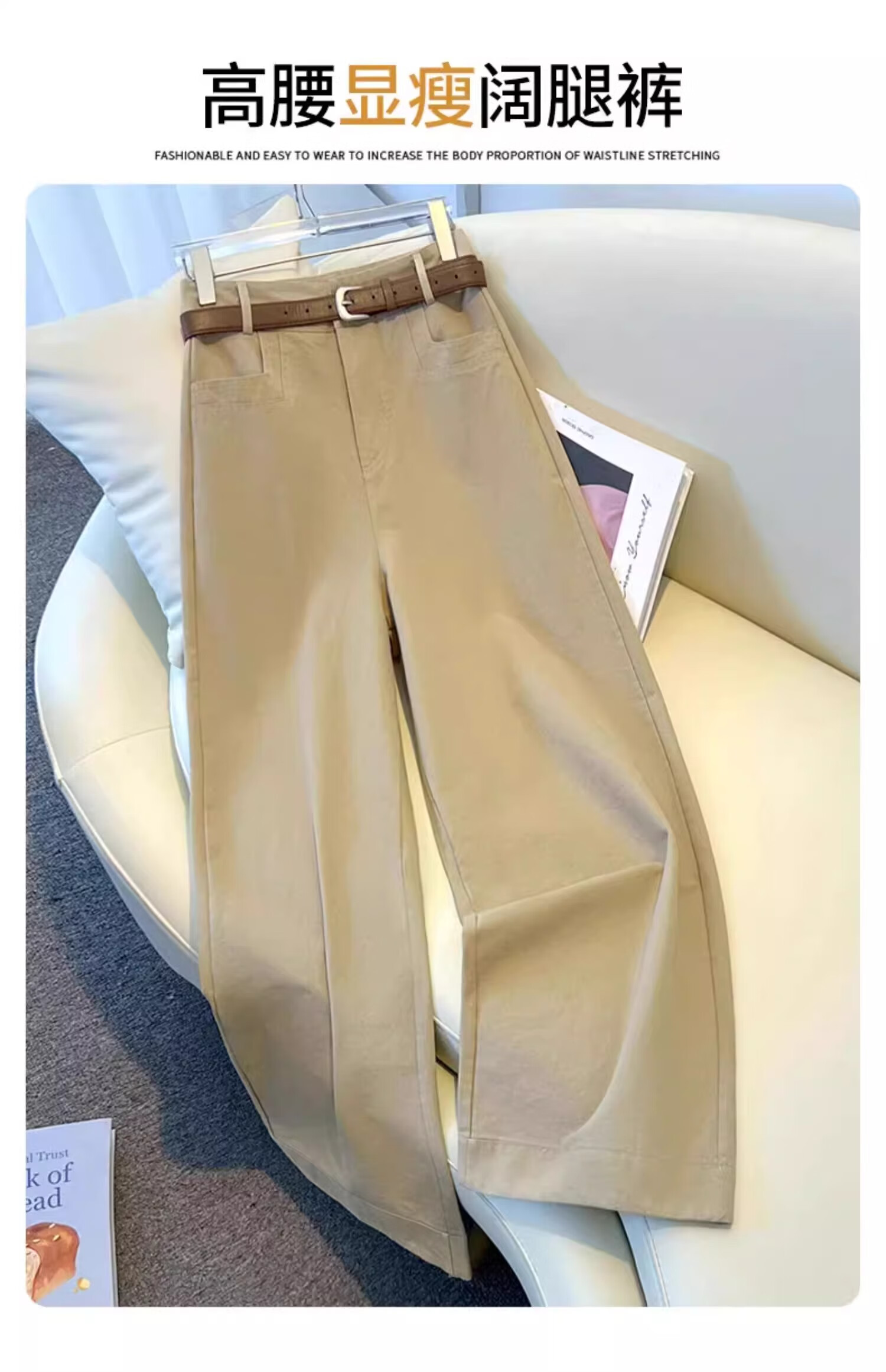 德莉娅天丝棉阔腿裤女秋季2025年新款女高腰宽松高级浅色小个子直筒裤女 卡其色九分-送腰带-裤长90CM起 3XL /31建议135-145斤