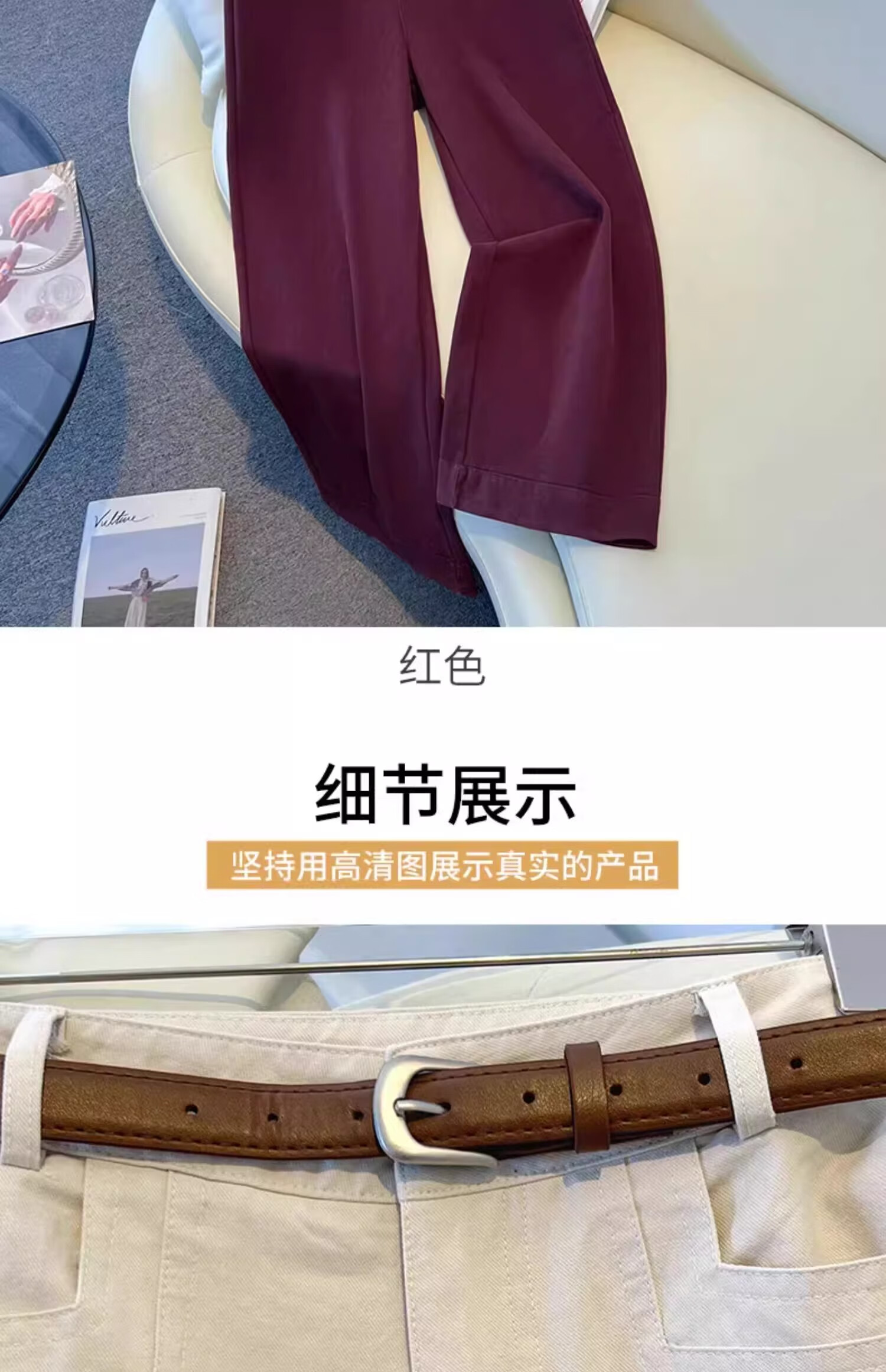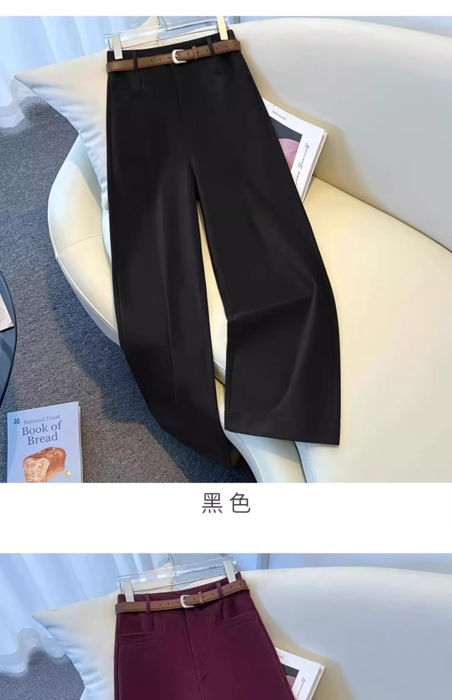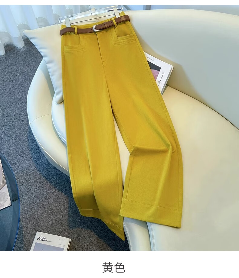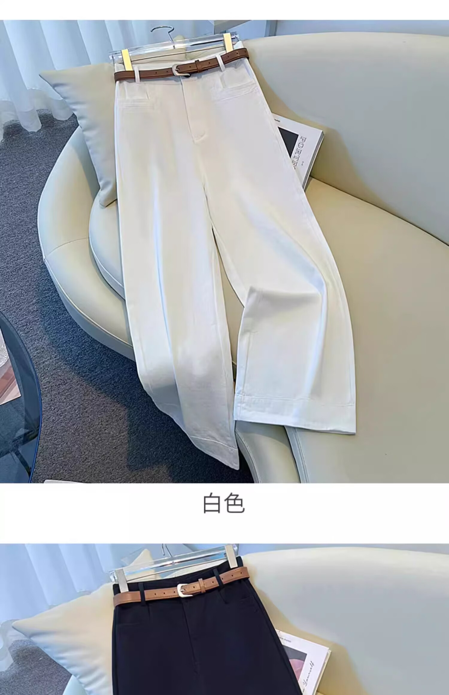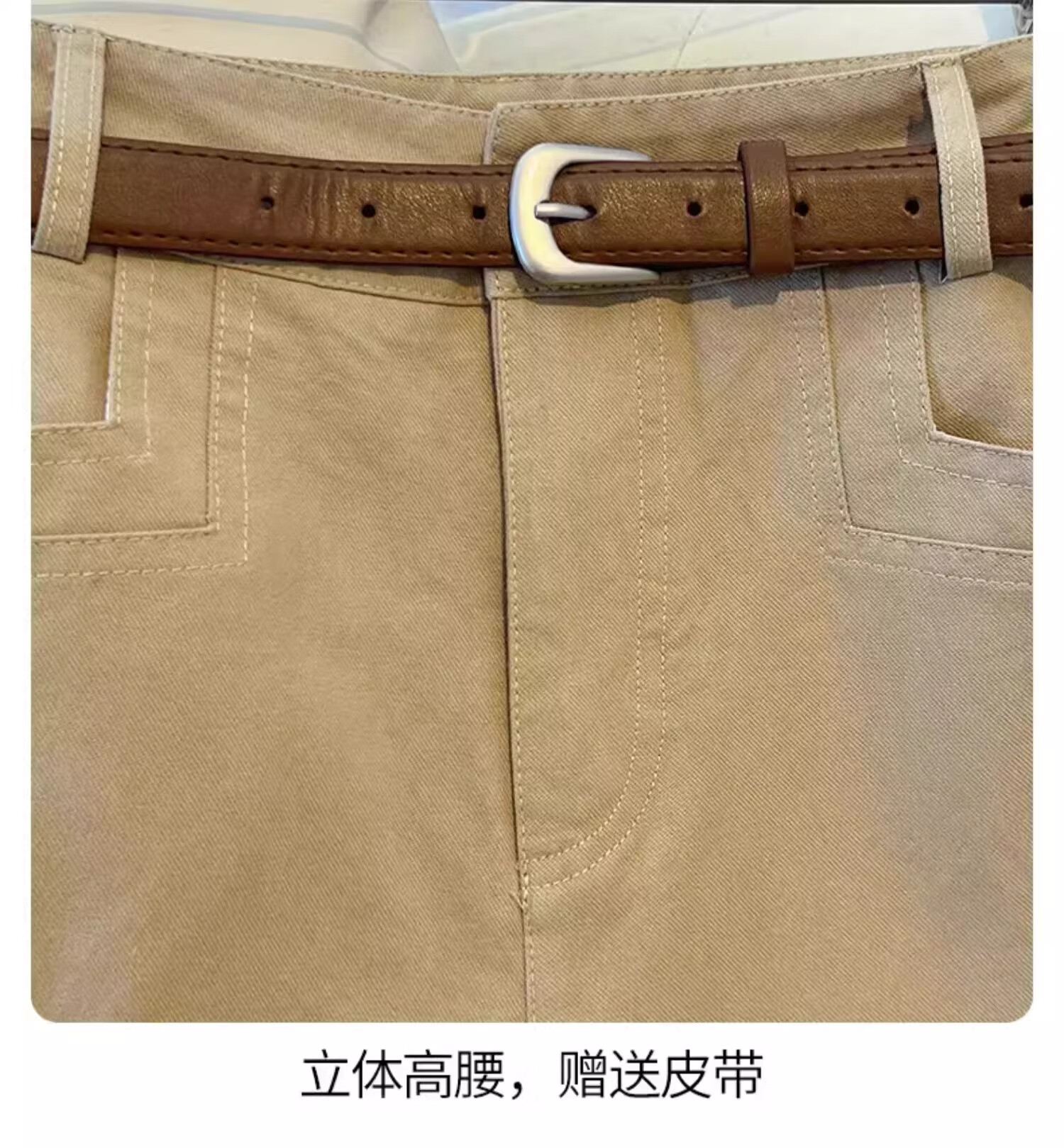 德莉娅天丝棉阔腿裤女秋季2025年新款女高腰宽松高级浅色小个子直筒裤女 卡其色九分-送腰带-裤长90CM起 3XL /31建议135-145斤