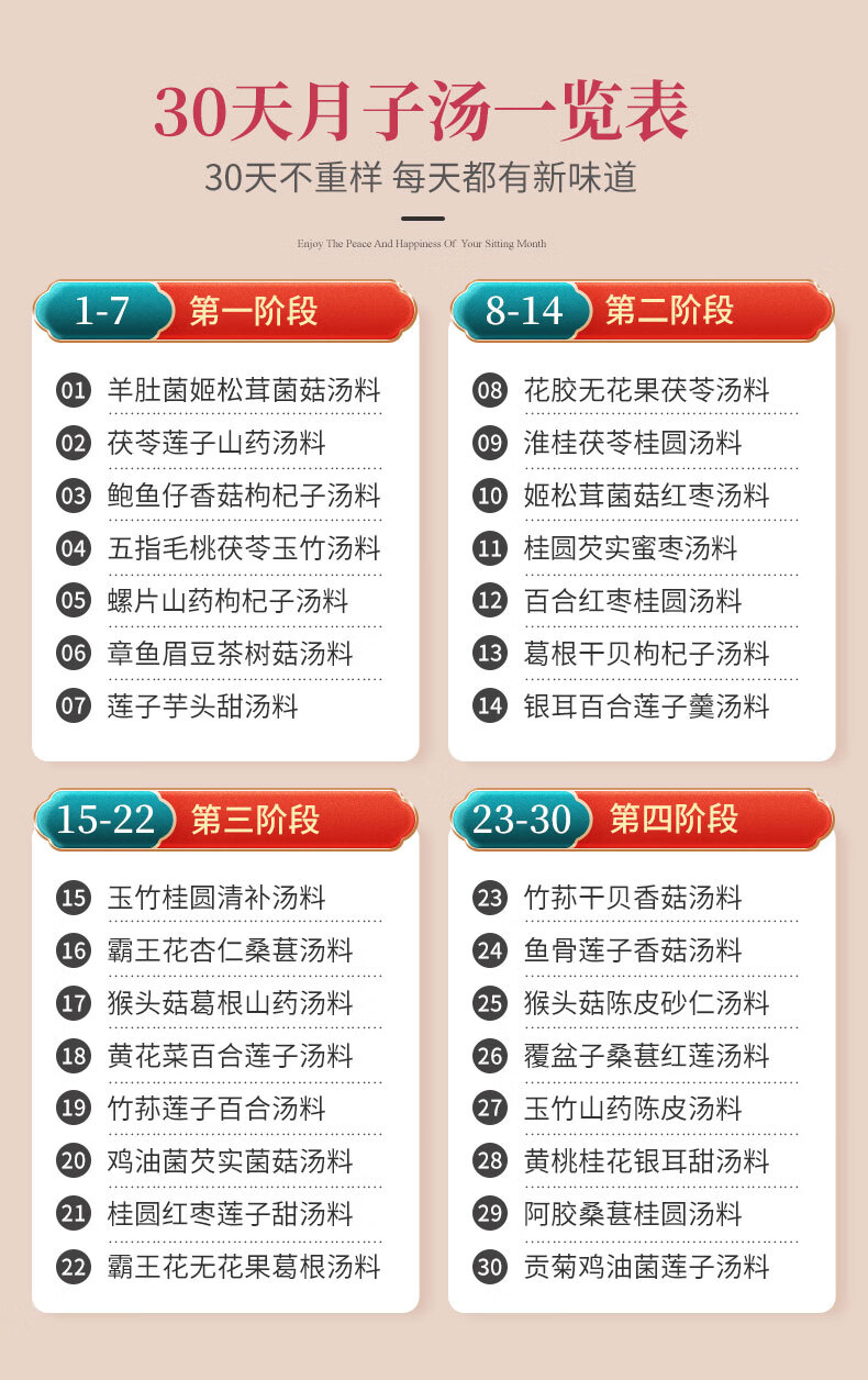 知安和月子餐食材包30天月子汤煲汤料产妇月子营养品人流小产后调理补品 30天豪华月子汤(每天不重样)