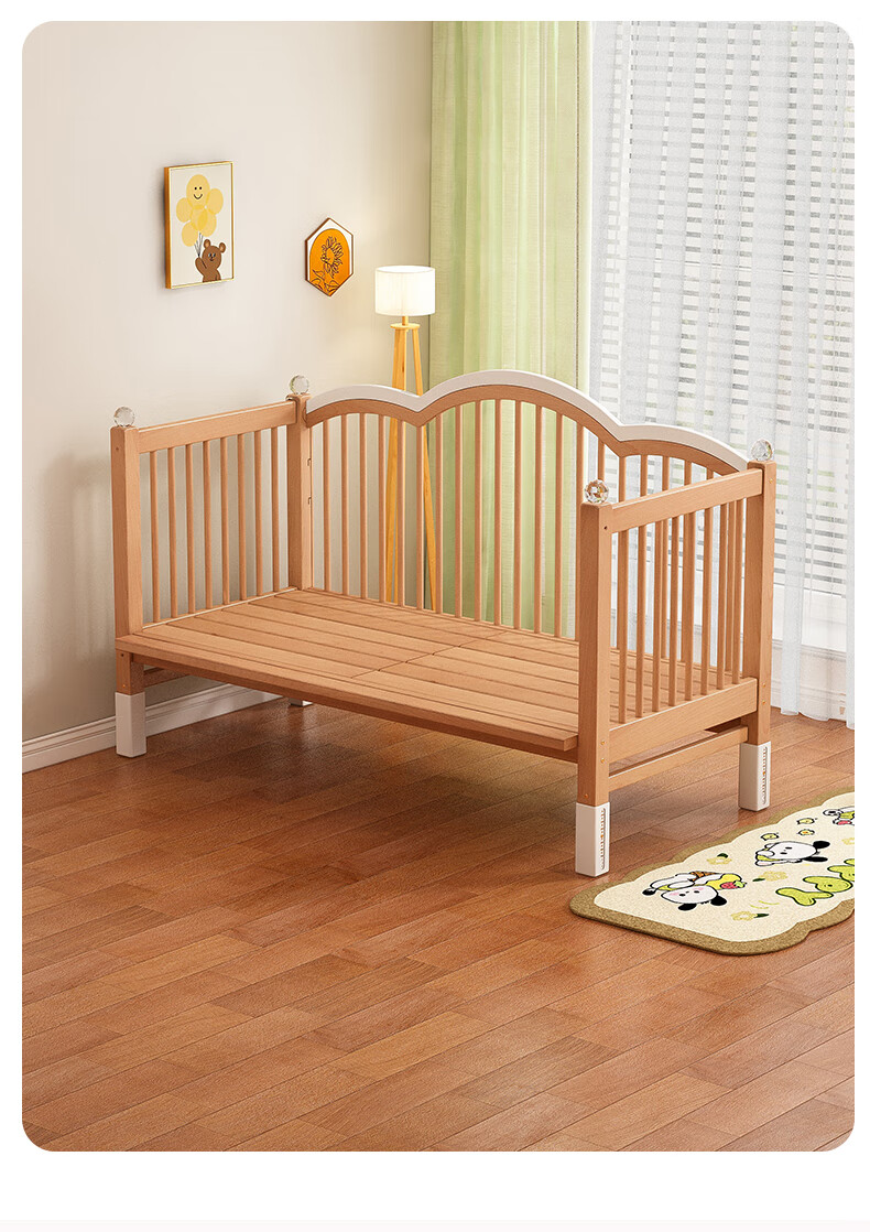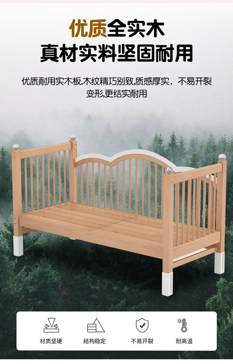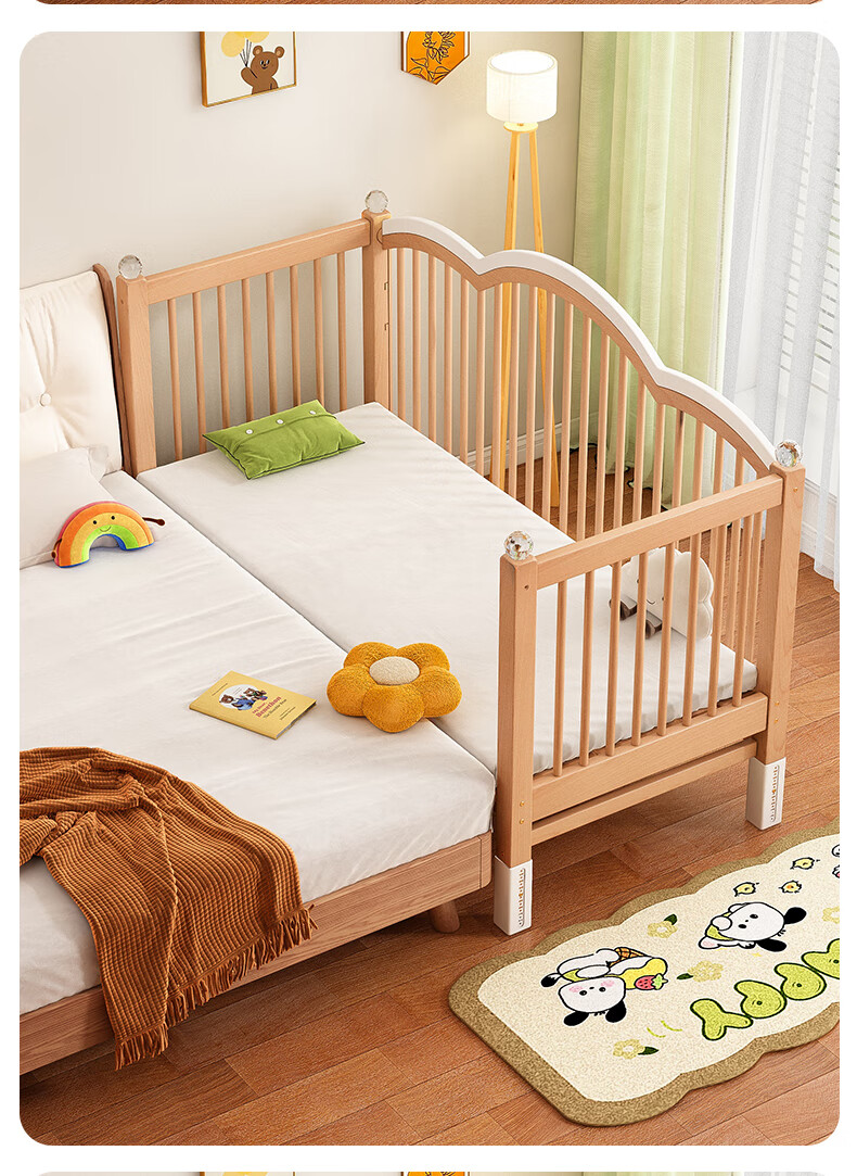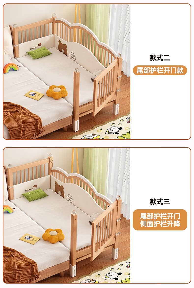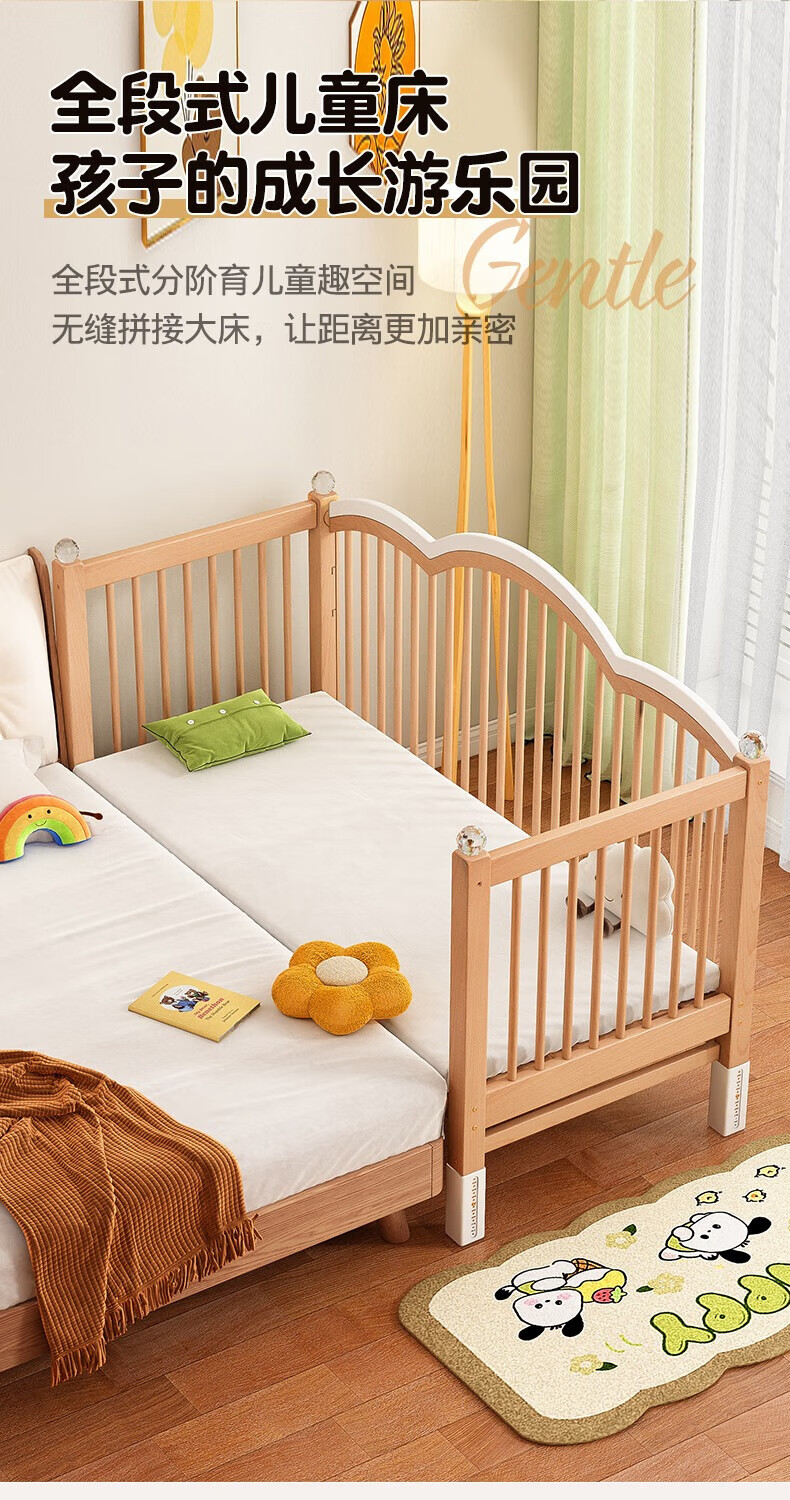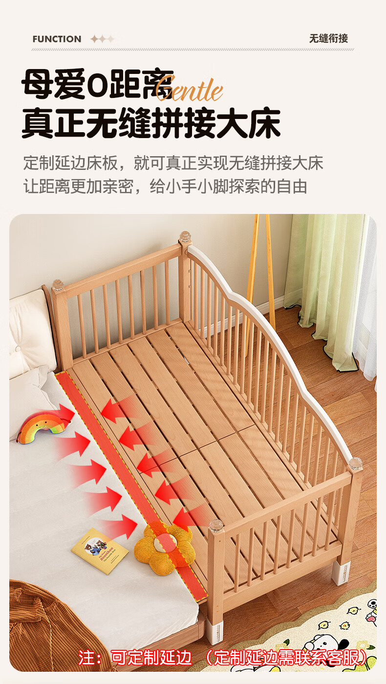 贝幸福榉木儿童拼接床实木婴儿床拼接大床可升降护栏加宽床边宝宝单人床 侧升降款+7cm空气纤维垫+床围 200*50cm【可升降】