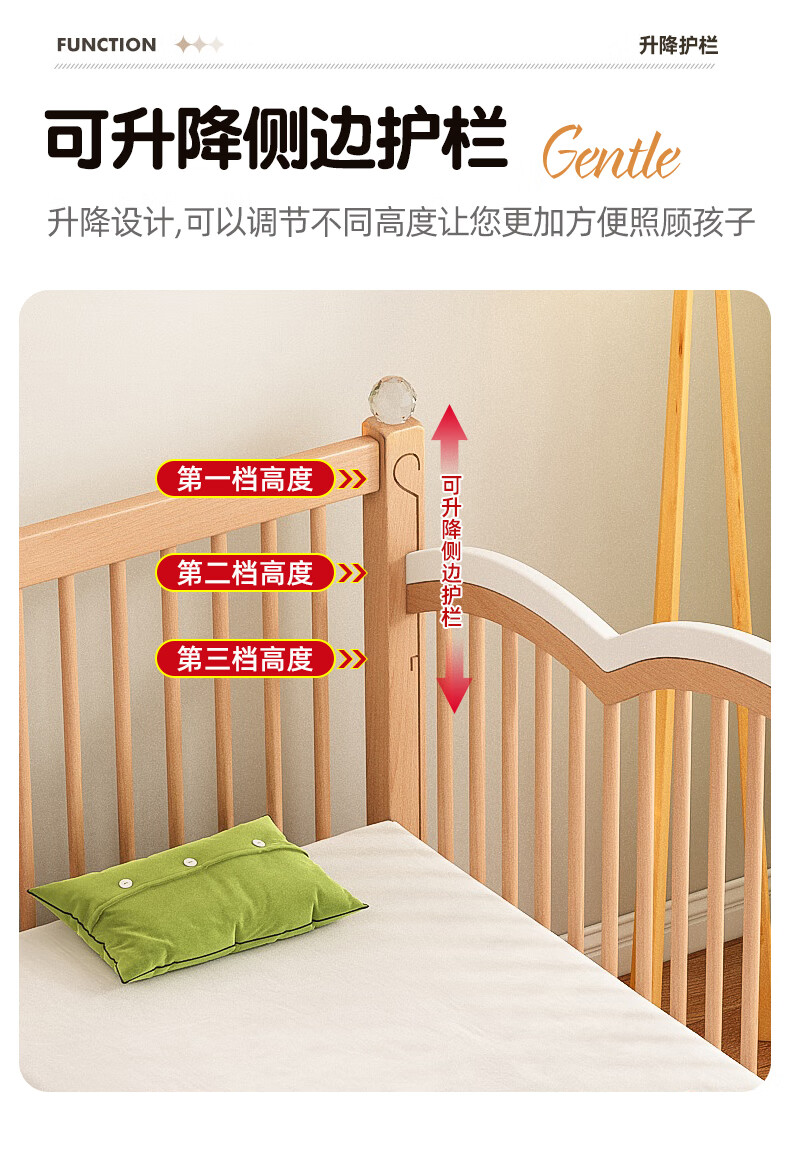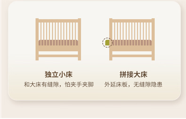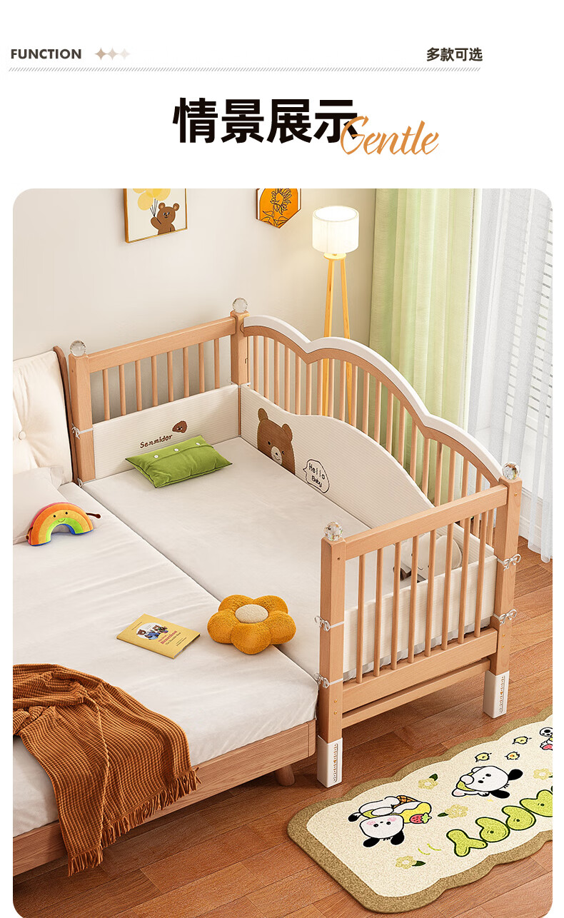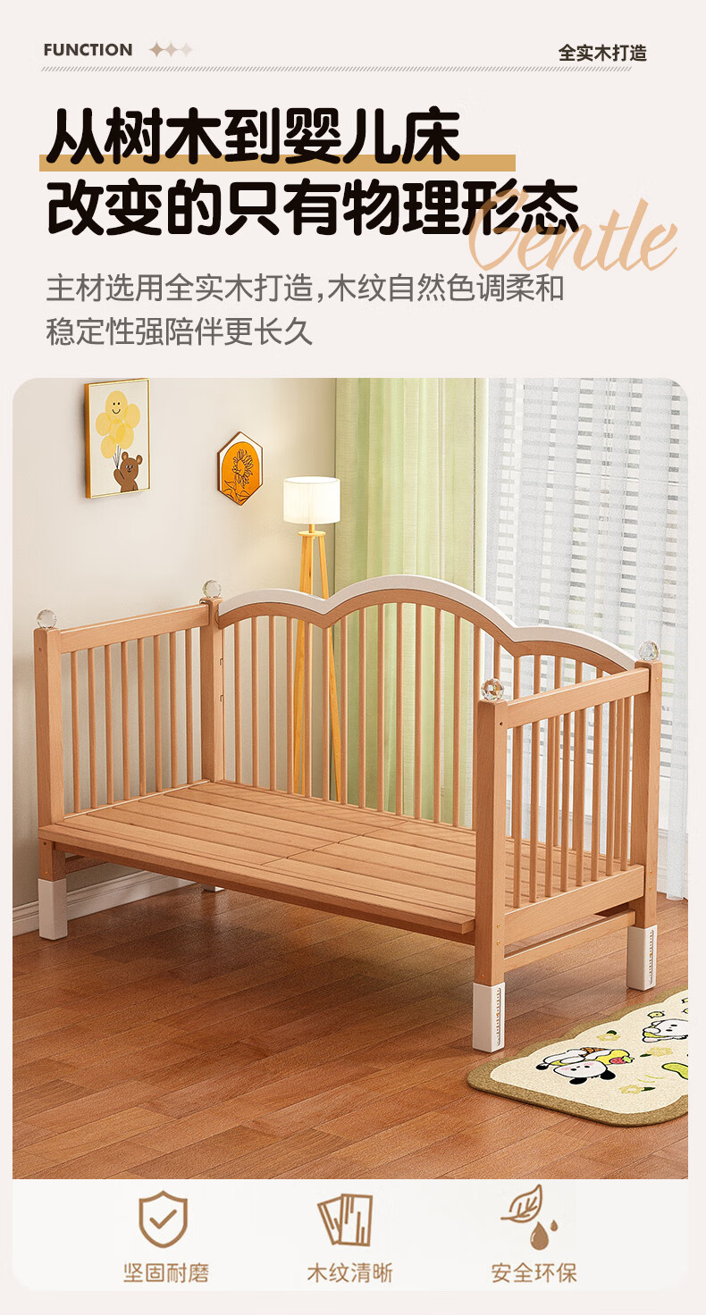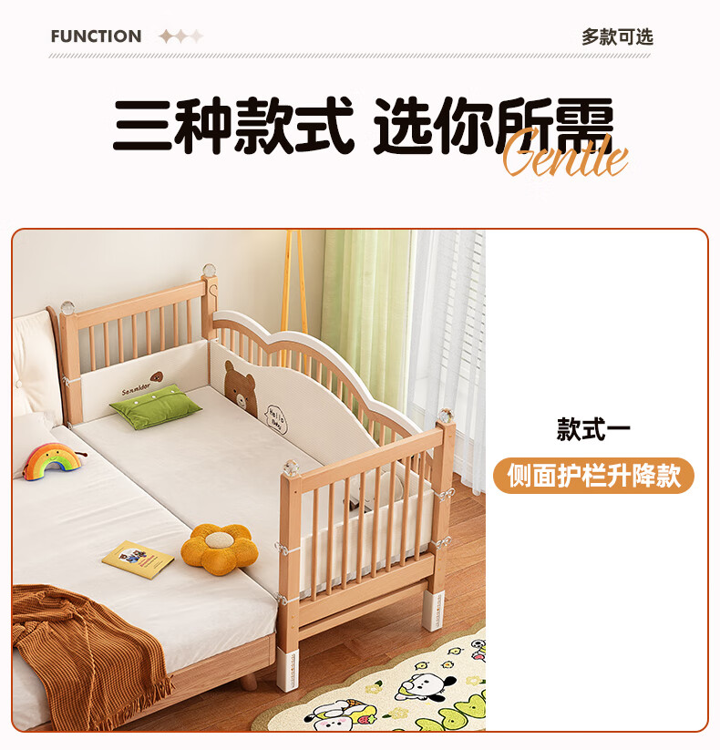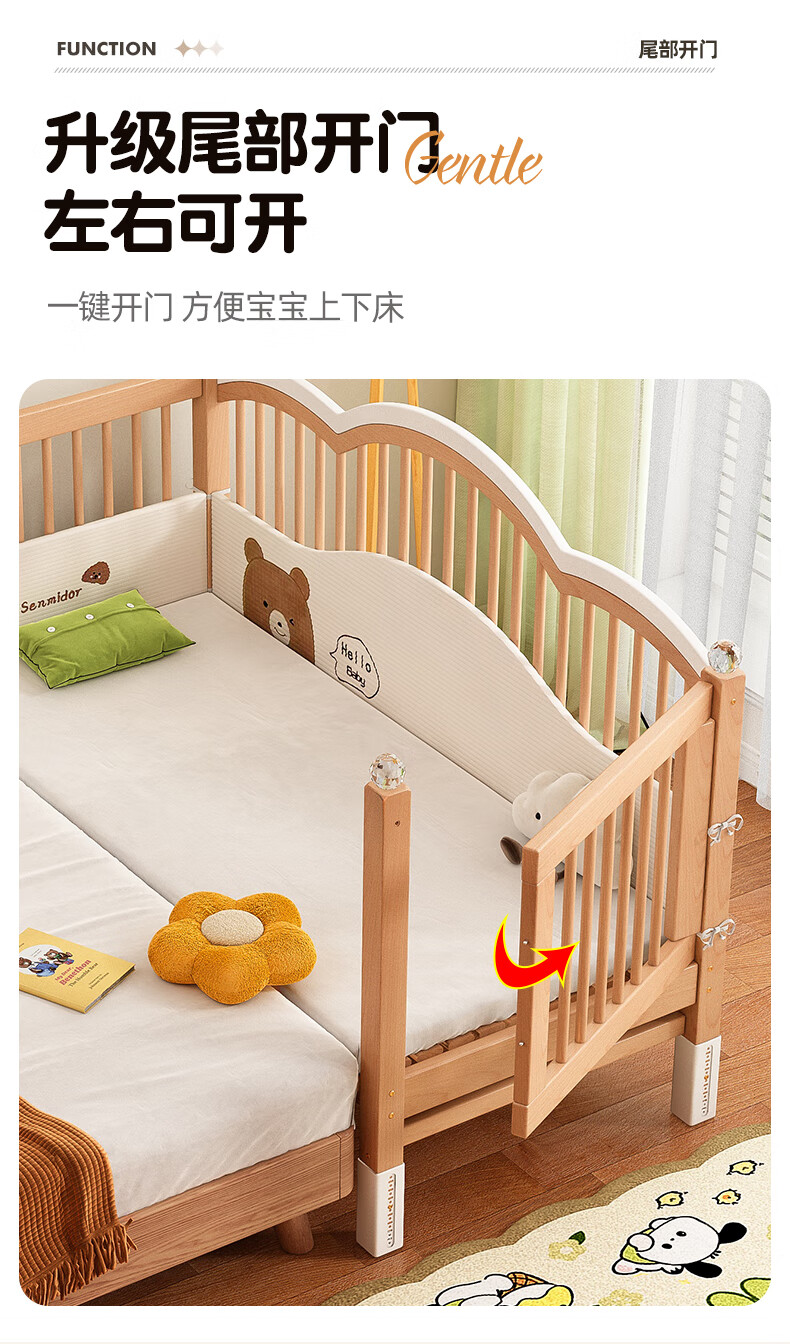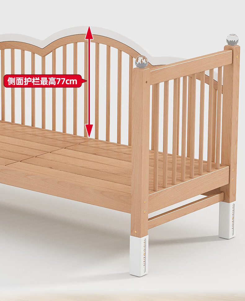 贝幸福榉木儿童拼接床实木婴儿床拼接大床可升降护栏加宽床边宝宝单人床 侧升降款+7cm空气纤维垫+床围 200*50cm【可升降】