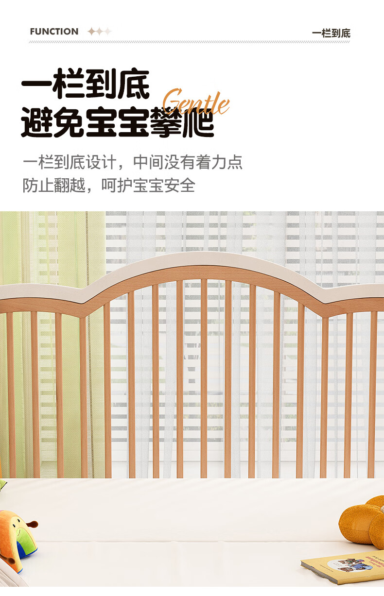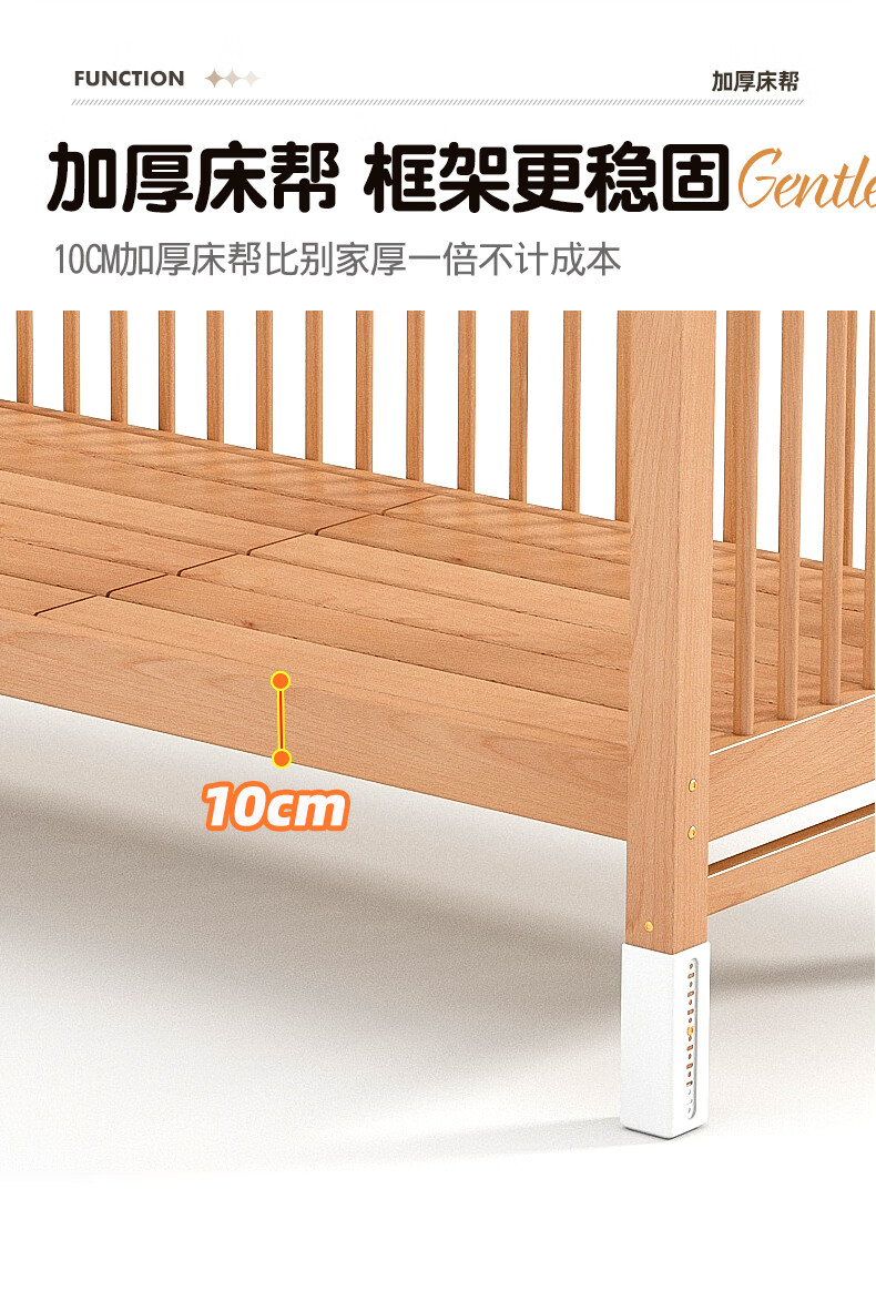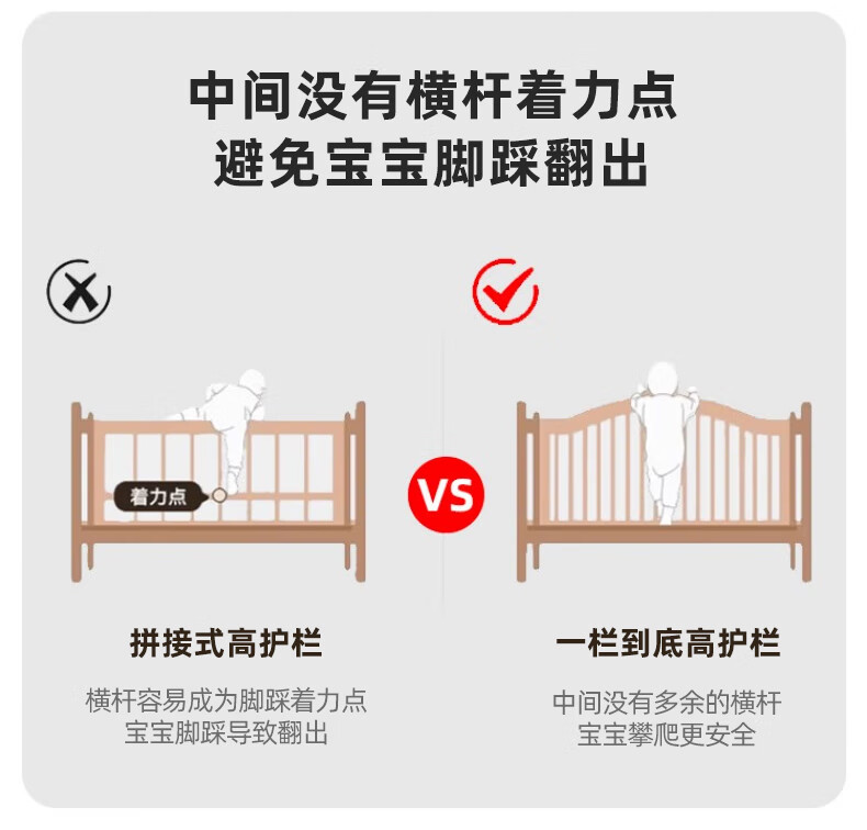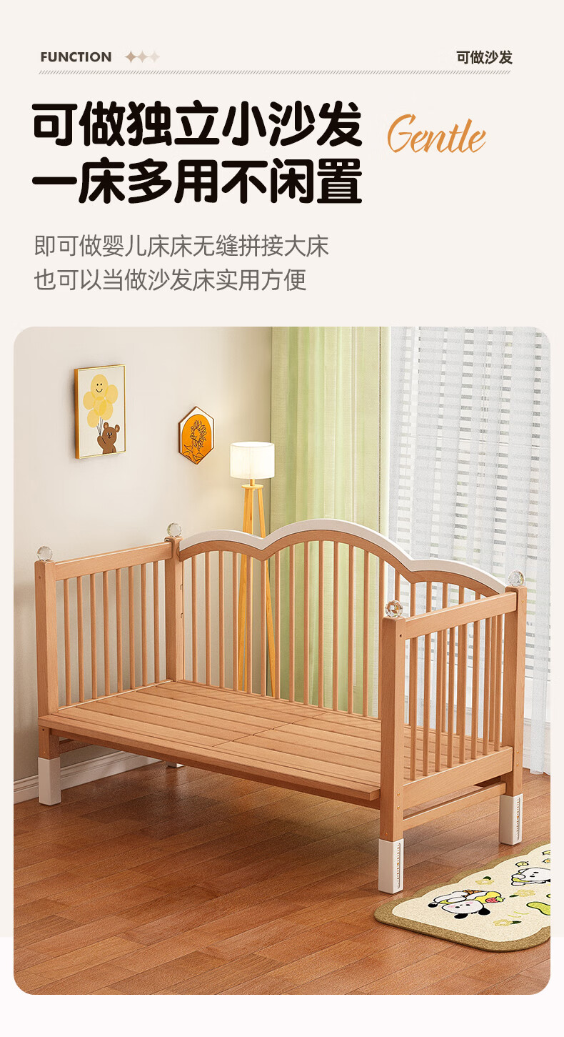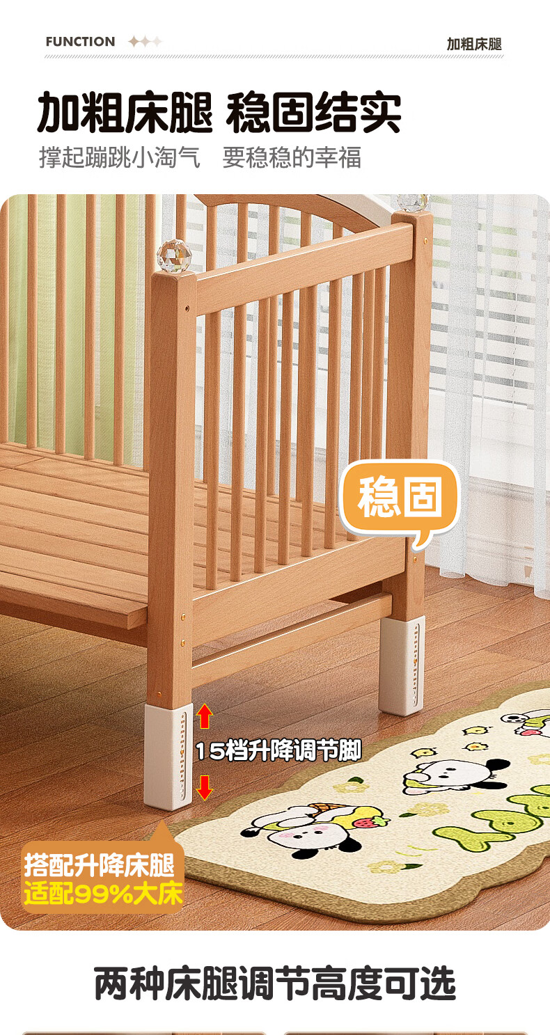 贝幸福榉木儿童拼接床实木婴儿床拼接大床可升降护栏加宽床边宝宝单人床 侧升降款+7cm空气纤维垫+床围 200*50cm【可升降】