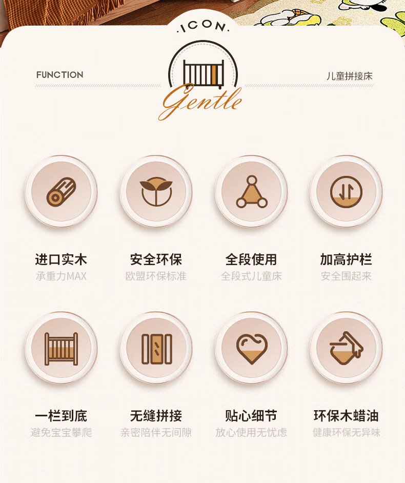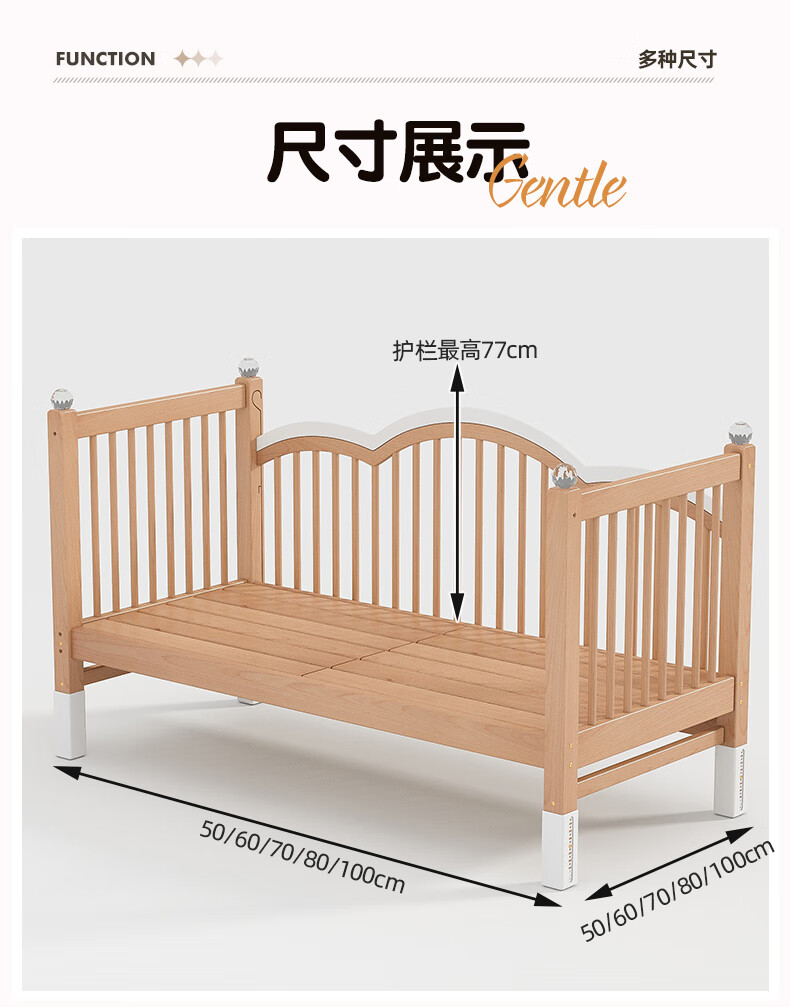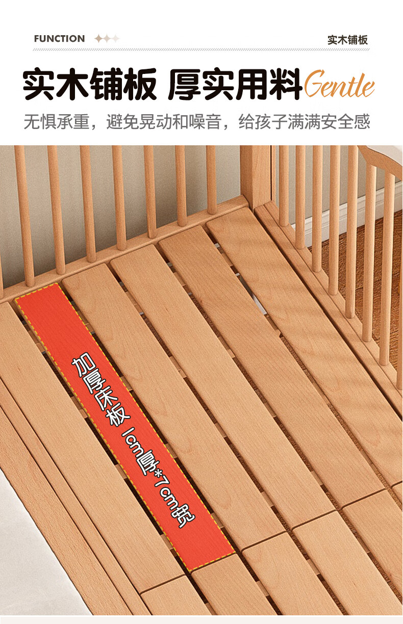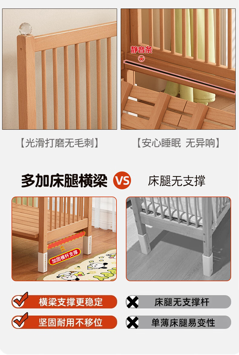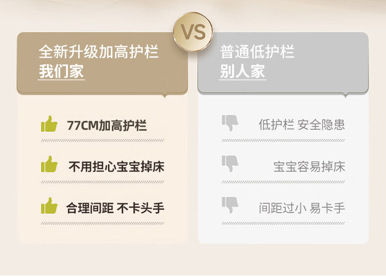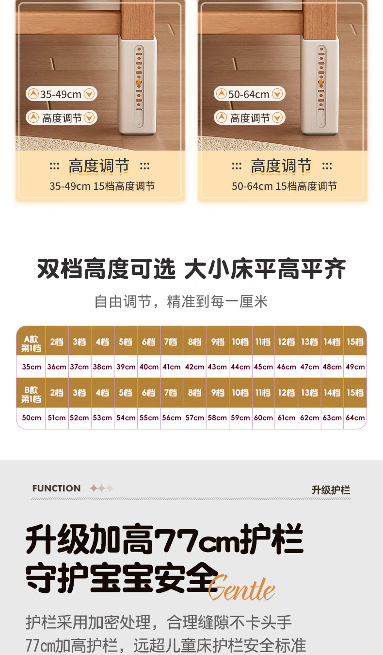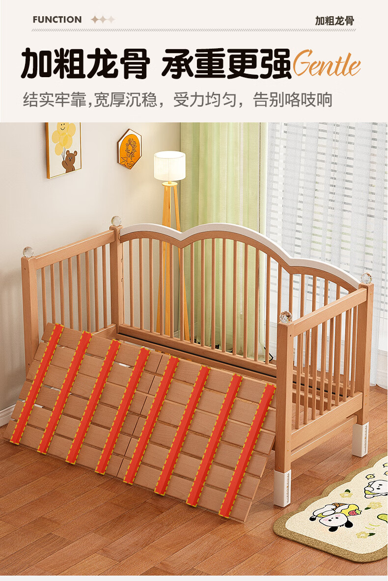 贝幸福榉木儿童拼接床实木婴儿床拼接大床可升降护栏加宽床边宝宝单人床 侧升降款+7cm空气纤维垫+床围 200*50cm【可升降】