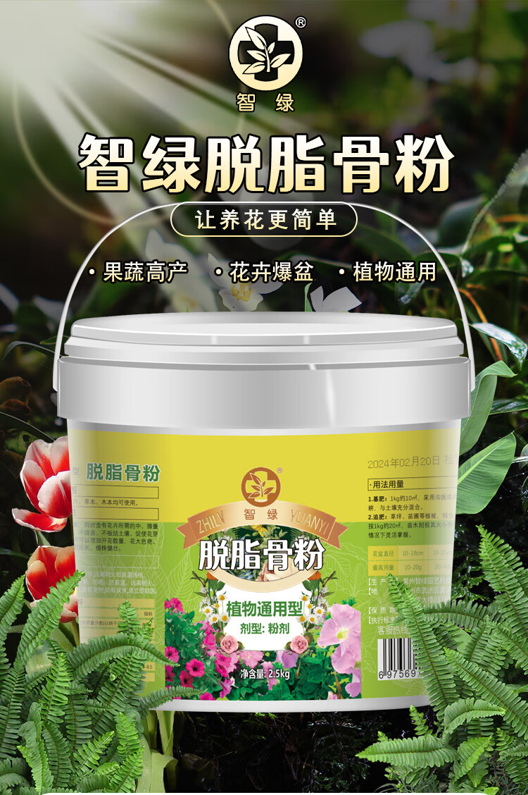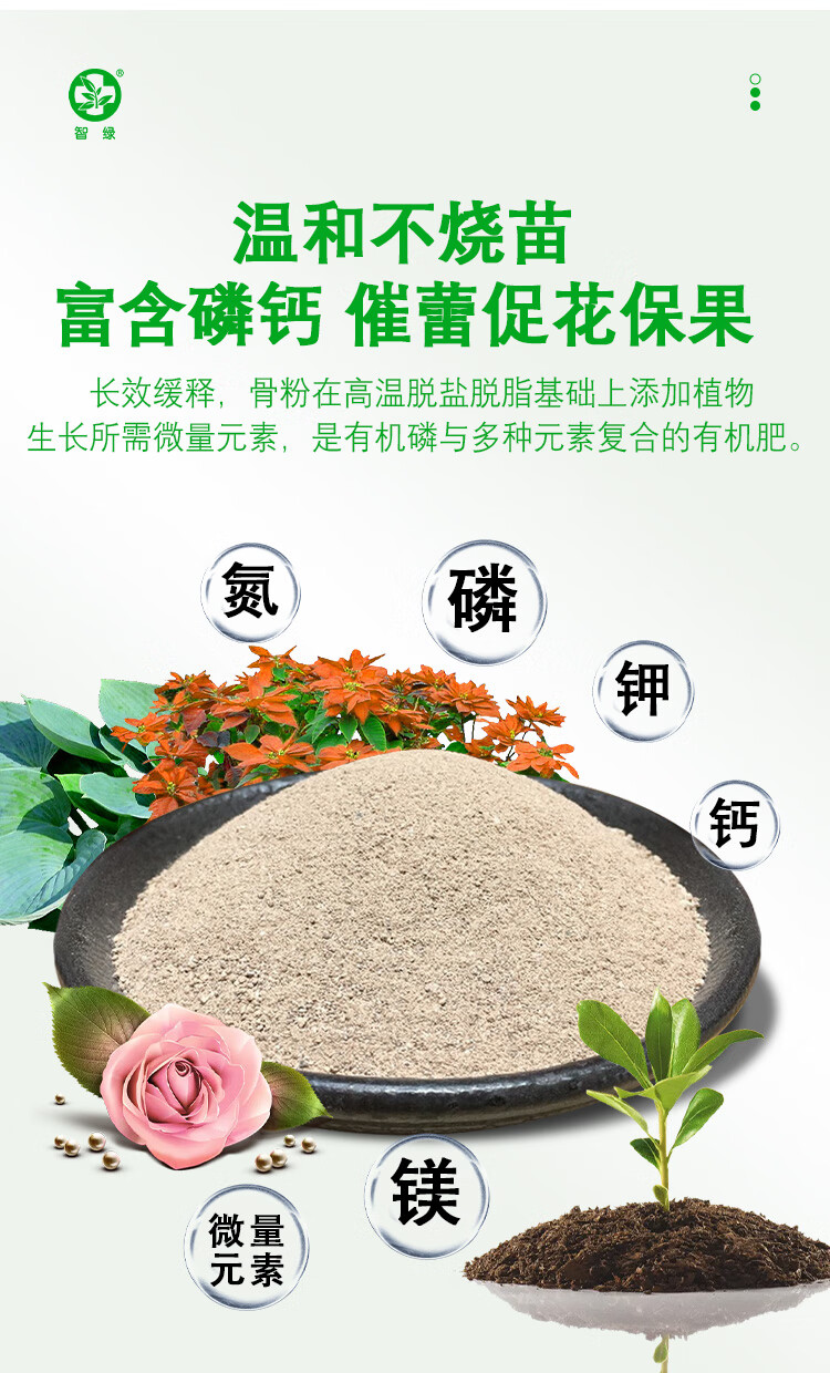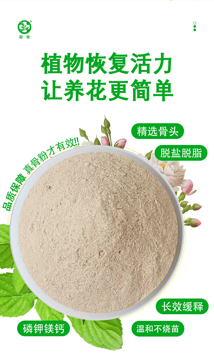 智绿脱脂骨粉花肥料促花养花园艺有机骨粉植物通用型 骨粉5斤*1袋