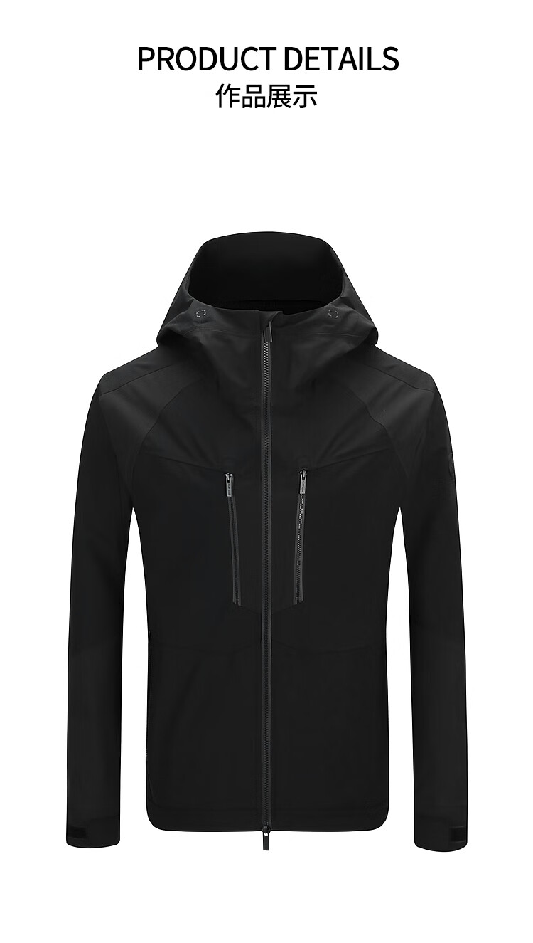 哈特马克斯防泼水羊毛弹力户外通勤男夹克上衣 曜岩黑 L (175)