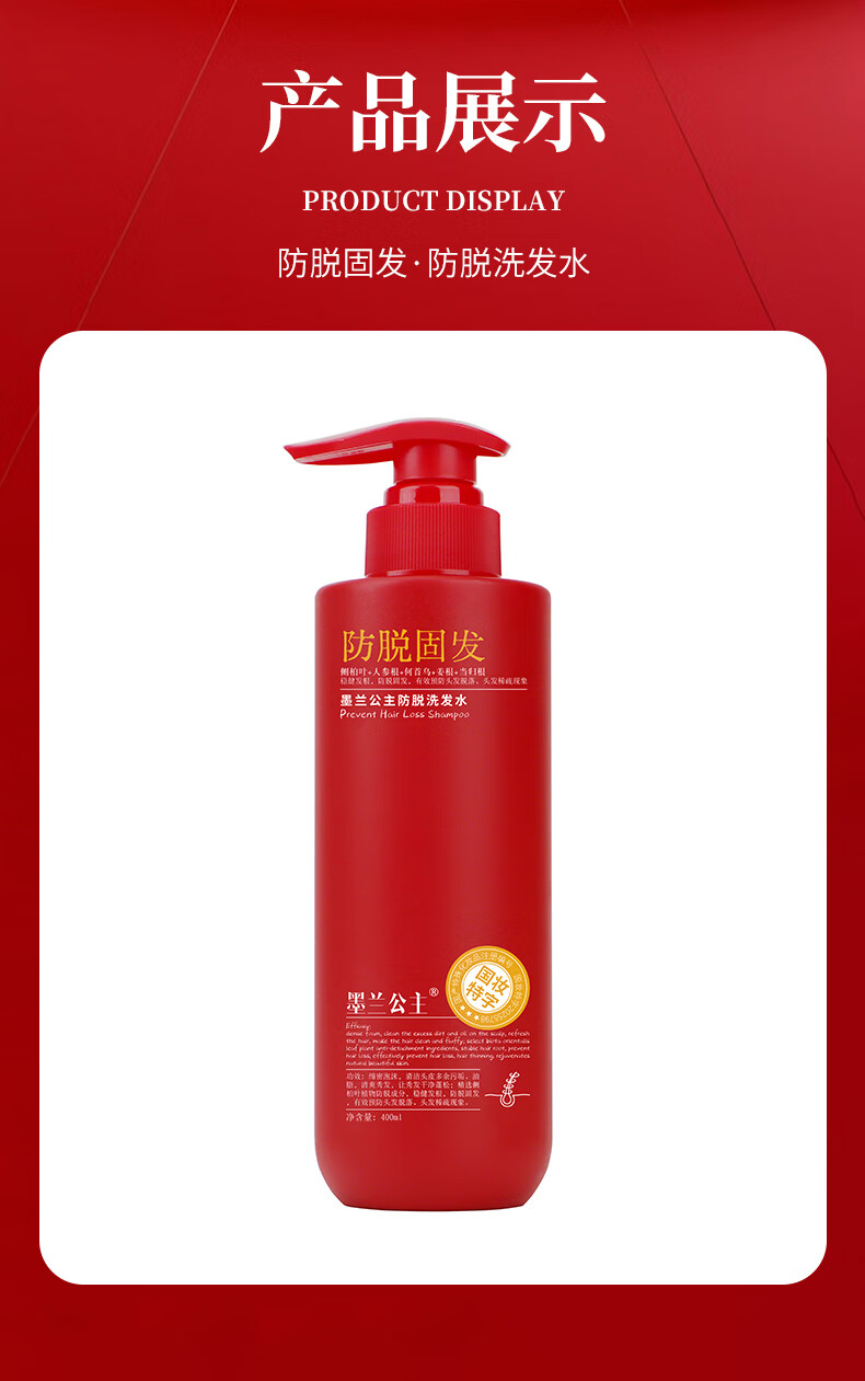 墨兰公主2025年新版防脱固发洗发水多重功效侧柏叶红瓶新配方确保有效 【红瓶加强版】防脱固发洗发水x2瓶 400ml*2瓶