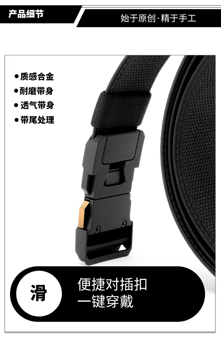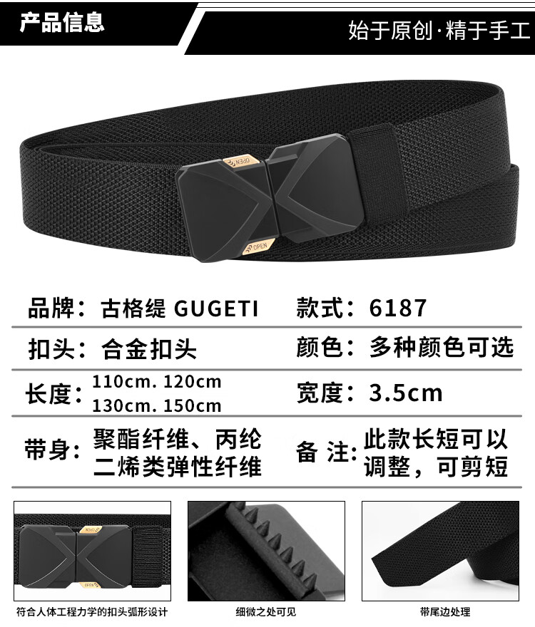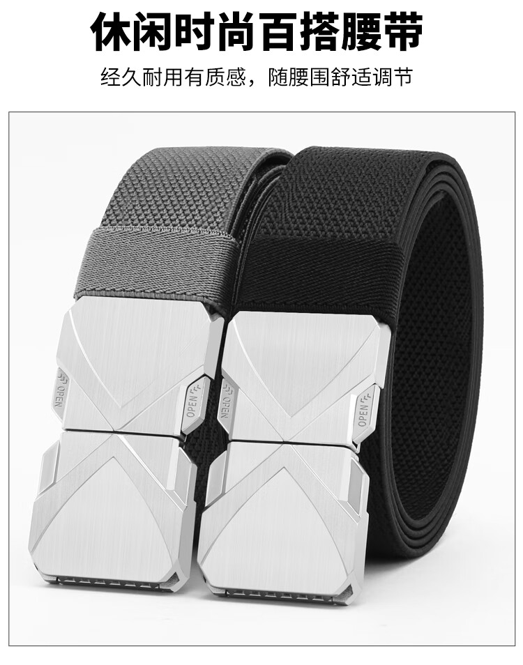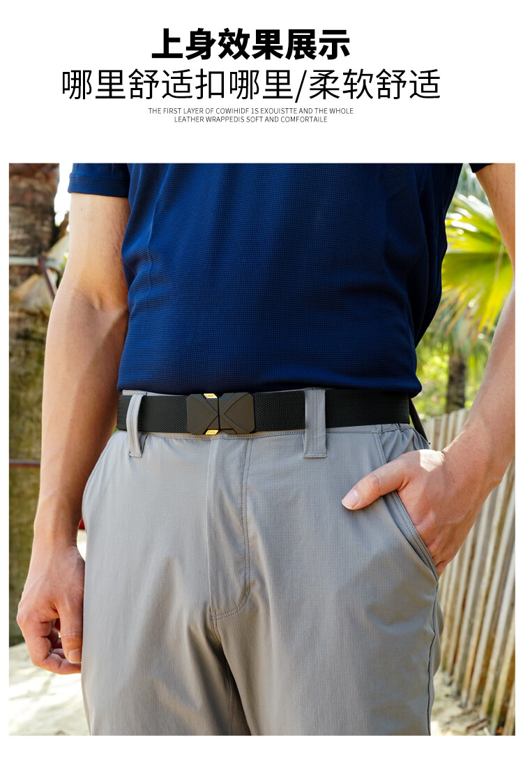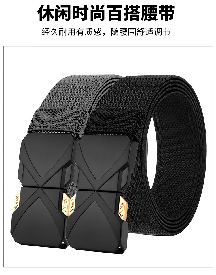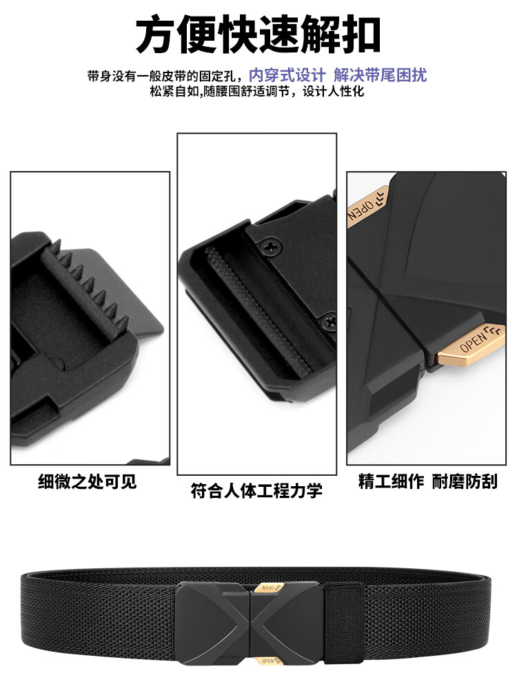 古格缇男士户外弹力战术腰带 X对插扣尼龙编织皮带 休闲运动军训裤腰带 【弹力黑扣-X对插扣】黑色
