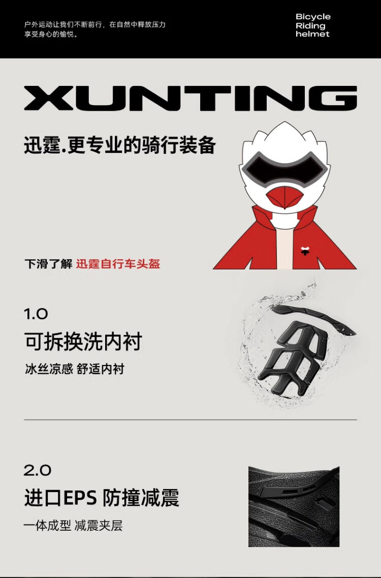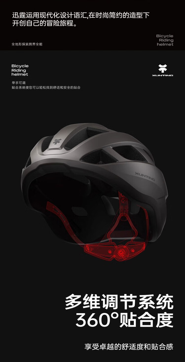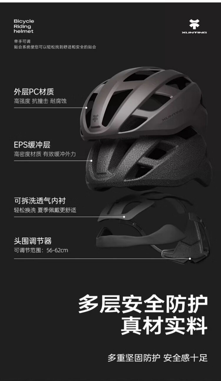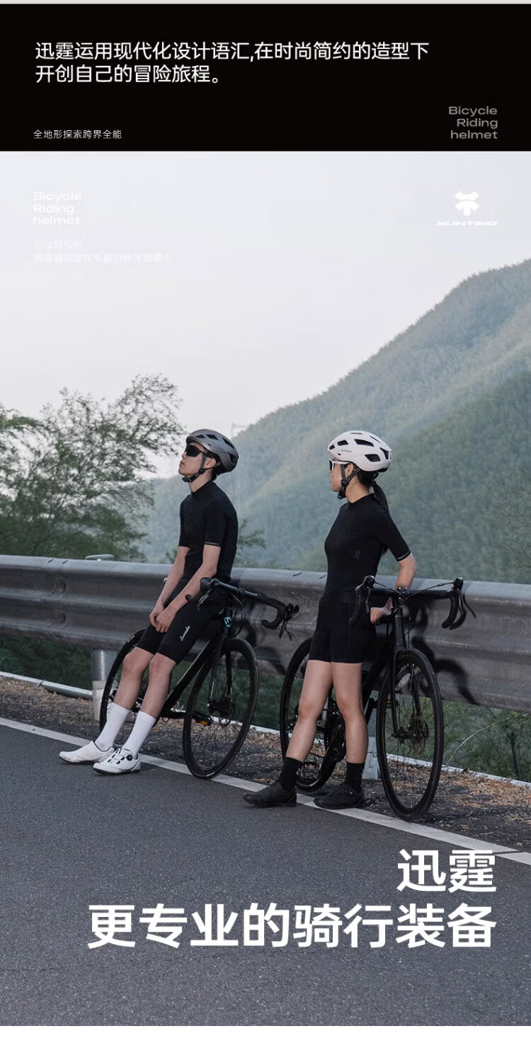 迅霆(XUNTING)自行车骑行头盔男女高颜值夏季透气山地公路车防晒带帽檐单车装备 黑色【可拆遮阳帽】亚洲头型