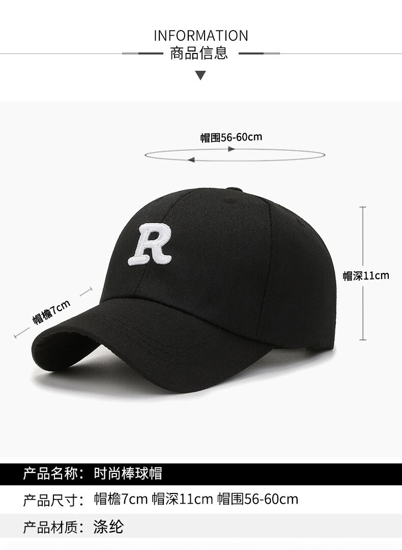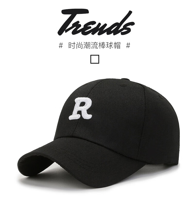 【精选好物】大头围棒球帽子男女ins新款学生春秋显脸小韩版硬顶 黑色 (一个装)