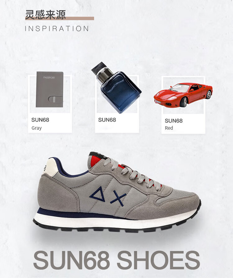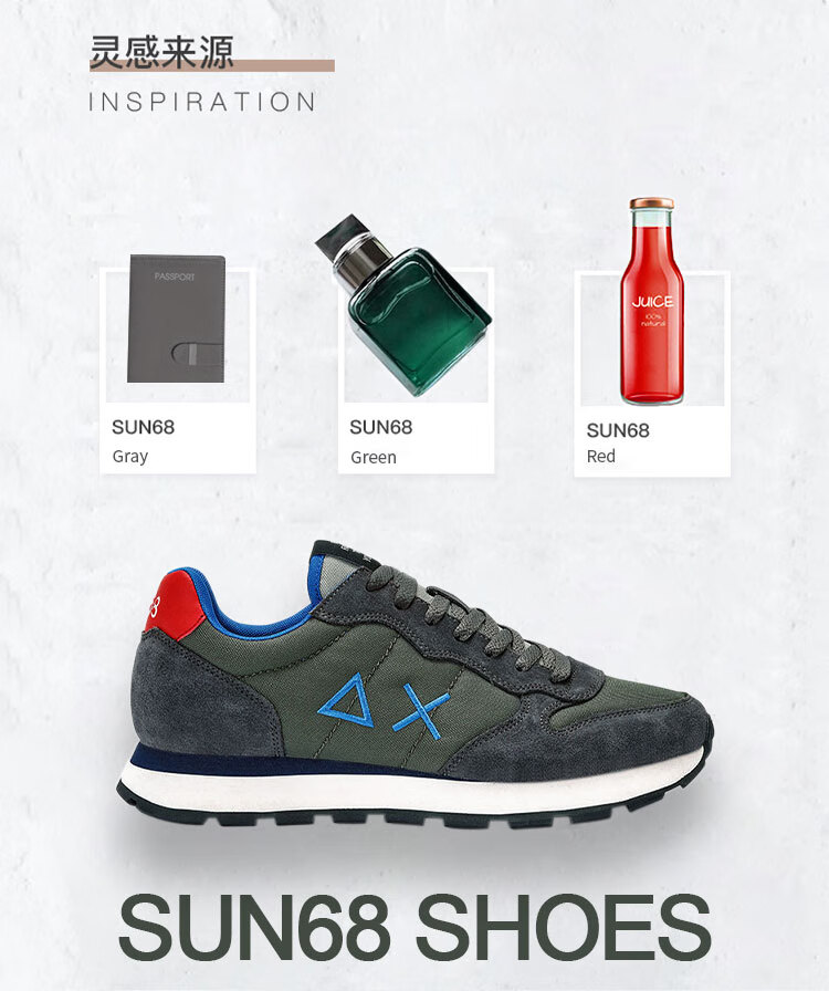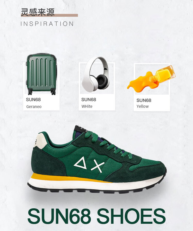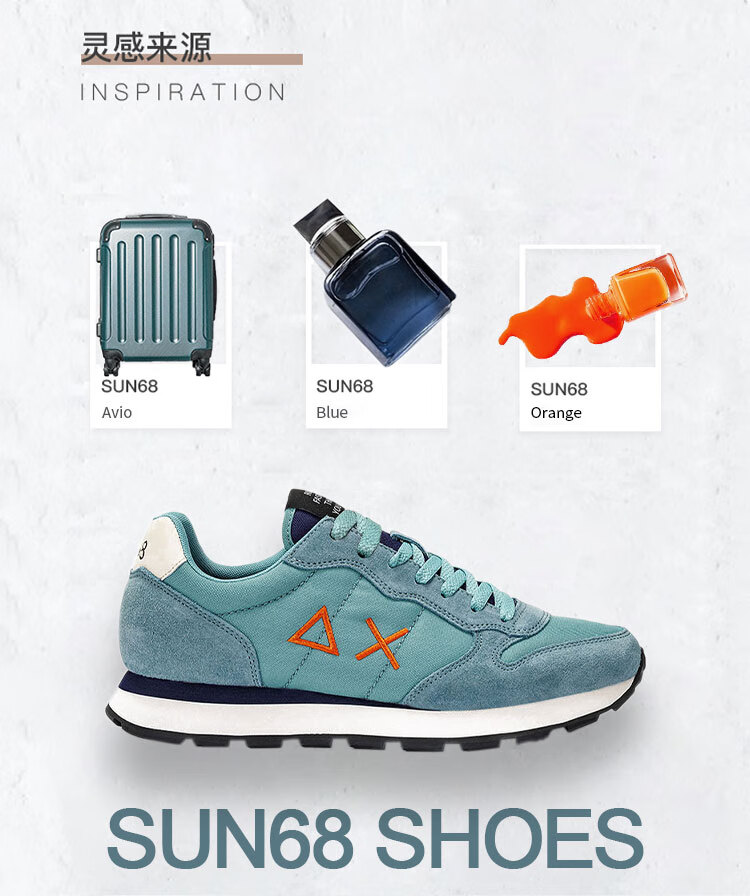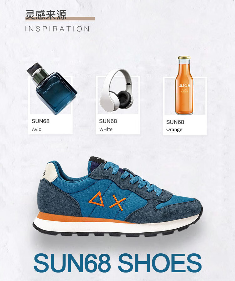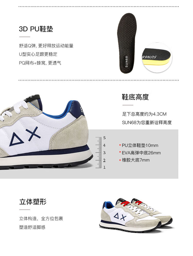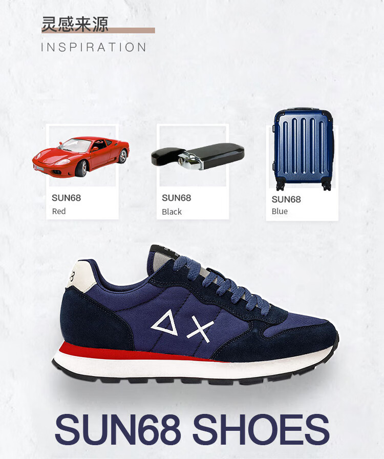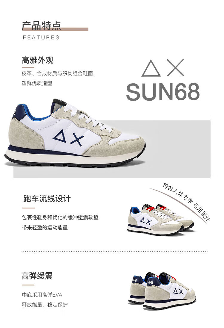 Sun68【TOM 经典】意大利 反毛皮男士休闲鞋厚底流行运动鞋舒适男鞋 Z43101-07深蓝色 44