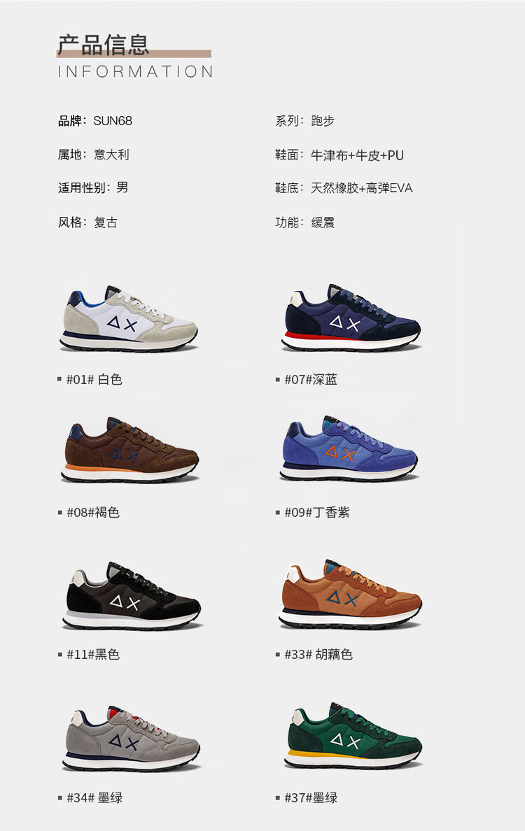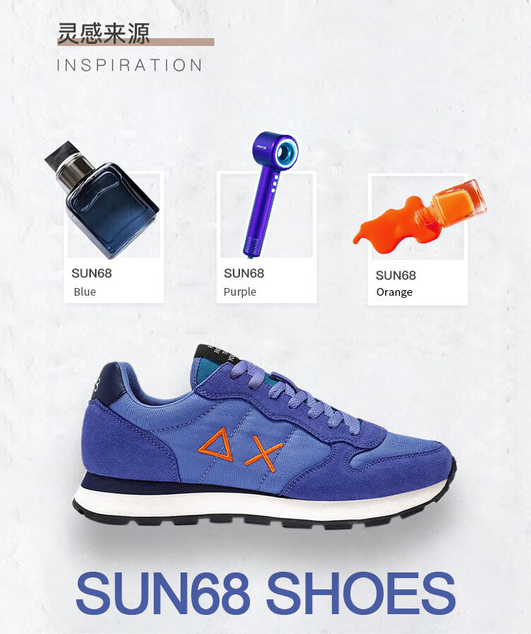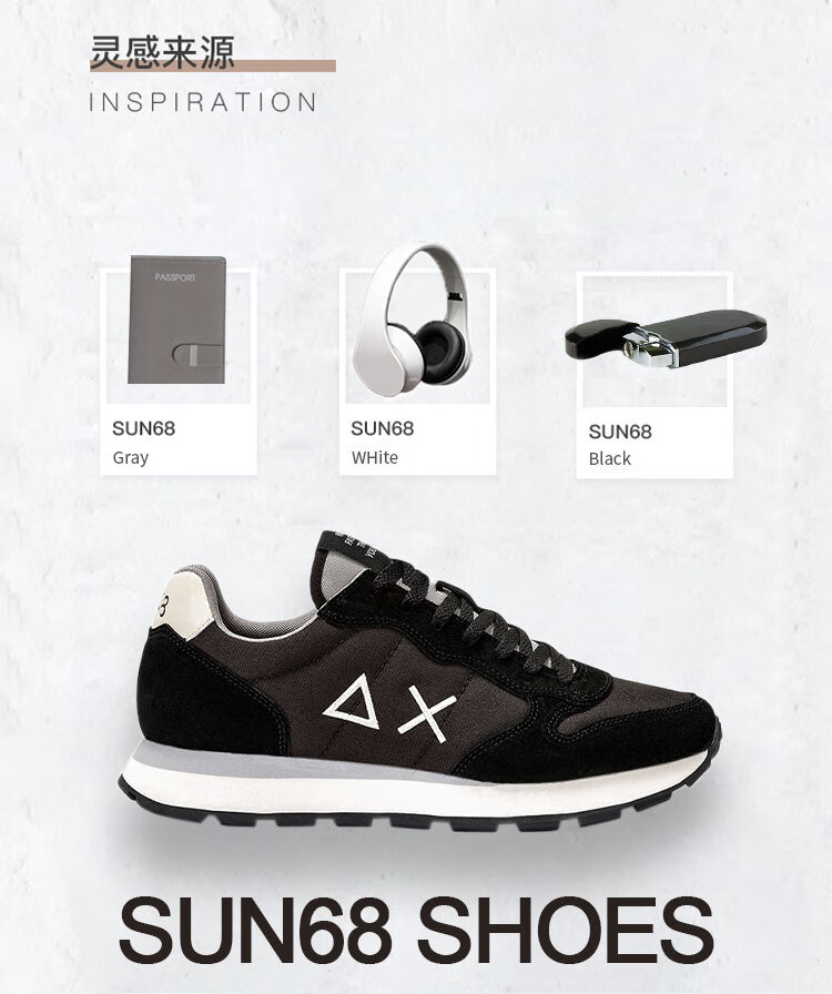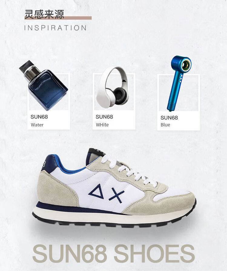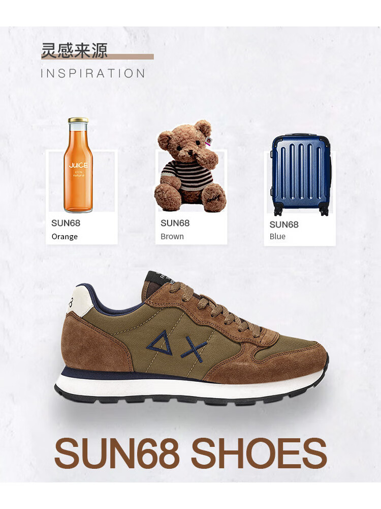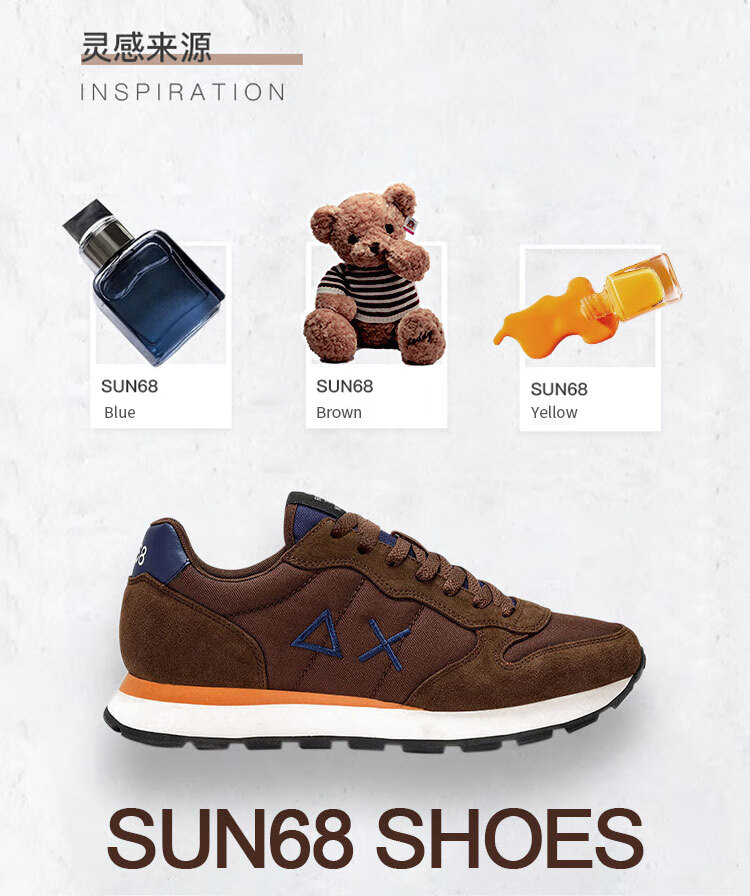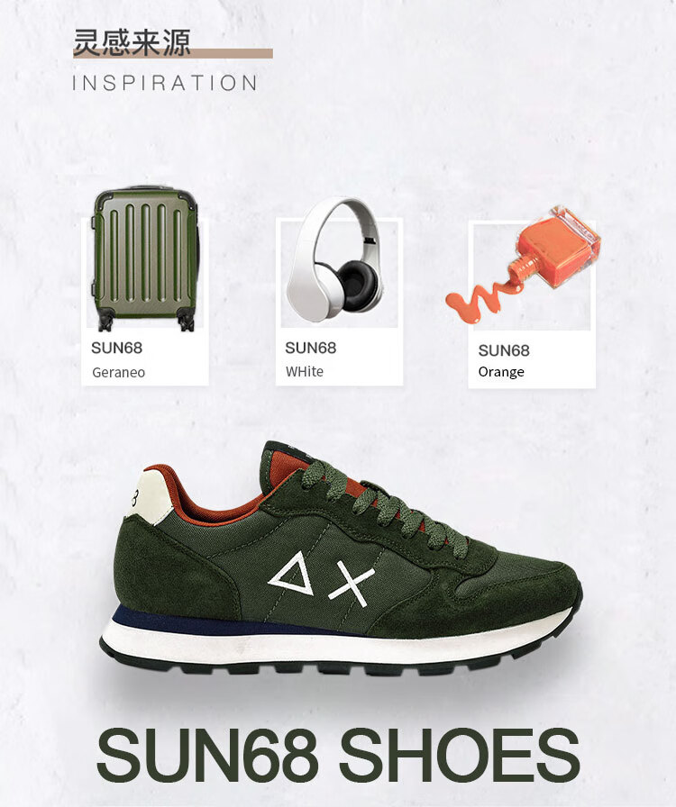 Sun68【TOM 经典】意大利 反毛皮男士休闲鞋厚底流行运动鞋舒适男鞋 Z43101-07深蓝色 44