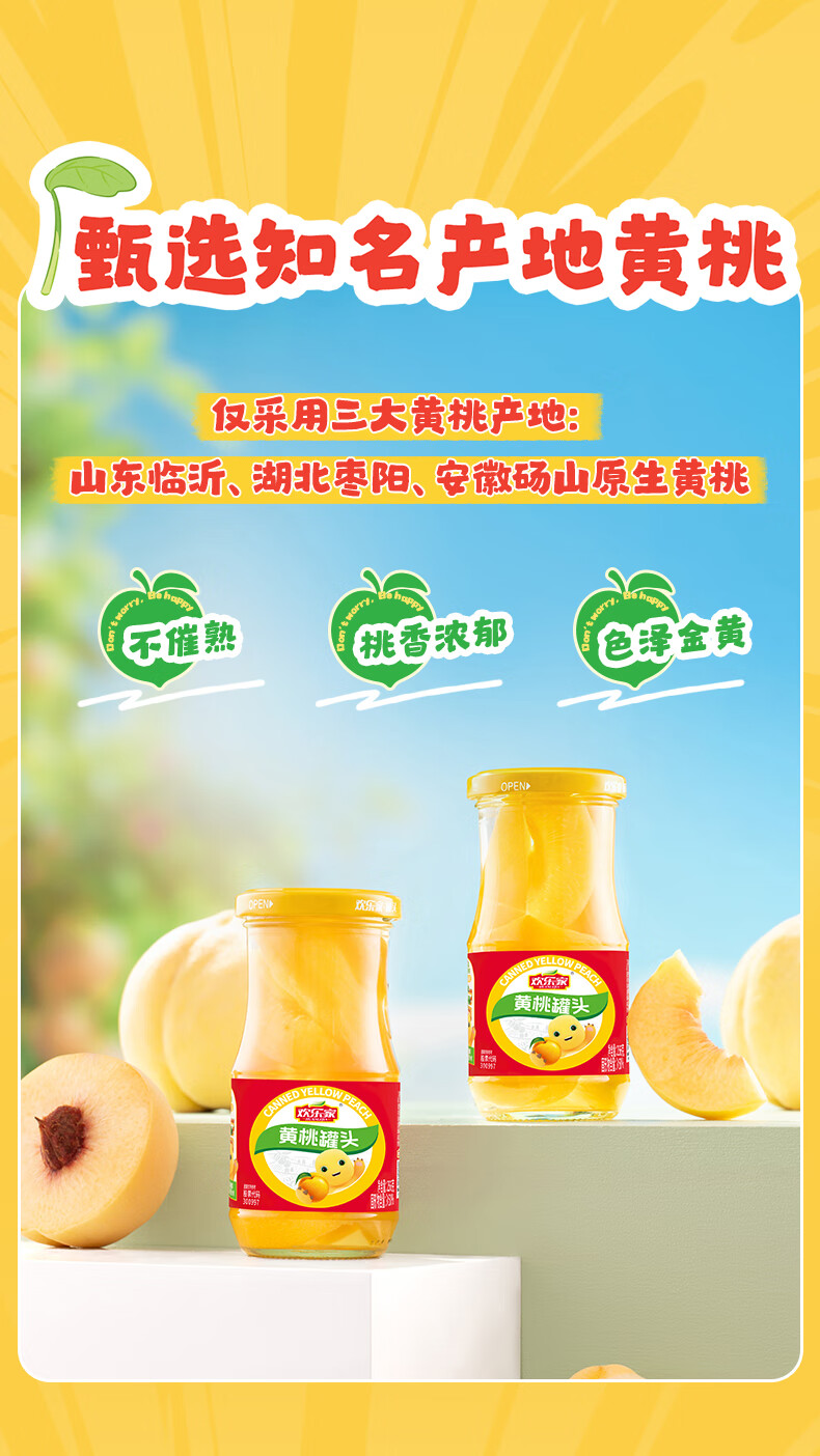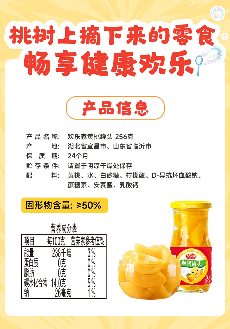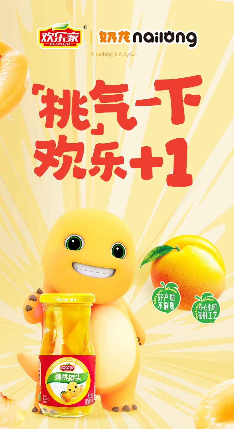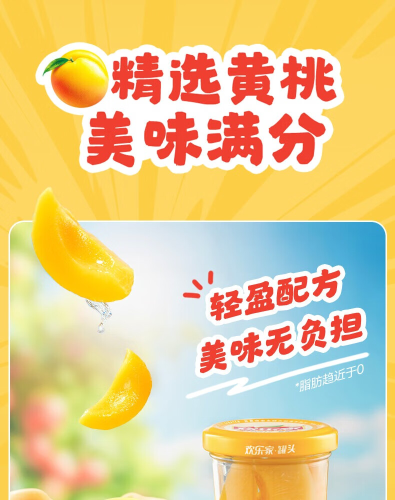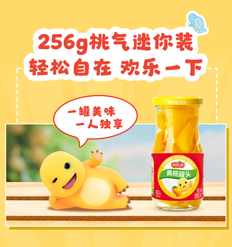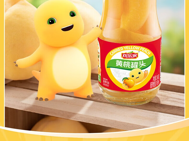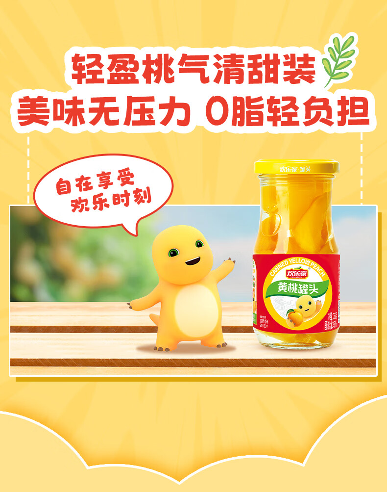 欢乐家&奶龙 黄桃罐头256g*6瓶 玻璃瓶装 糖水黄桃水果罐头 休闲速食品