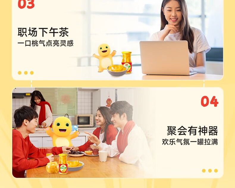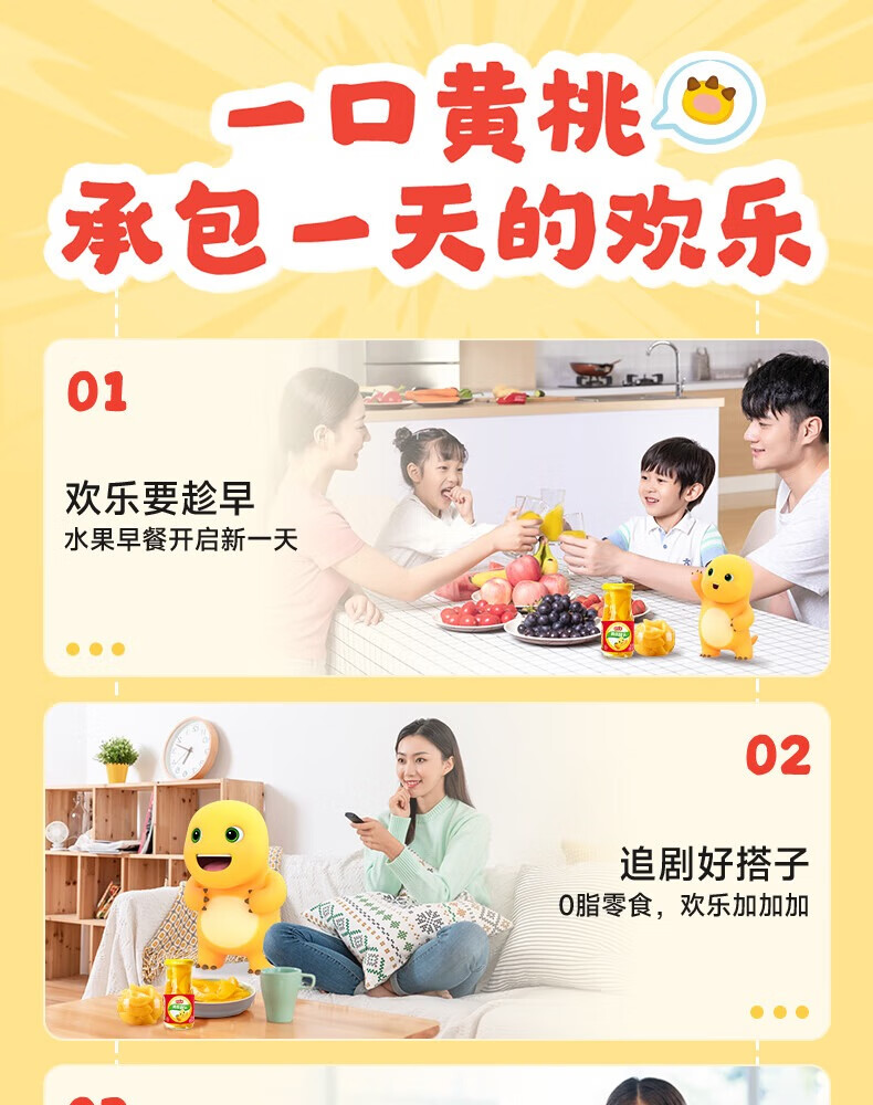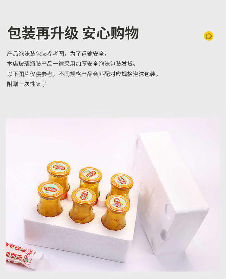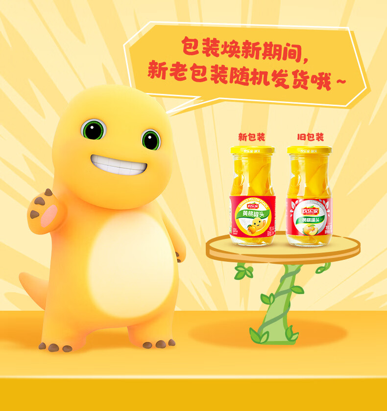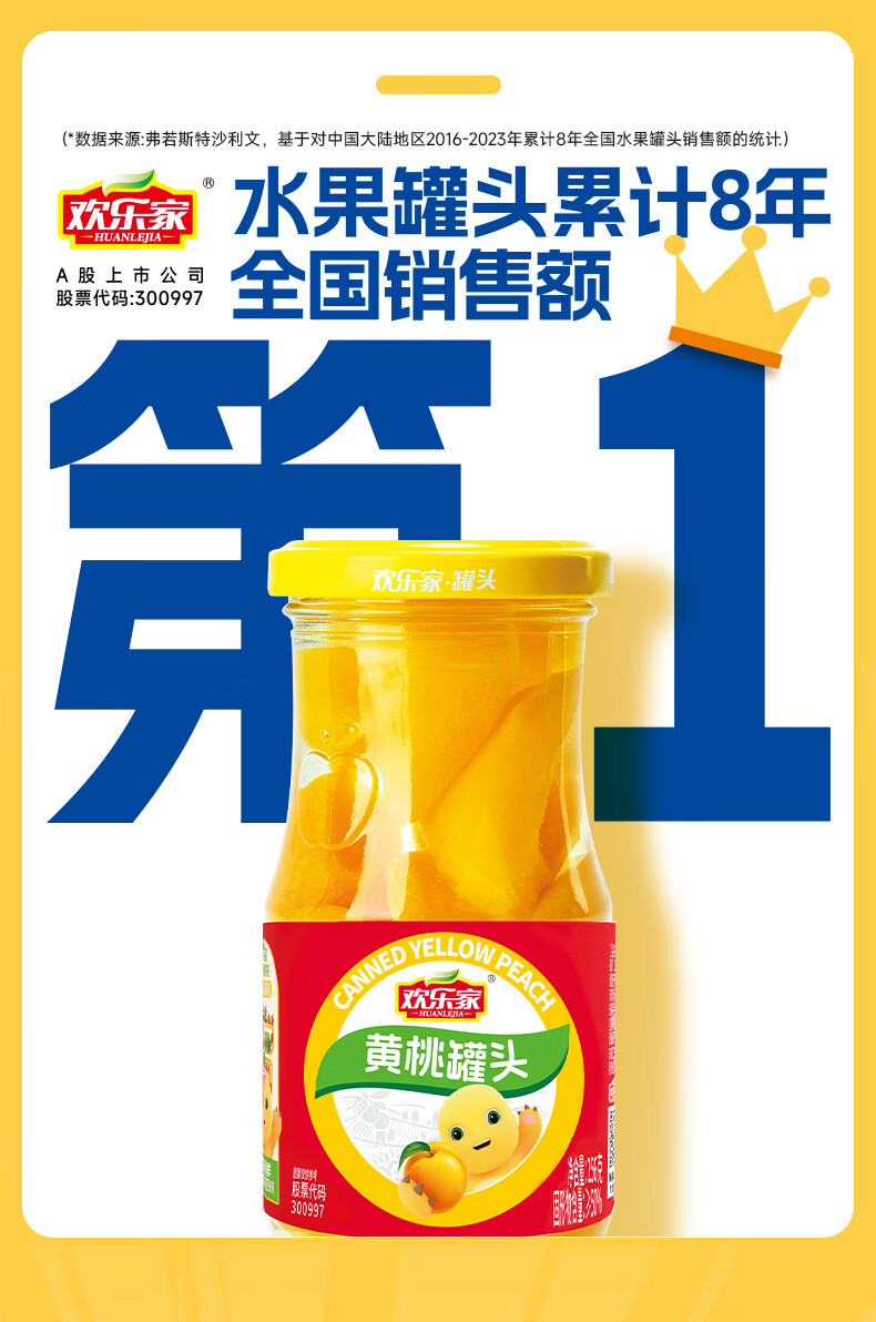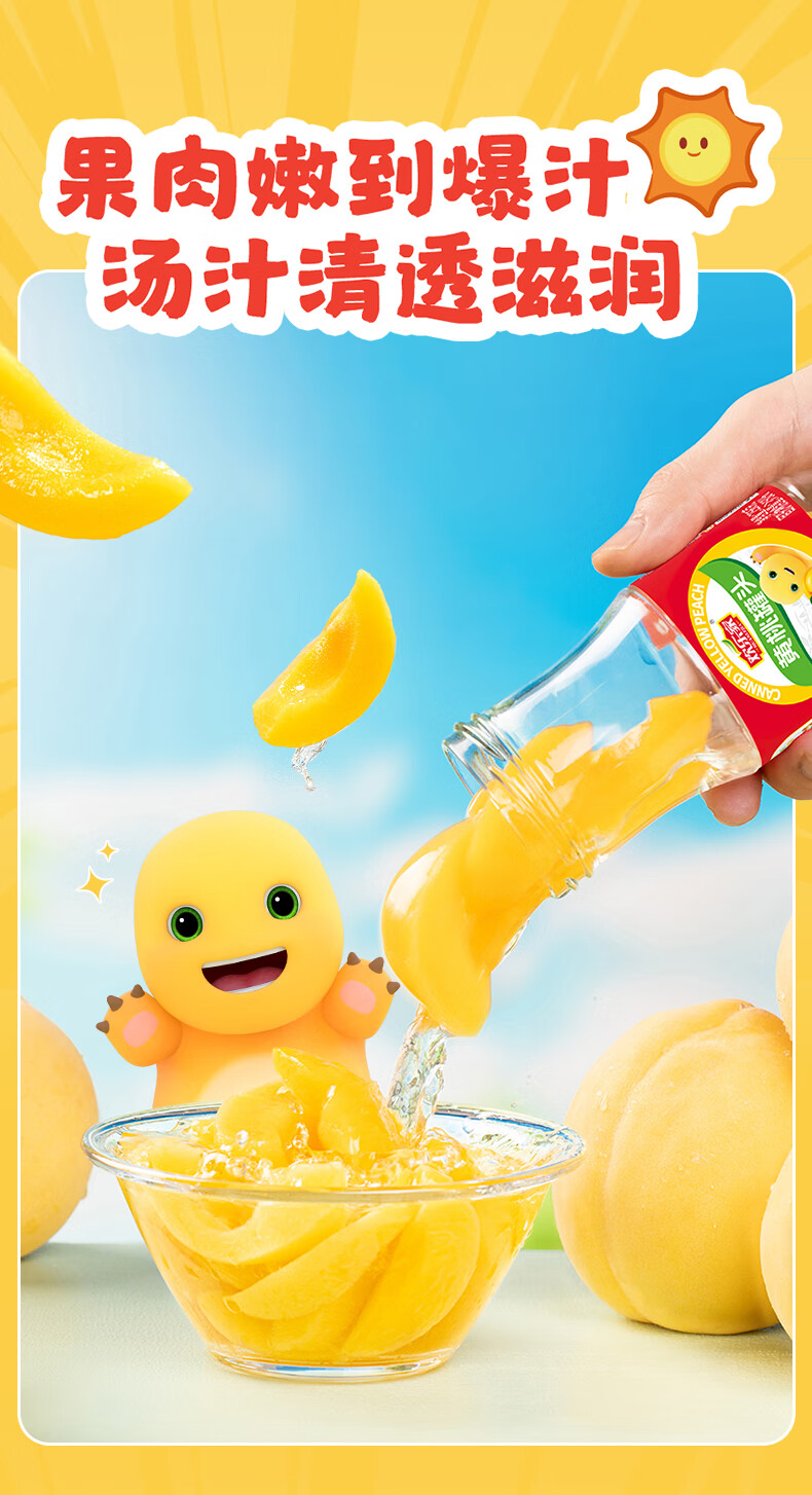 欢乐家&奶龙 黄桃罐头256g*6瓶 玻璃瓶装 糖水黄桃水果罐头 休闲速食品