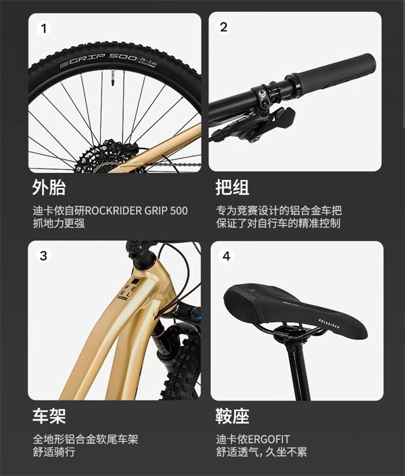 迪卡侬全地形山地自行车男女款成人变速软尾速降单车4561829