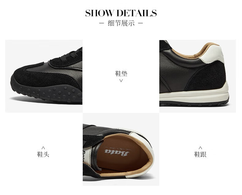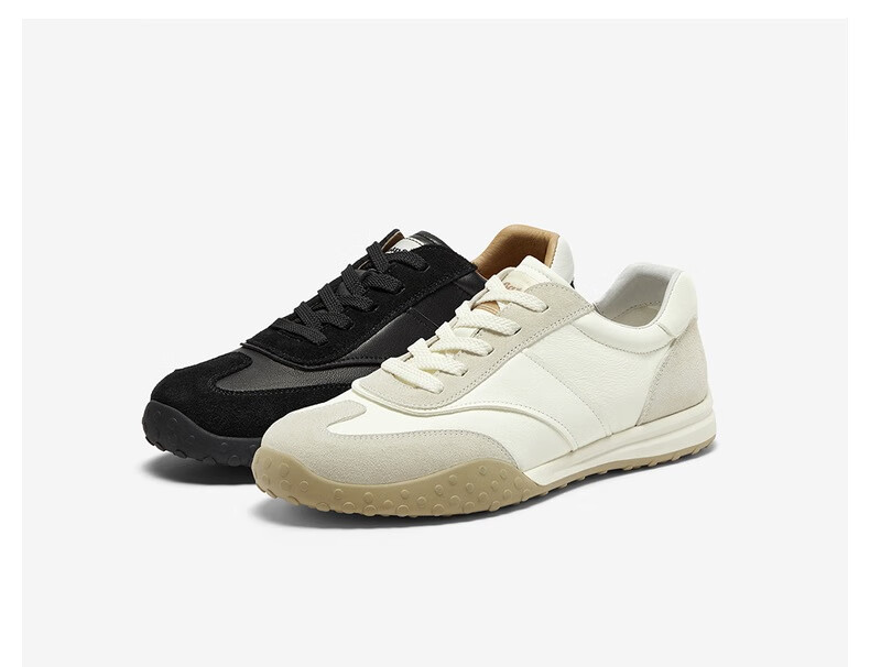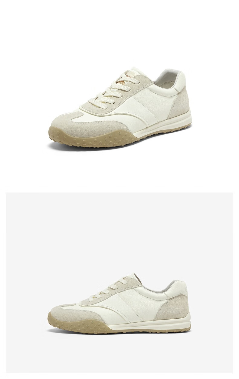 Bata王子奇同款休闲鞋男2025秋商场新款百搭羊皮德训运动鞋51069CM5 米色 43