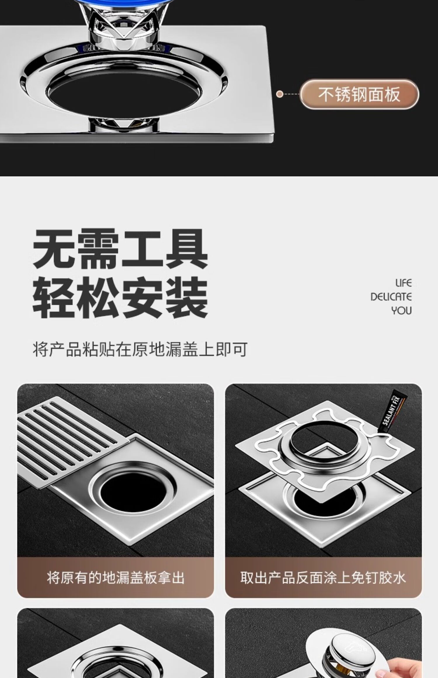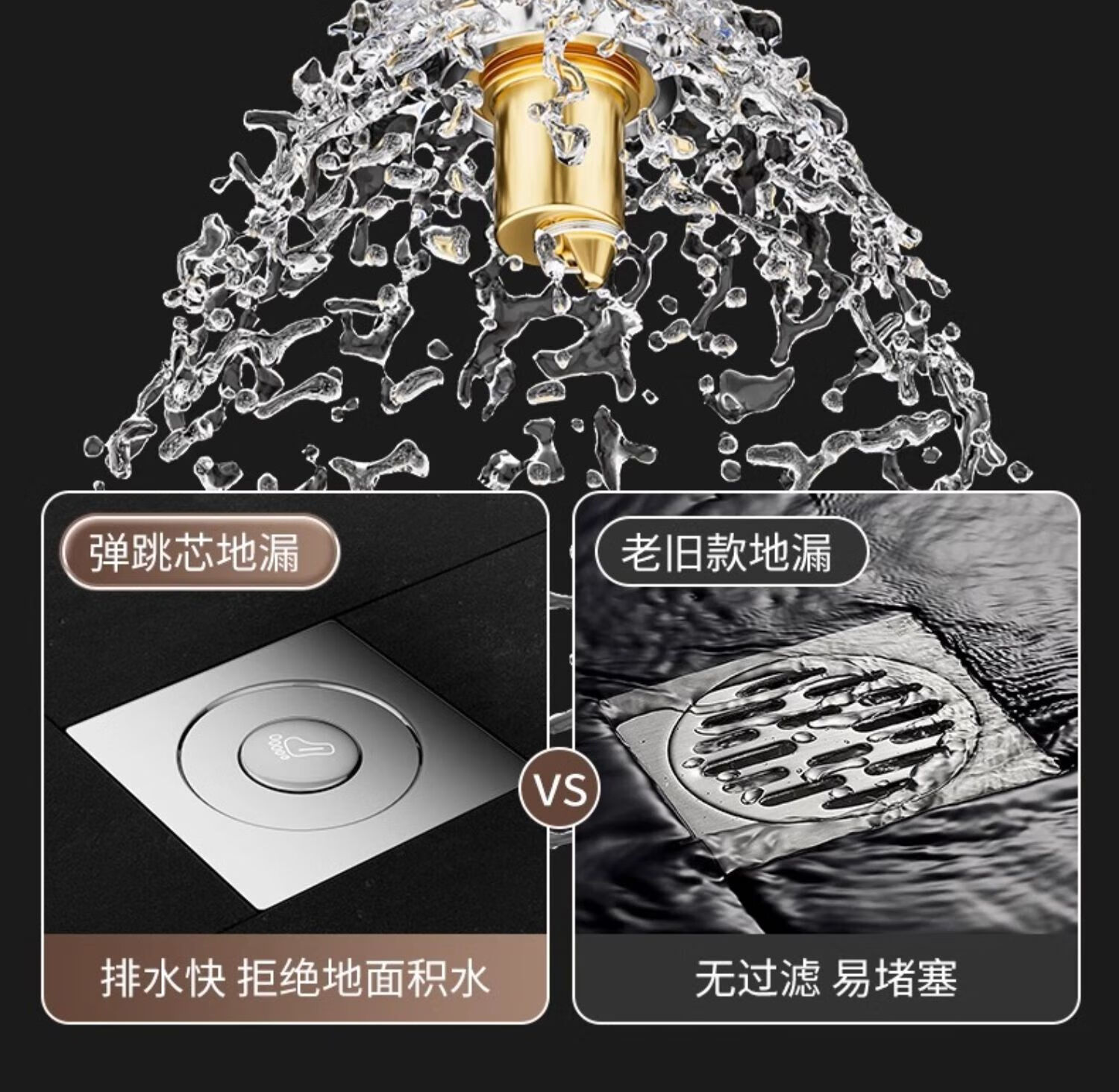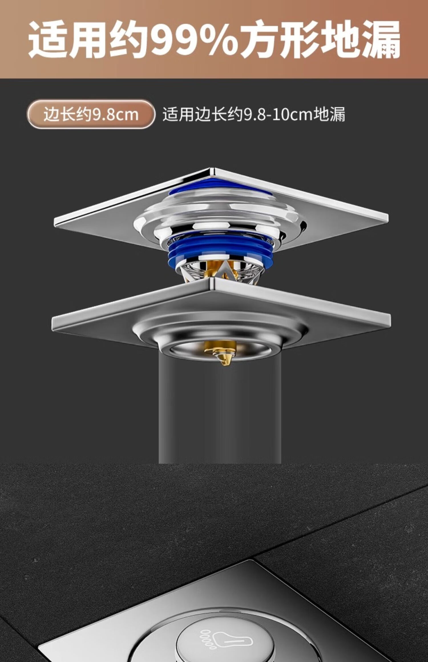 首力弹跳地漏防臭卫生间下水道通用防反味漏封闭按压地漏盖脚踩式方形