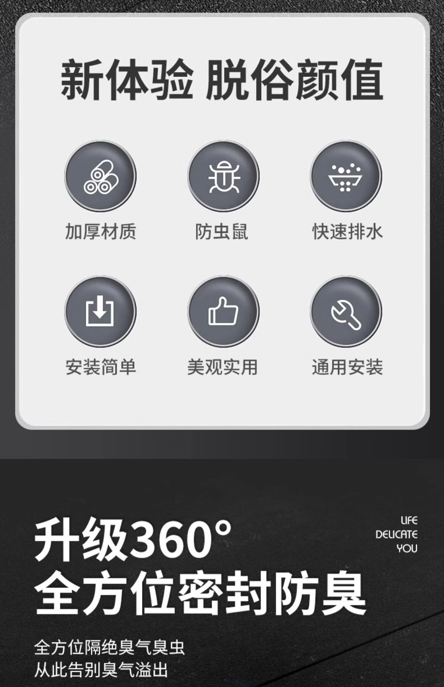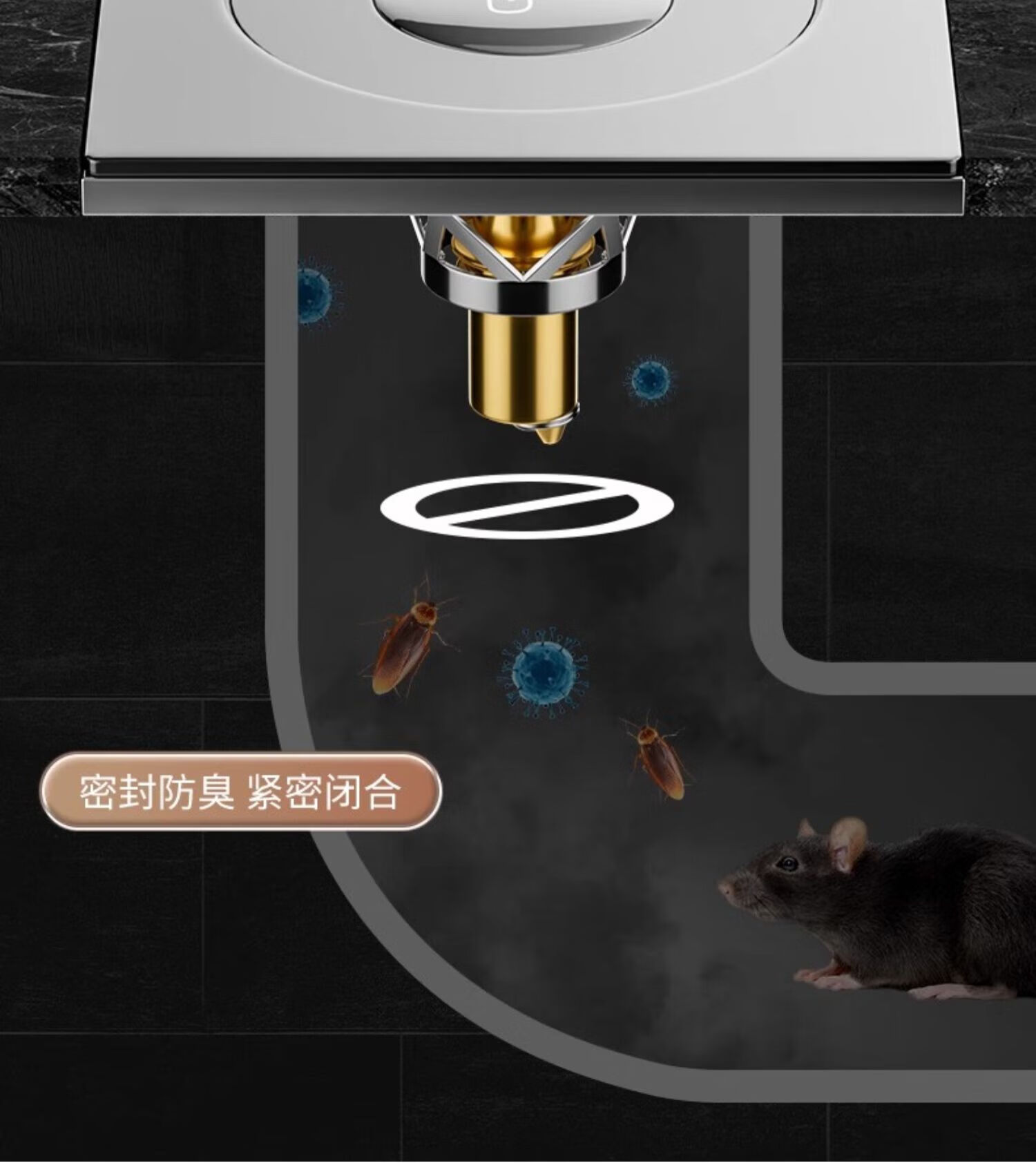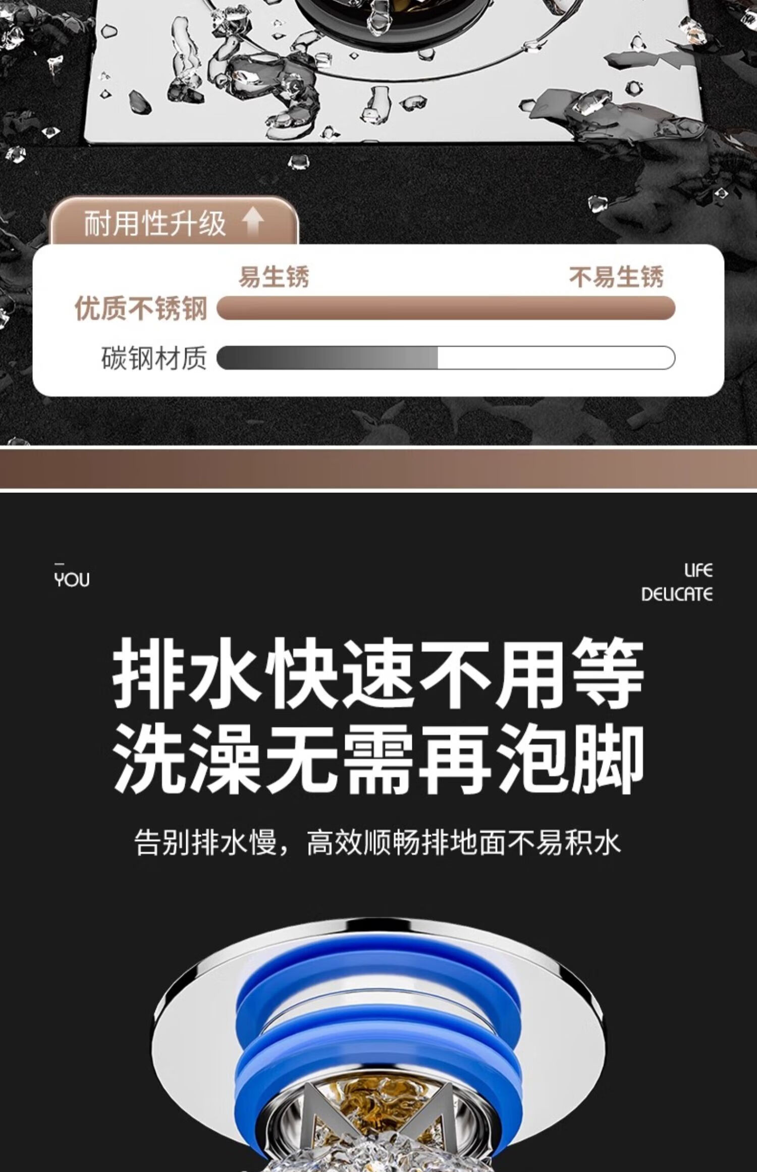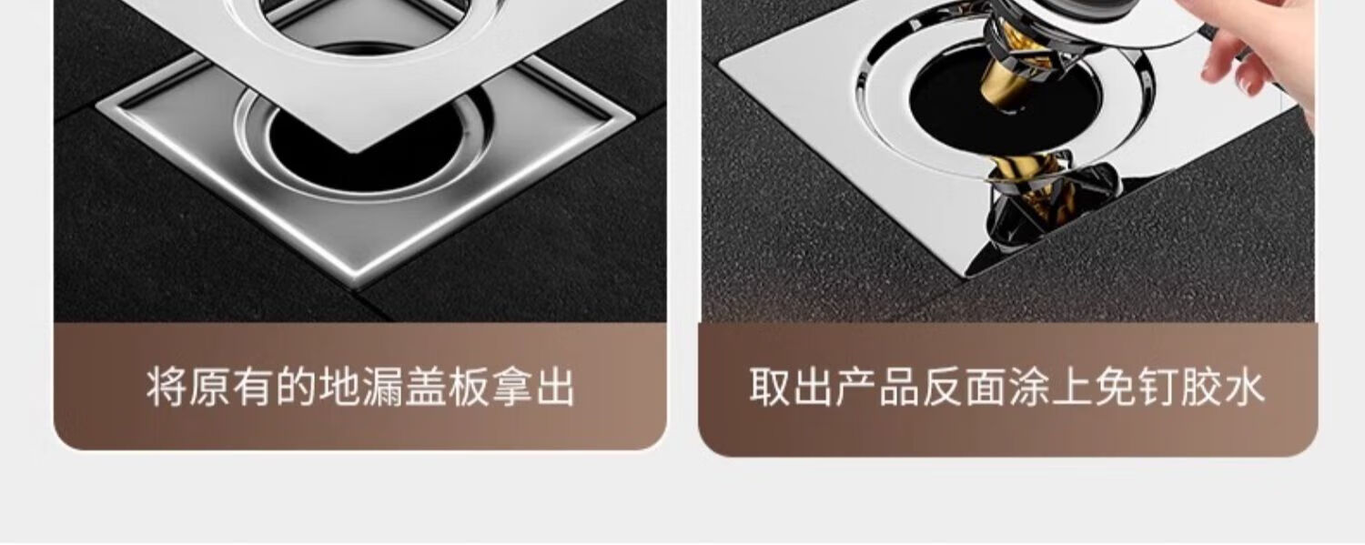 首力弹跳地漏防臭卫生间下水道通用防反味漏封闭按压地漏盖脚踩式方形