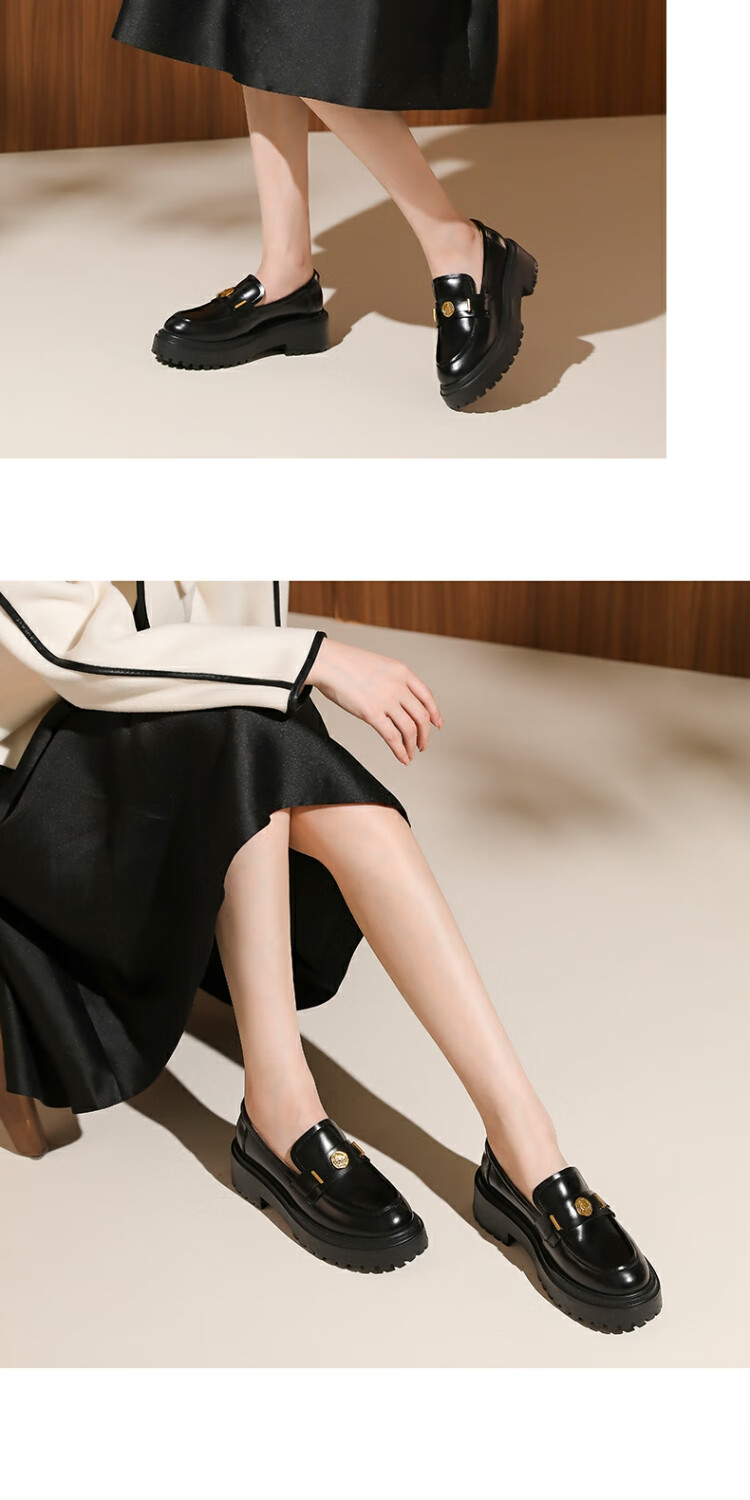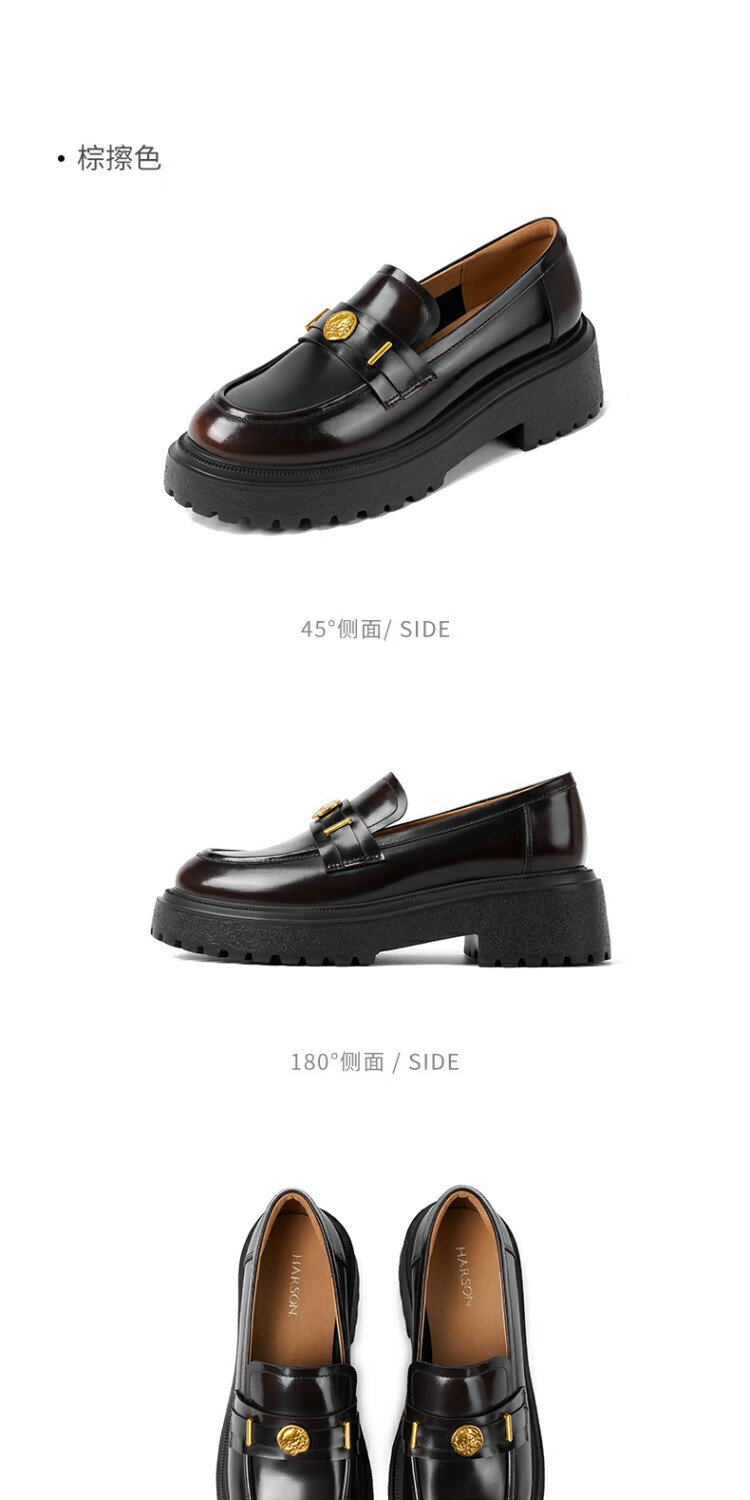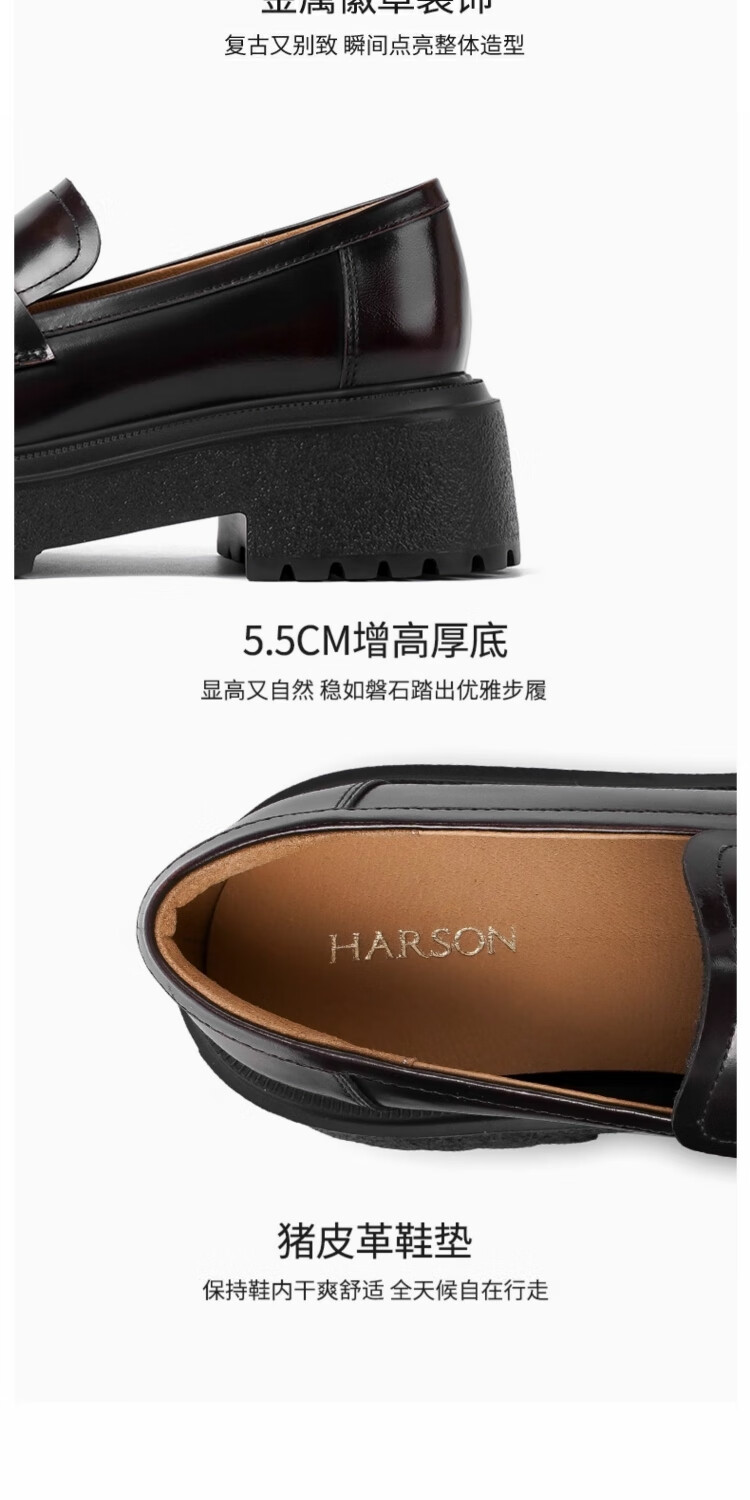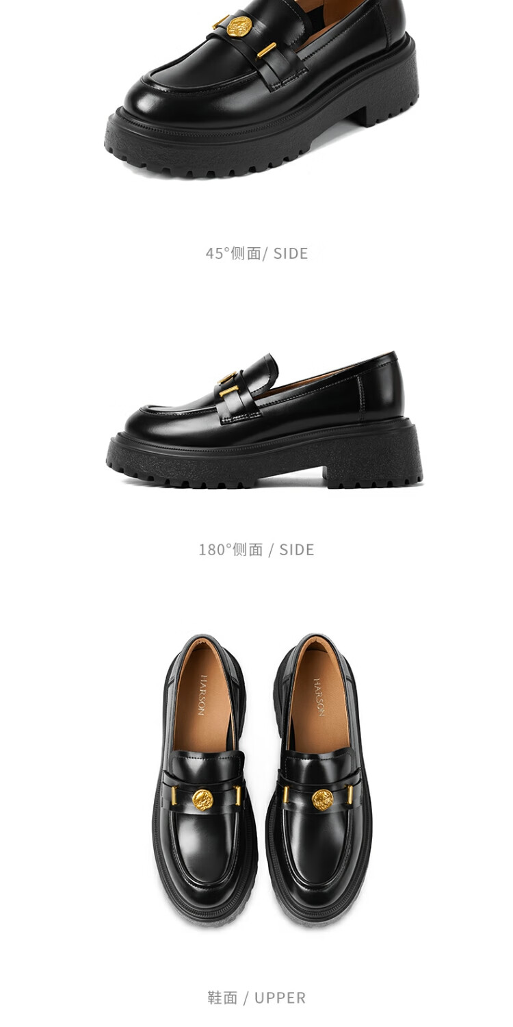 哈森(Harson)【爵士乐福鞋】25秋新款厚底百搭擦色舒适厚底女单鞋HL256403 黑色 复合材料 37