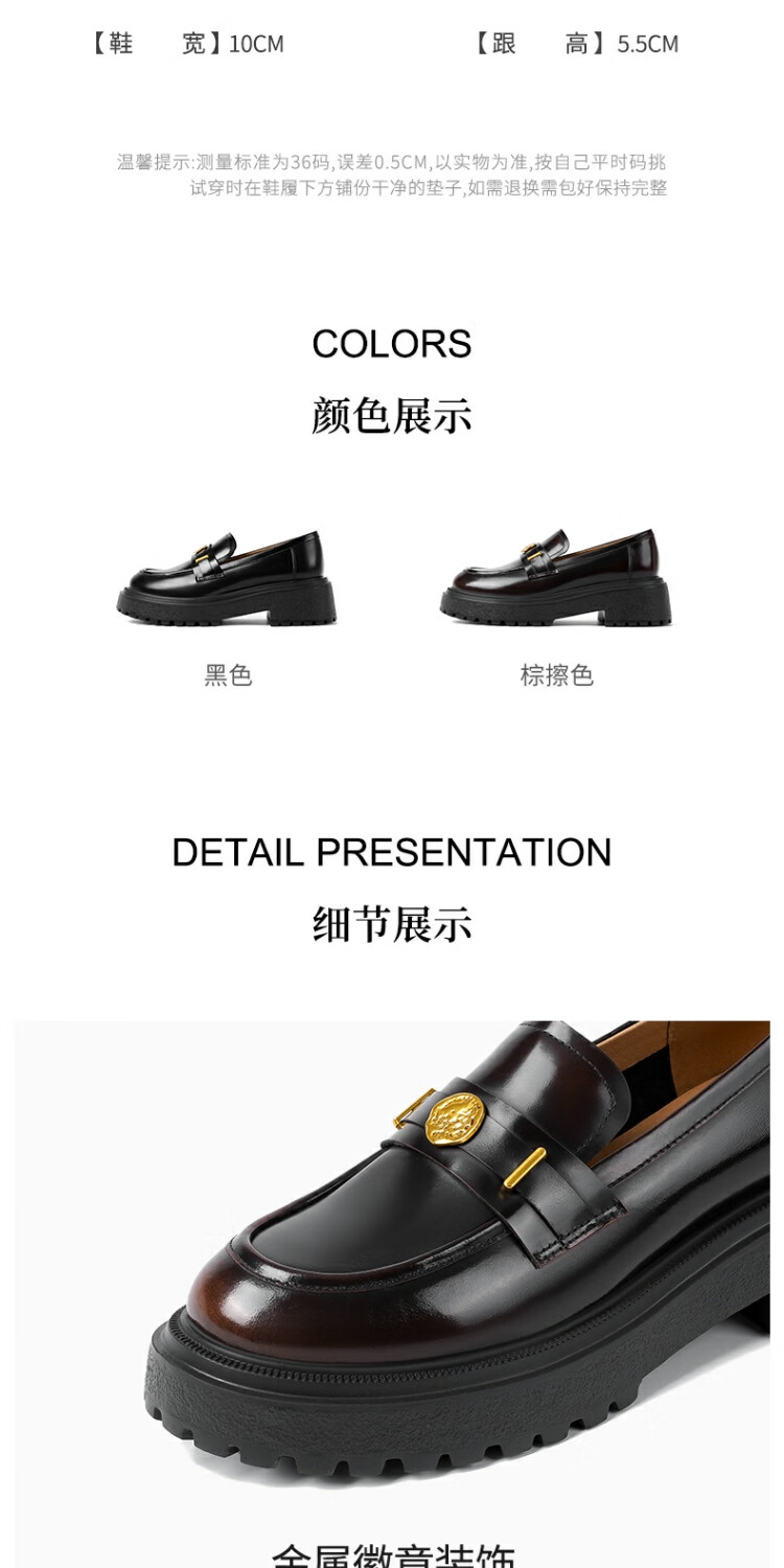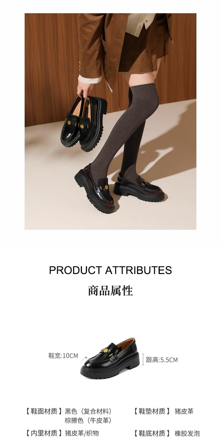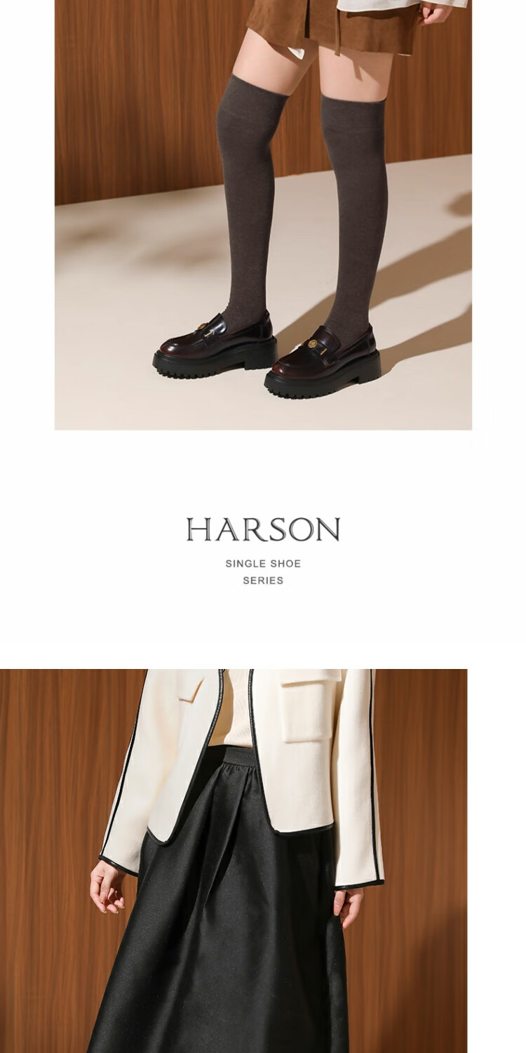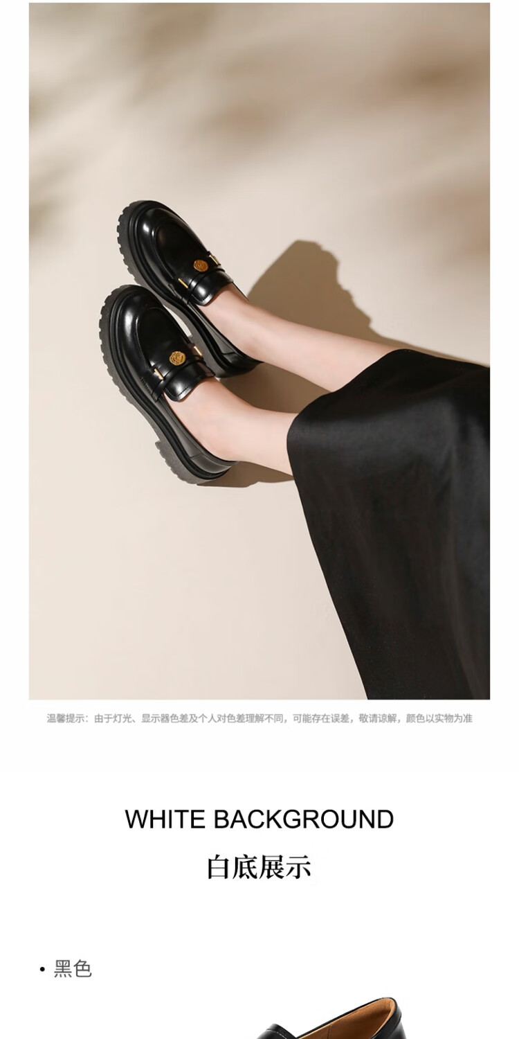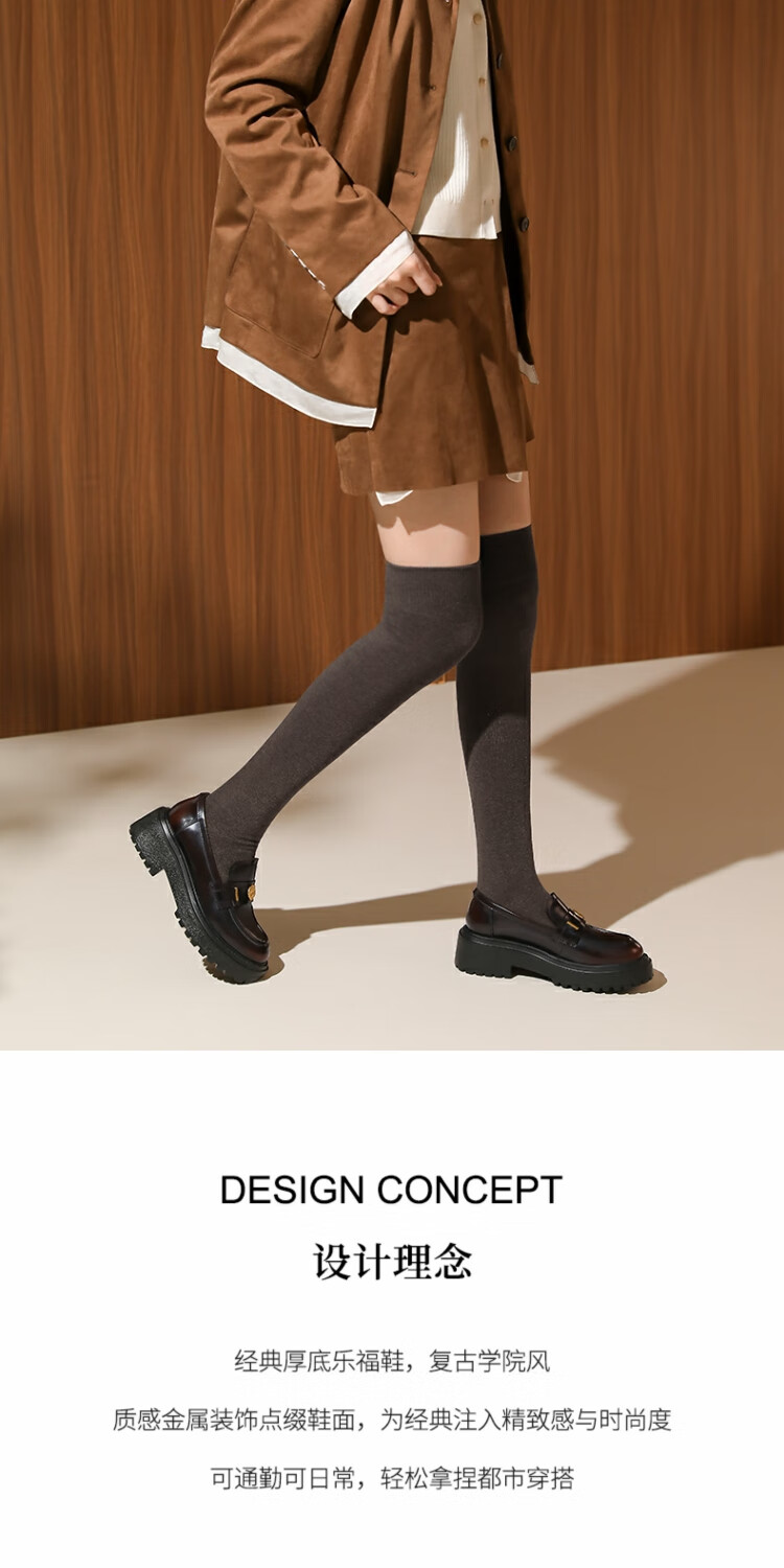 哈森(Harson)【爵士乐福鞋】25秋新款厚底百搭擦色舒适厚底女单鞋HL256403 黑色 复合材料 37