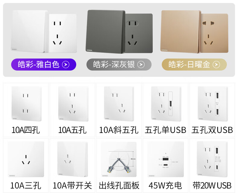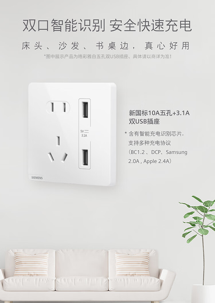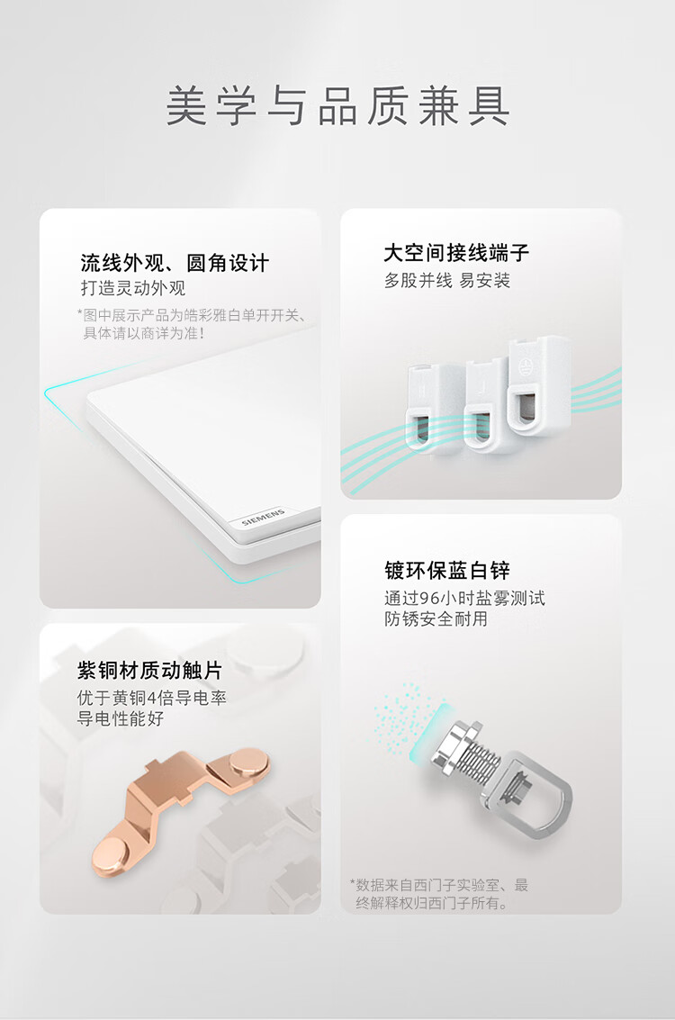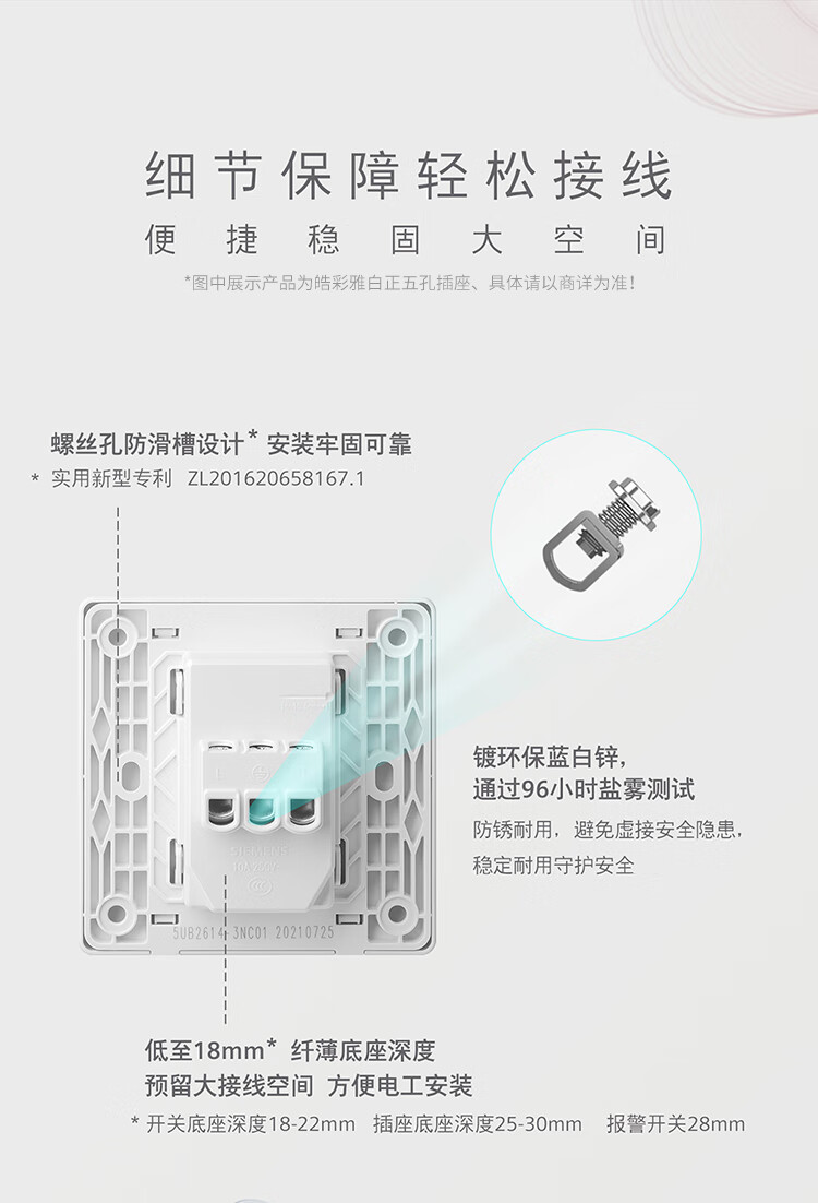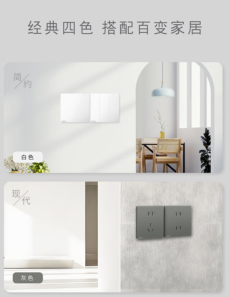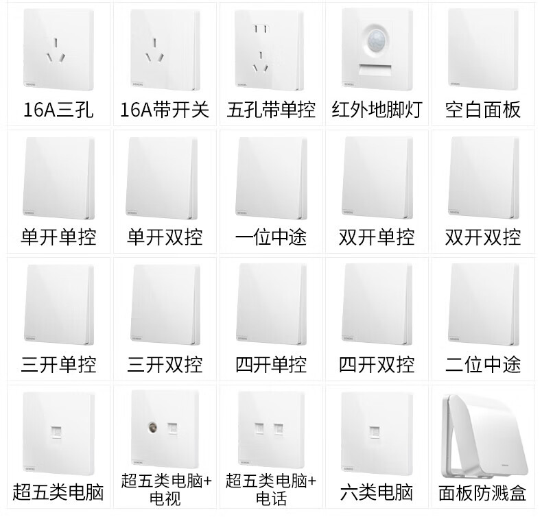 西门子(SIEMENS)开关面板 一开双控开关 86型暗装面板 皓彩雅白5TA26143NC01