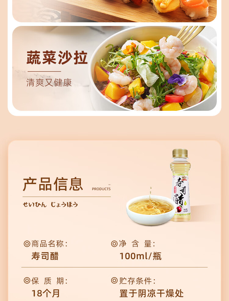 吉得利寿司食材 寿司醋100ml 瓶装 0脂日式料理手卷包饭团米醋蘸料