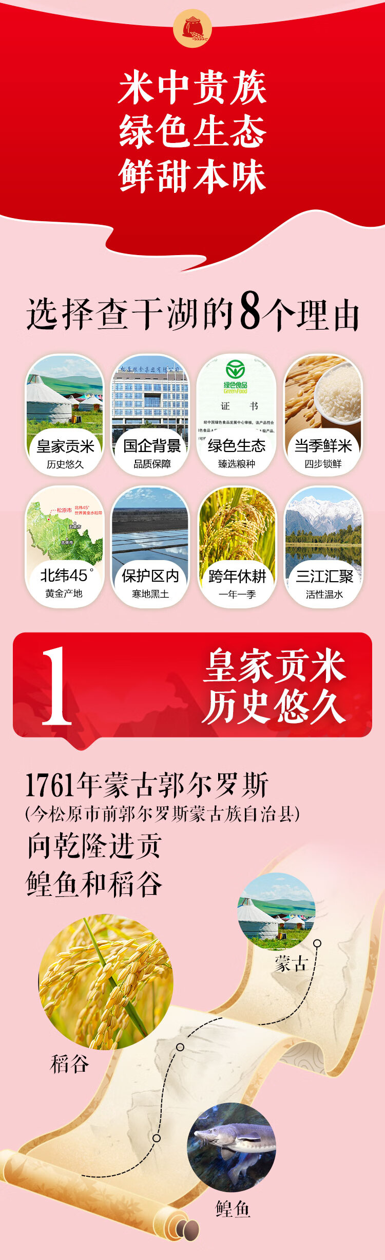 查干湖长粒香米1斤 新米尝鲜独立包装 格力控股 绿色生态 东北大米粳米