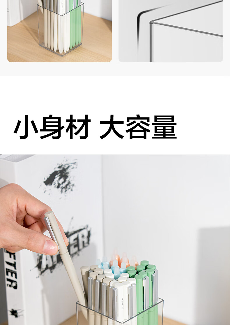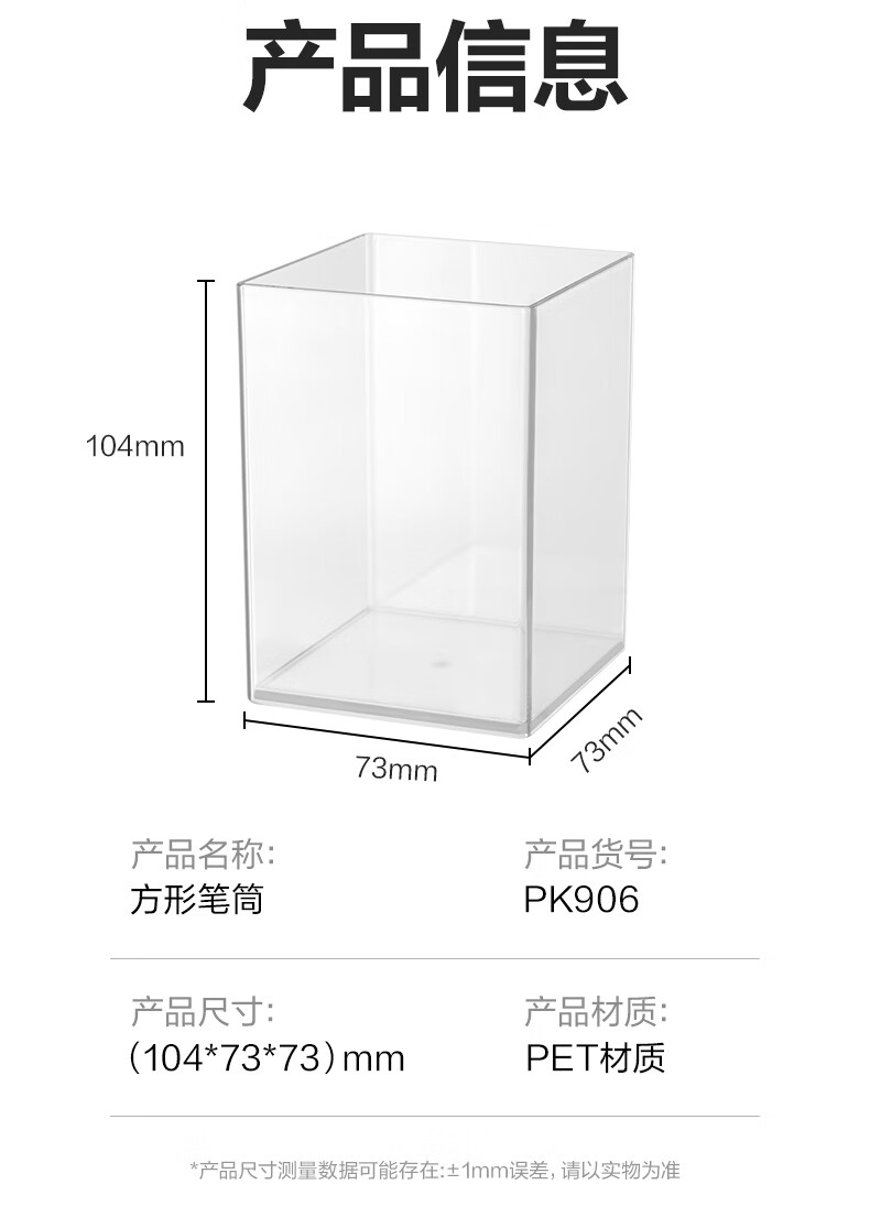 得力(deli)透明方形笔筒高颜值简约桌面马克笔收纳盒办公文具收纳摆件 PK906
