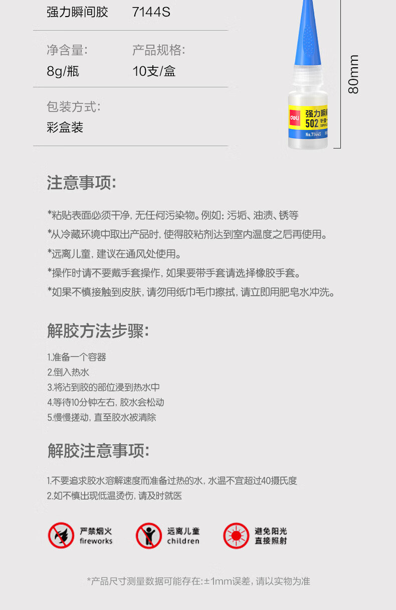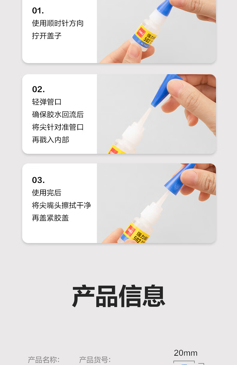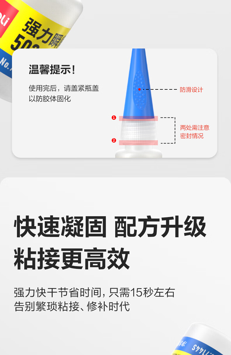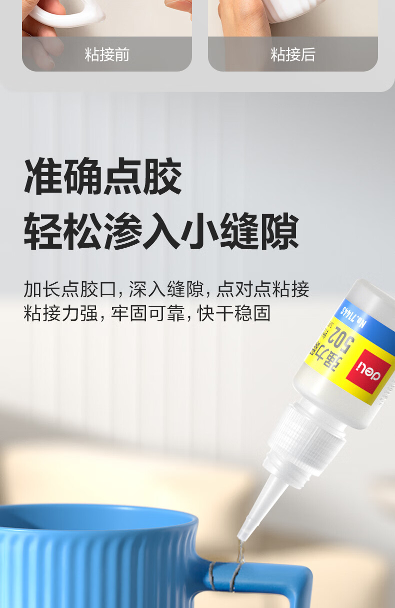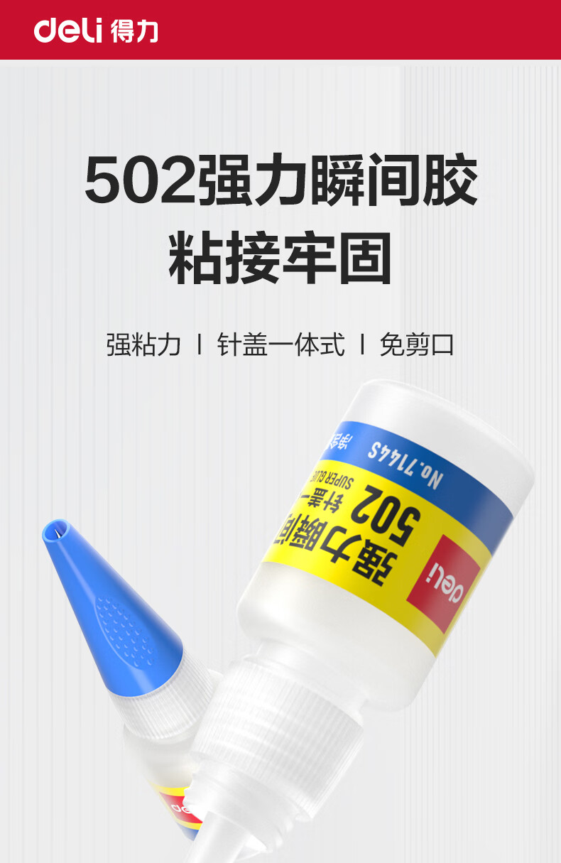 得力502胶水 瞬间胶强力胶 无痕胶透明胶粘剂 配方升级免剪口 可粘金属陶瓷木材 8g单支凑单 7144S
