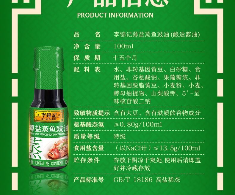 李锦记 薄盐蒸鱼豉油100ml 【减盐25%】特级 双重发酵精粹 鲜美健康酱油
