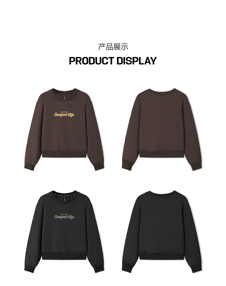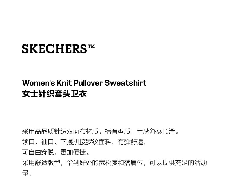 斯凯奇(Skechers)女士秋冬季卫衣针织套头卫衣L425W070 碳黑/0018 S