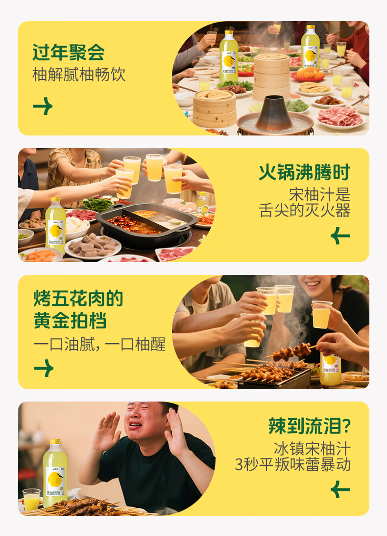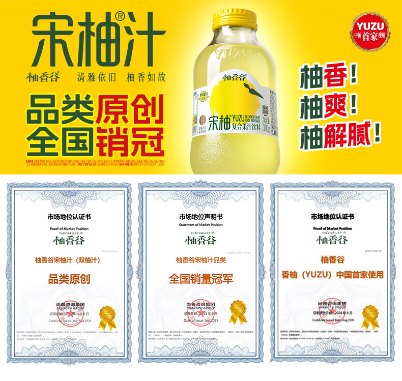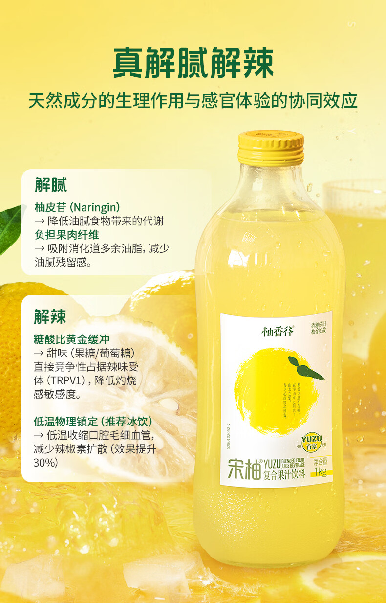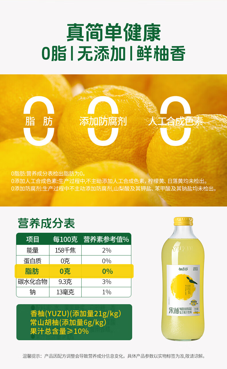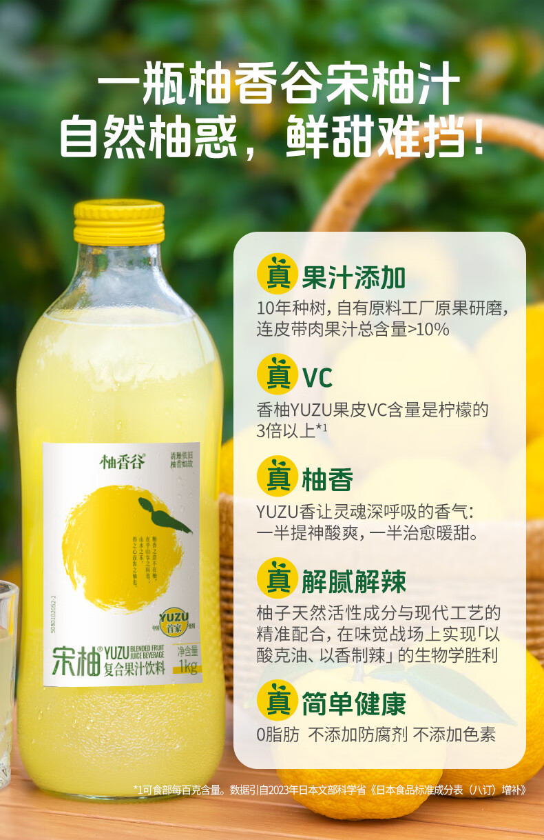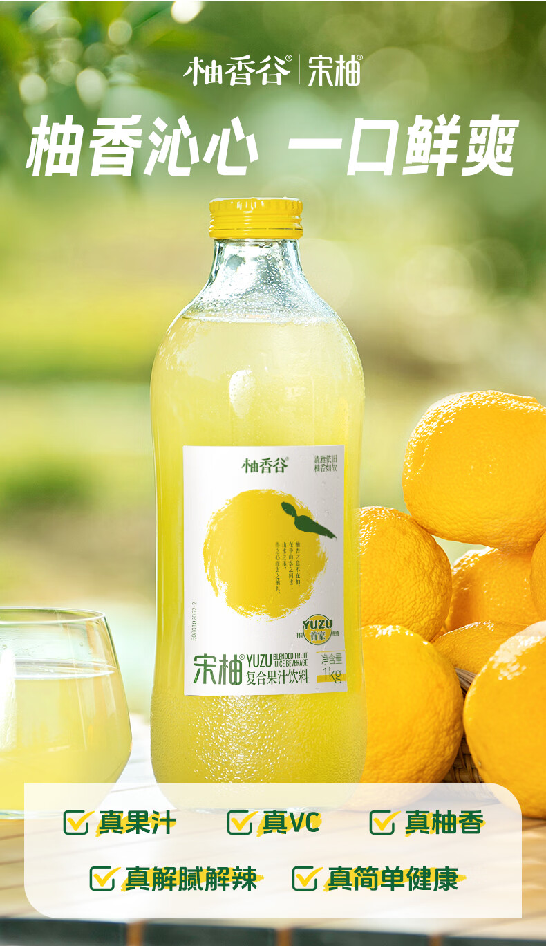 柚香谷宋柚汁双柚汁复合果汁饮料1kg*6瓶 鲜果萃取富含VC 0脂节日整箱