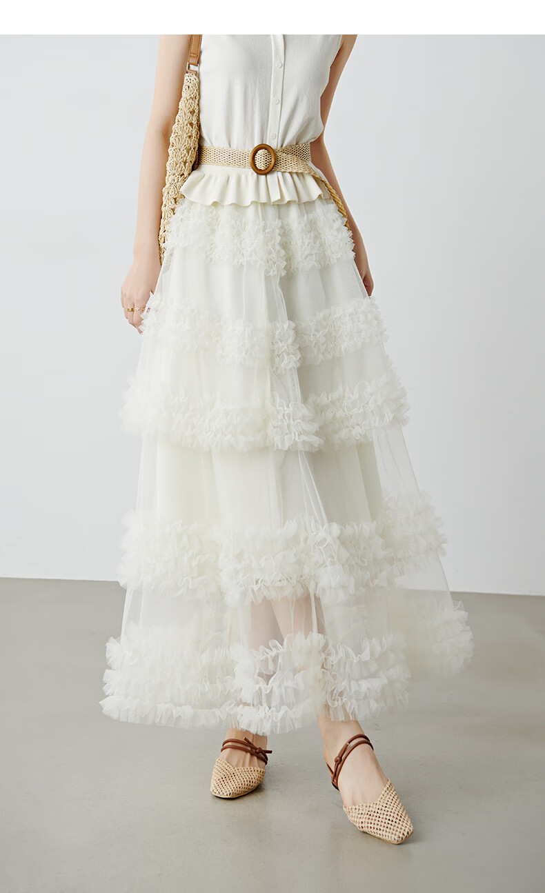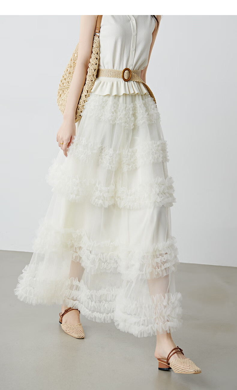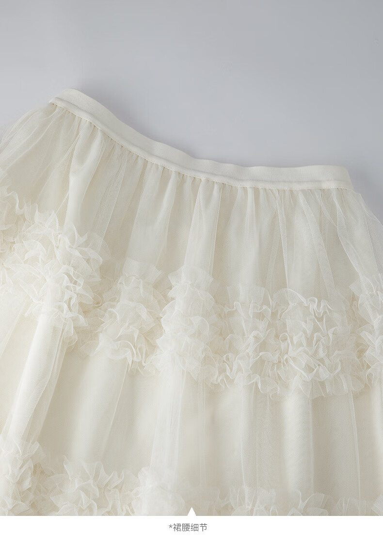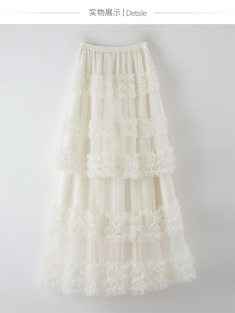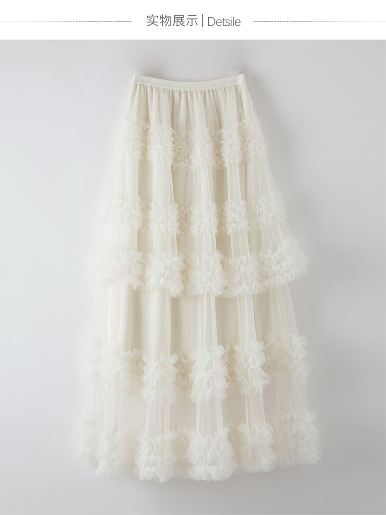 晚白2026年春款仙气十足立体花边白色网纱半裙飘逸减龄休闲大摆半身裙 米白色 M