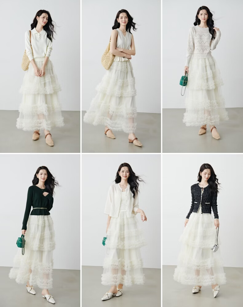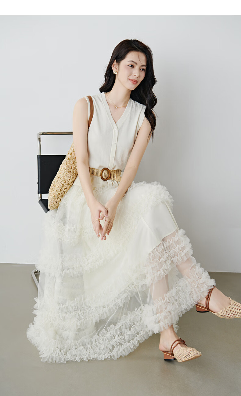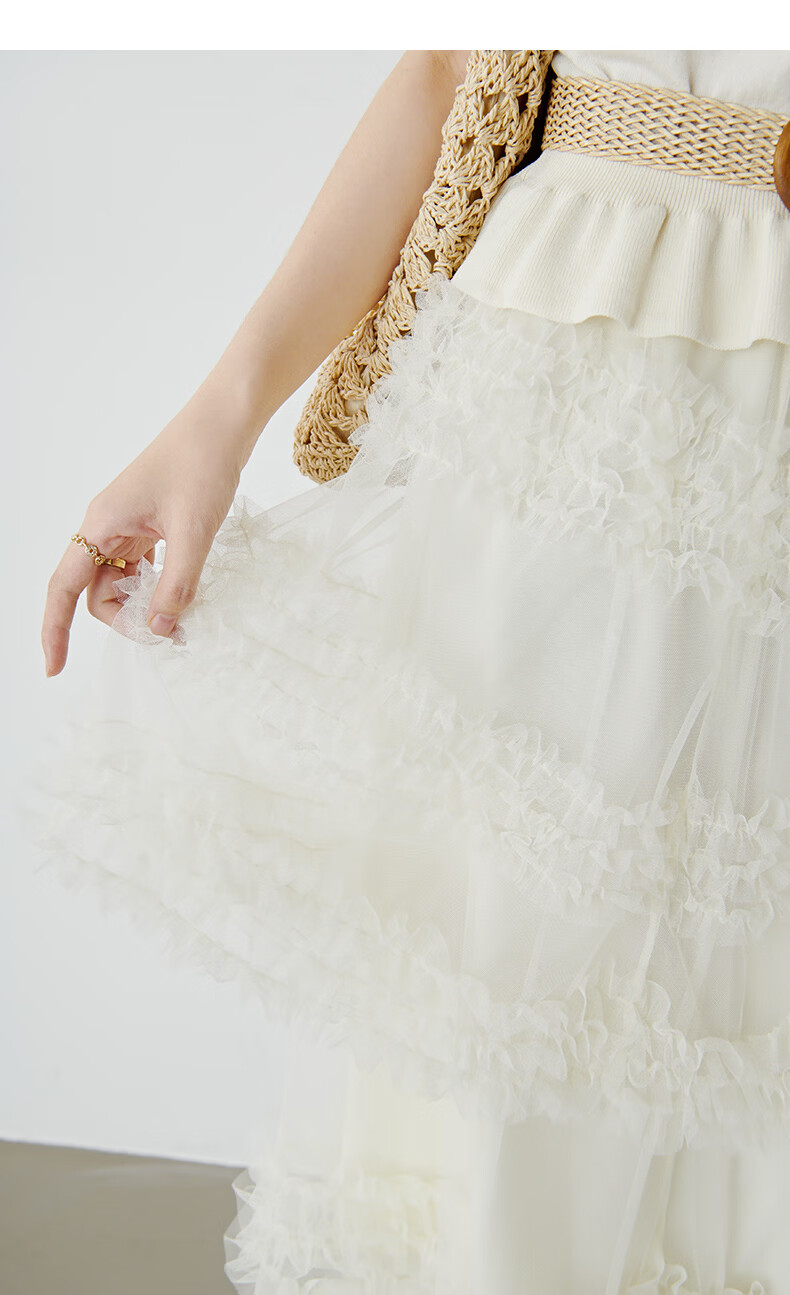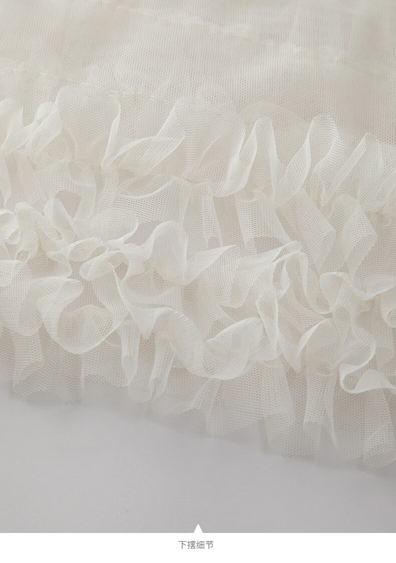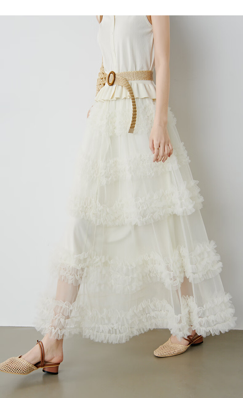 晚白2026年春款仙气十足立体花边白色网纱半裙飘逸减龄休闲大摆半身裙 米白色 M
