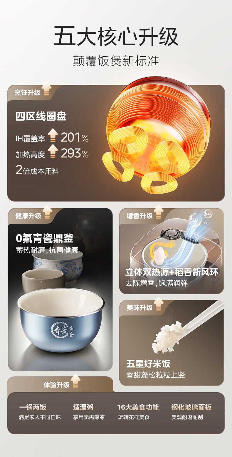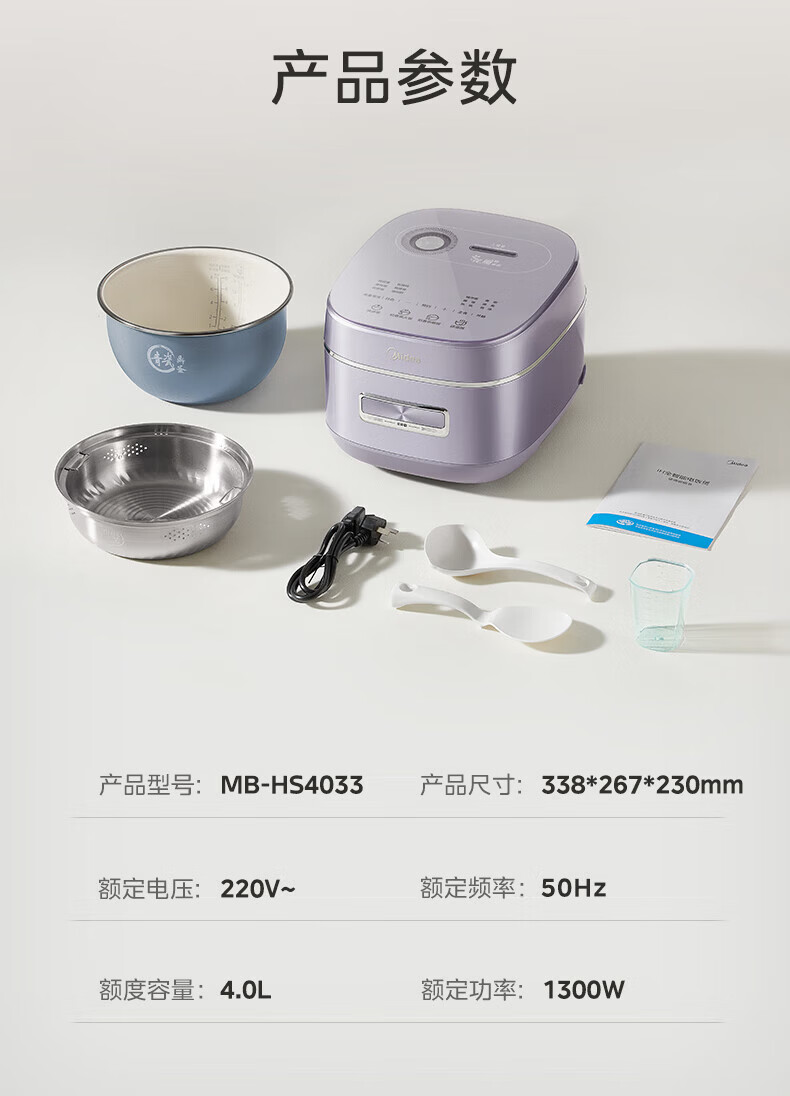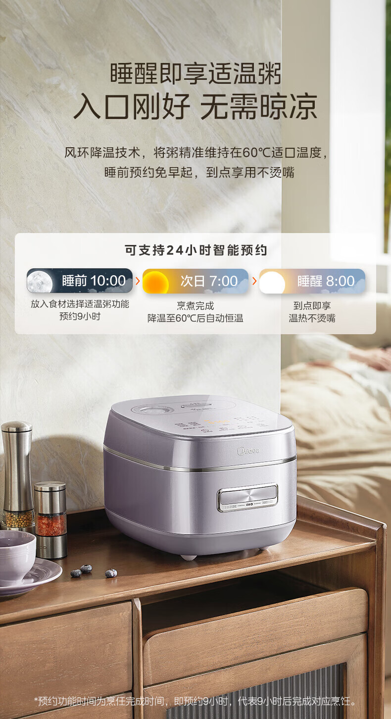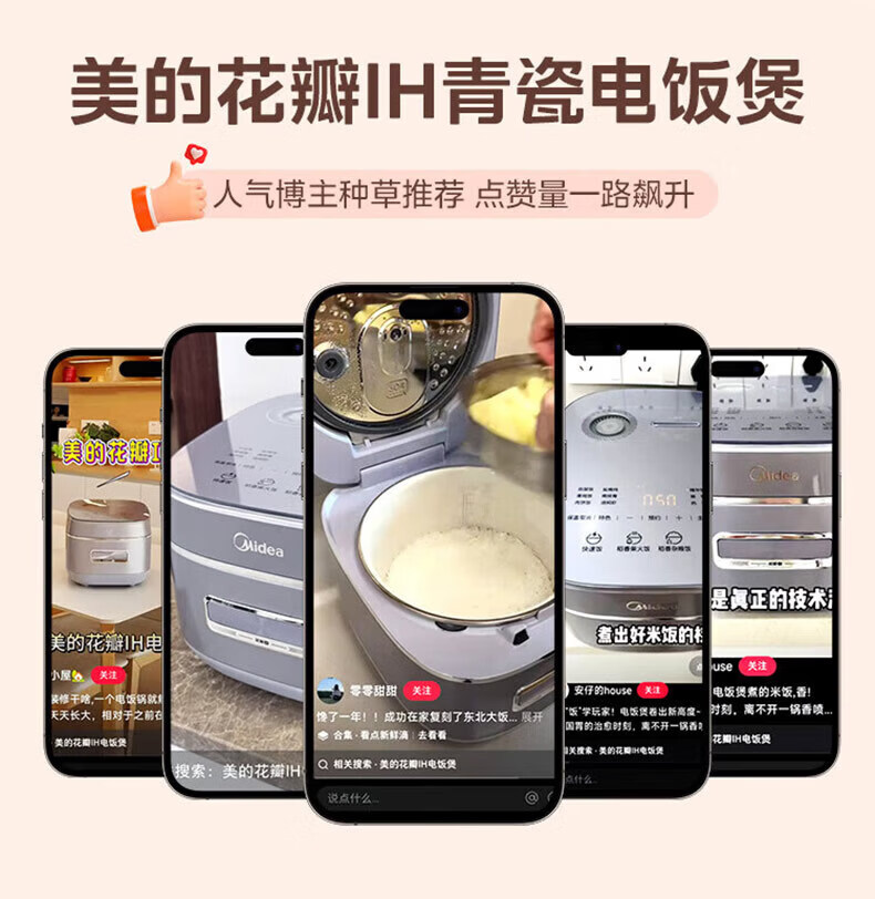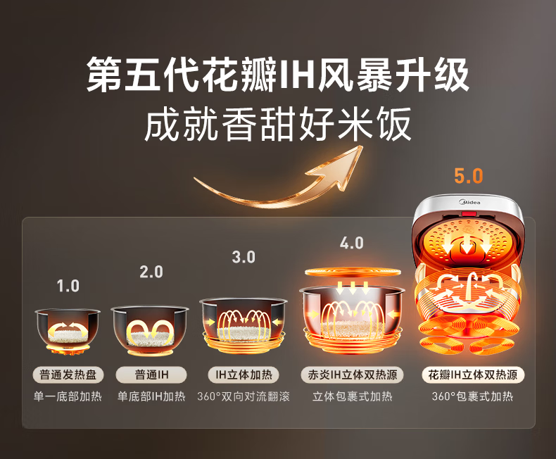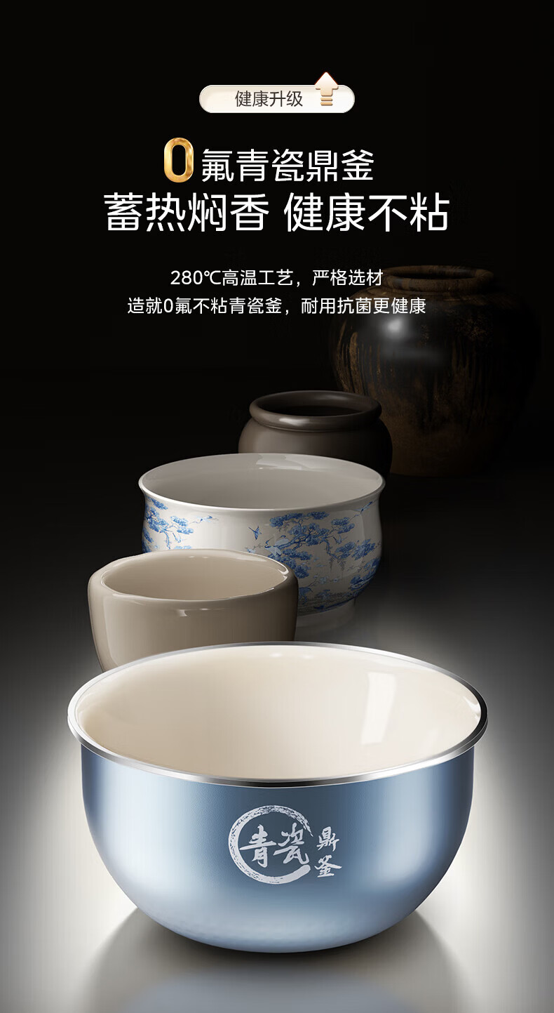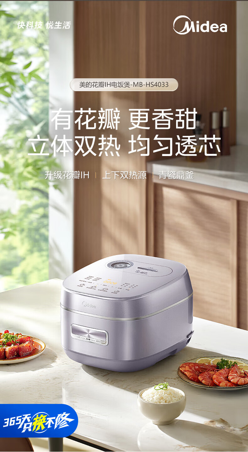 美的(Midea)电饭煲 家用4L大容量0氟青瓷鼎釜不粘抗菌内胆4-5人智能预约多功能花瓣IH加热稻香新风增香电饭锅 【花瓣IH加热+0氟青瓷内胆】 4L