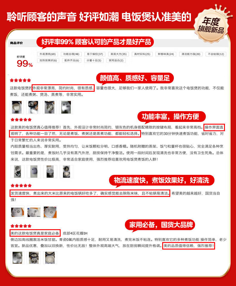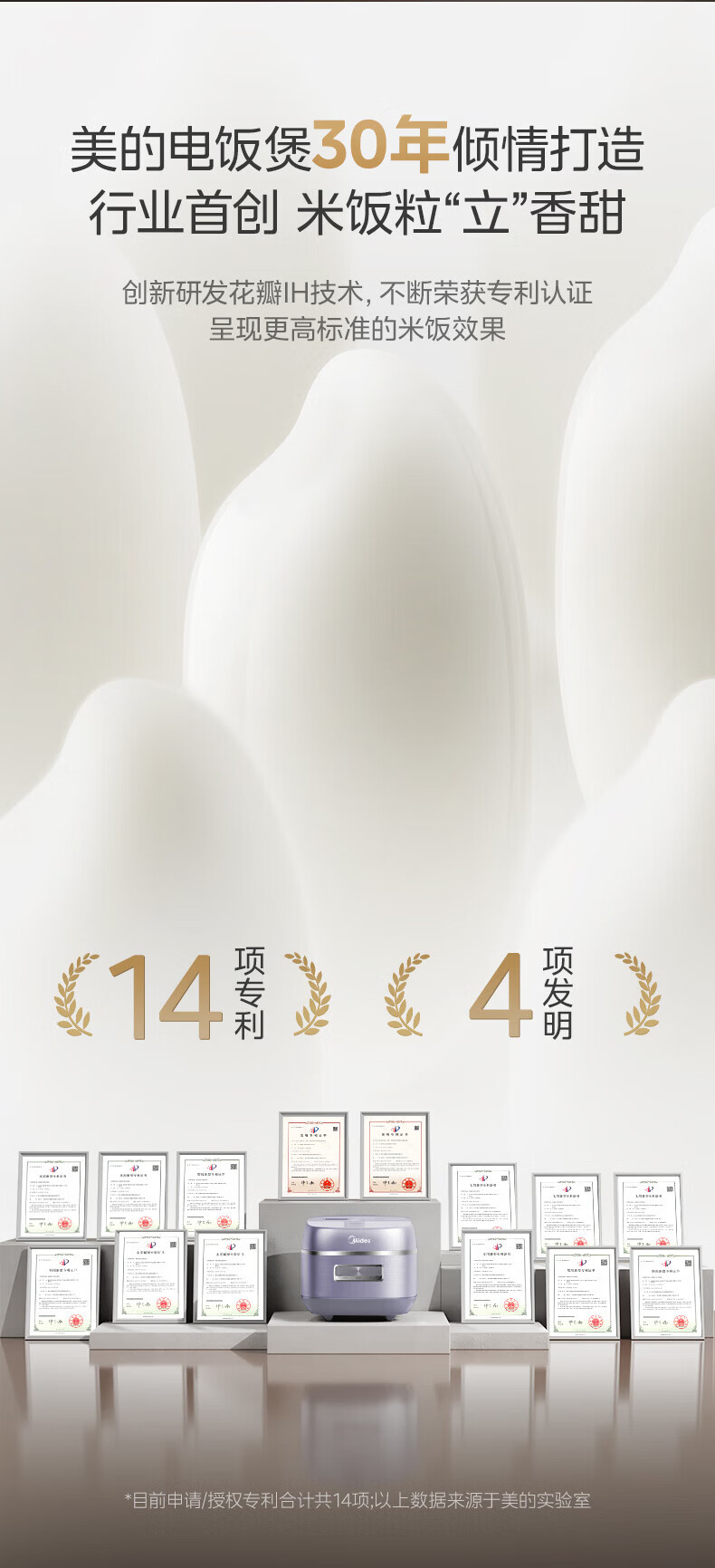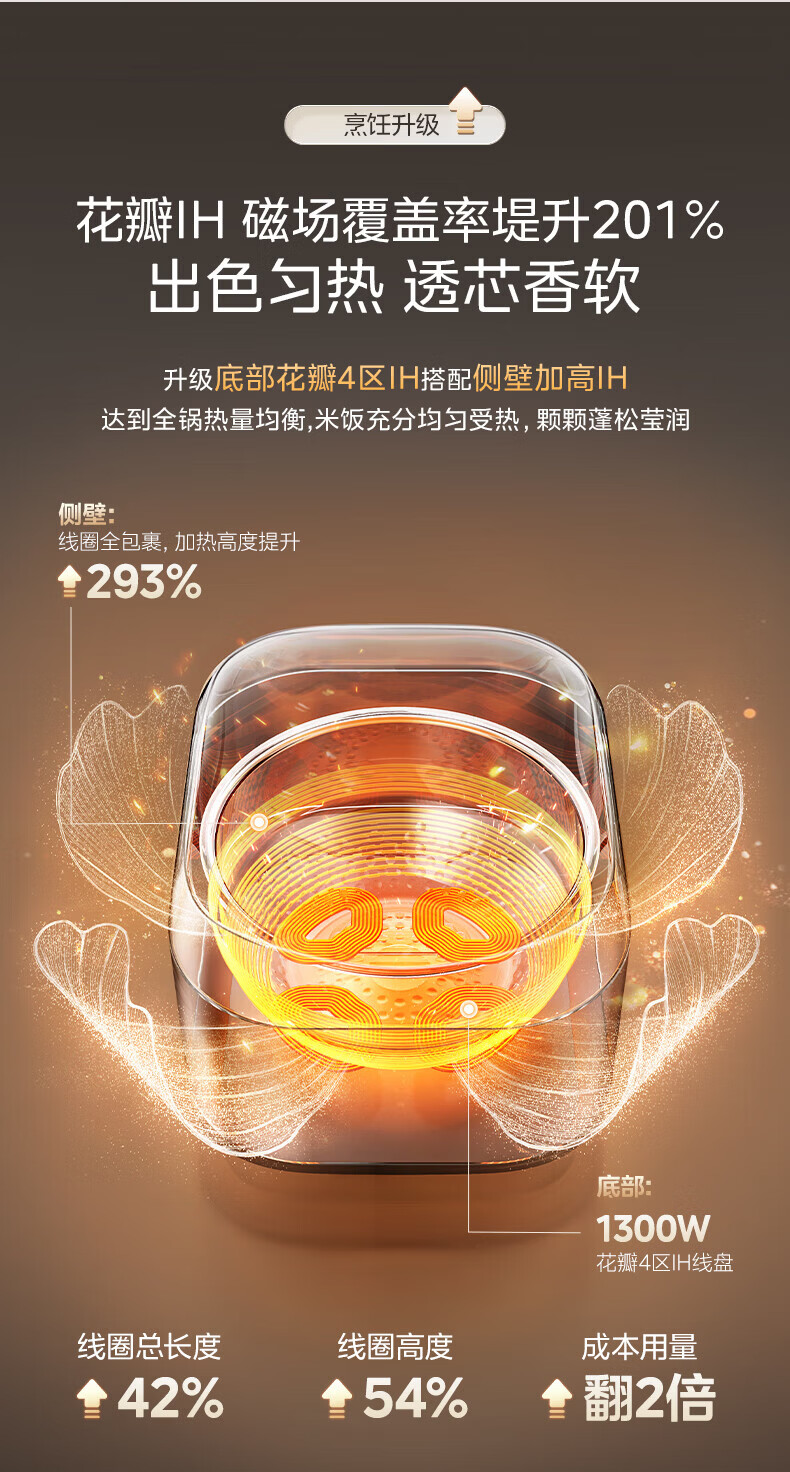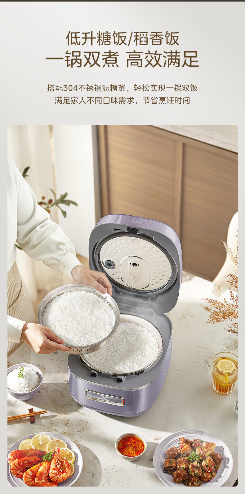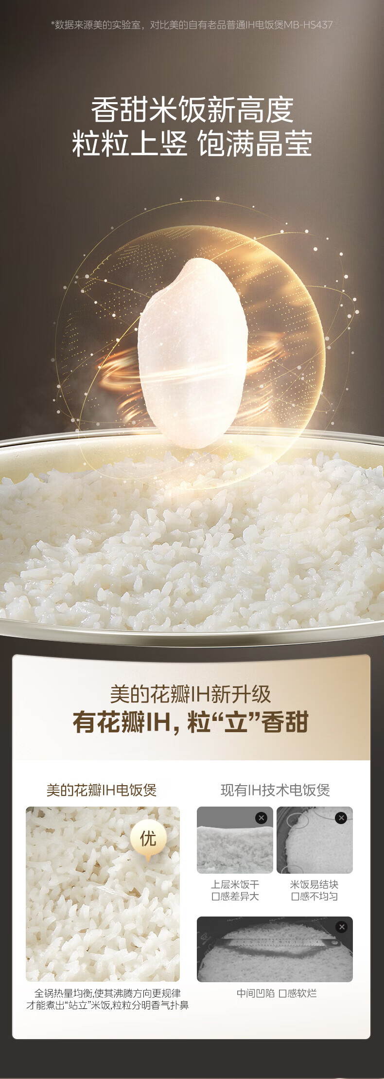 美的(Midea)电饭煲 家用4L大容量0氟青瓷鼎釜不粘抗菌内胆4-5人智能预约多功能花瓣IH加热稻香新风增香电饭锅 【花瓣IH加热+0氟青瓷内胆】 4L