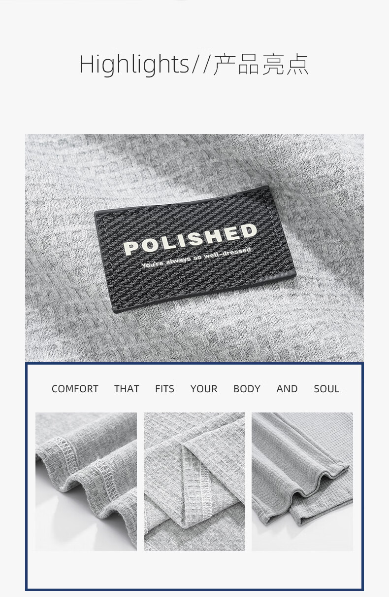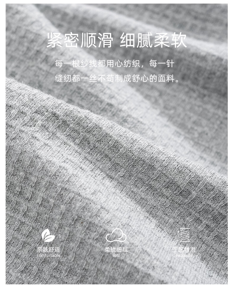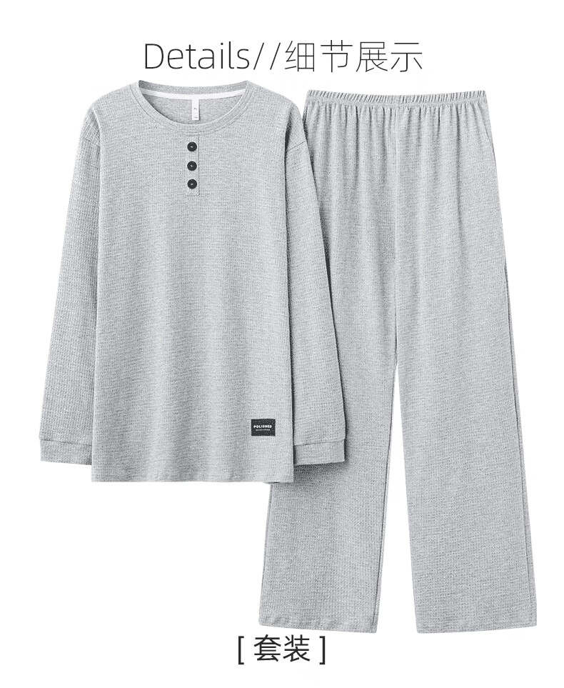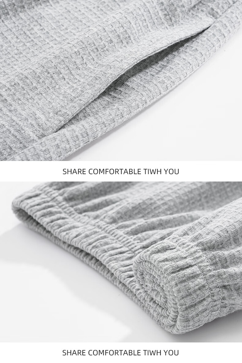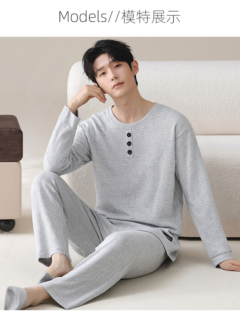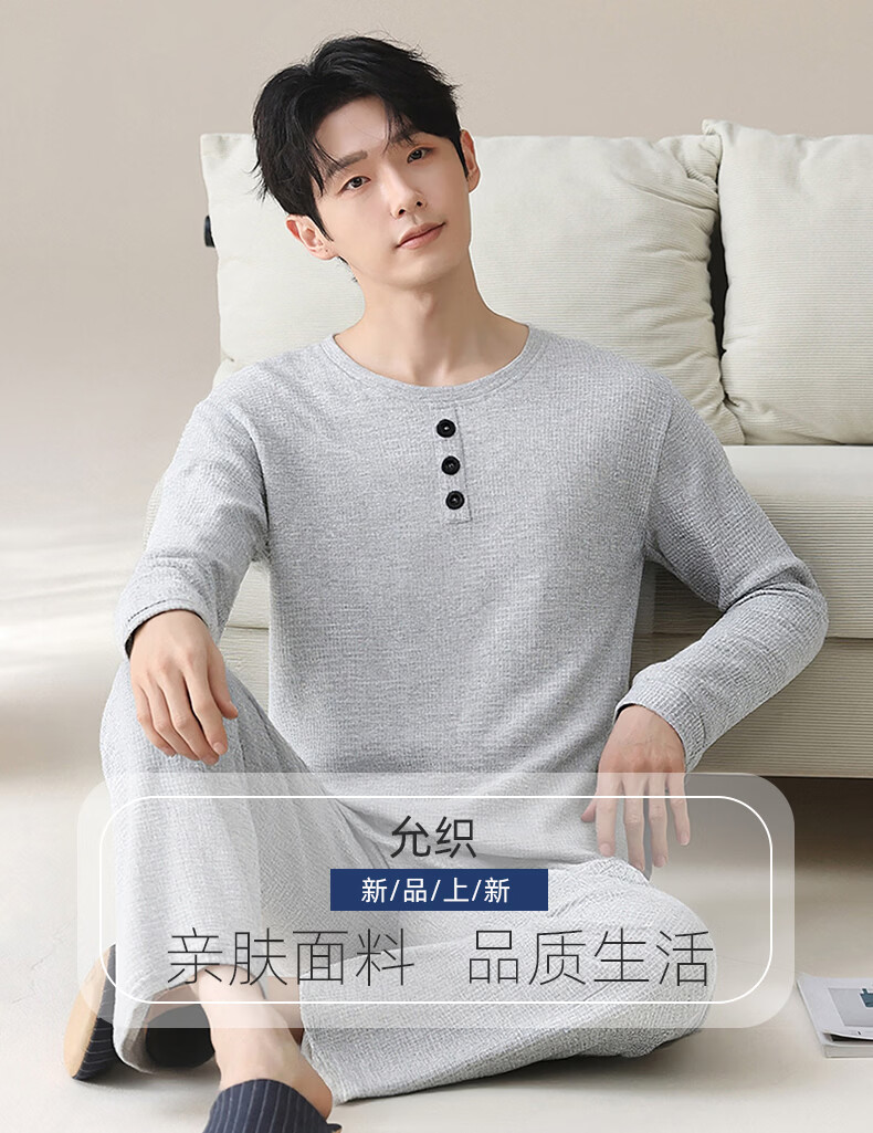 允织华夫格纯棉睡衣男春秋季新款长袖男士睡裤可外穿家居服秋冬天套装 8614-浅灰 L (170) :建议100-135斤穿着